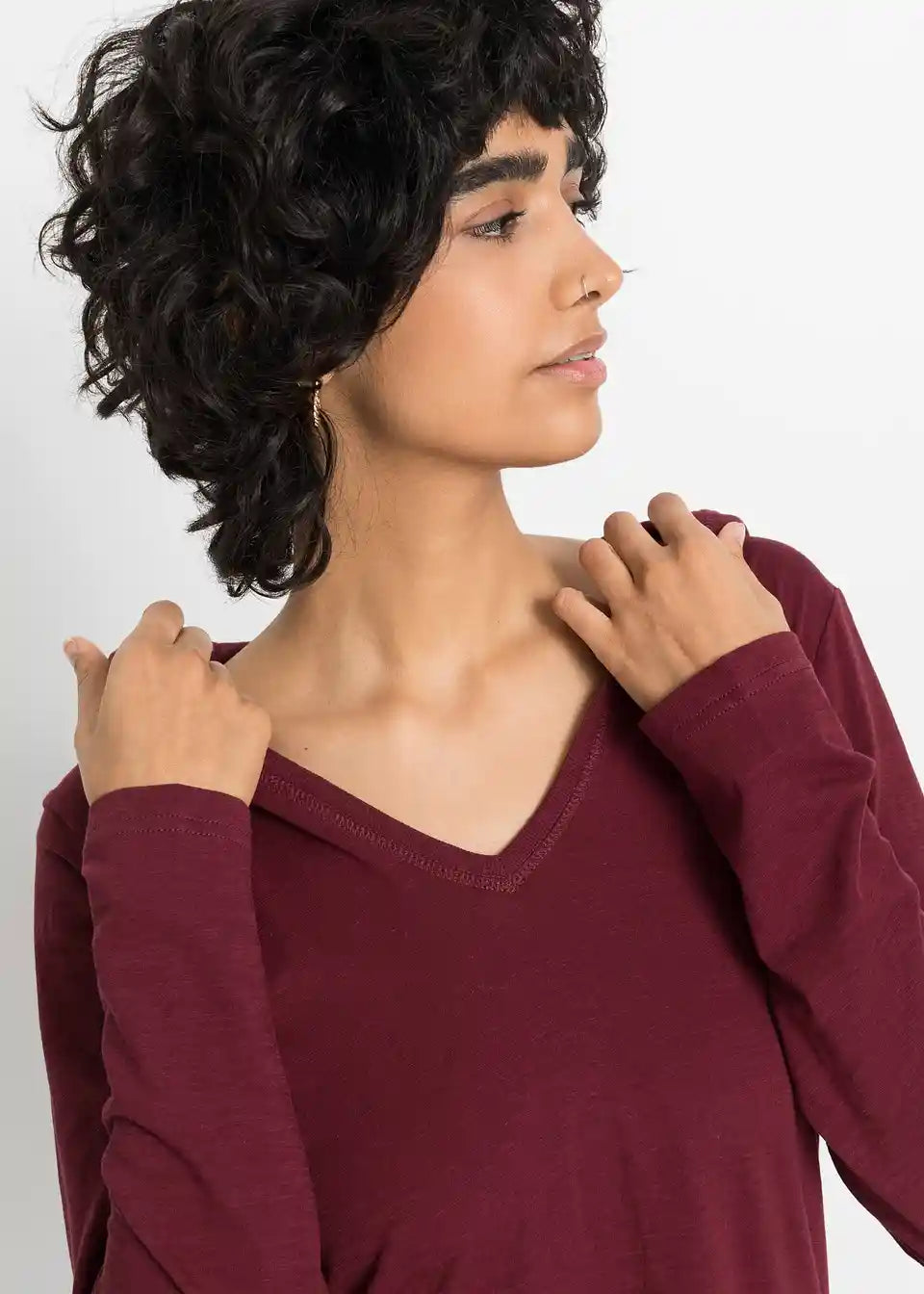 Majica s kapuco, dolgimi rokavi in širokimi V-izrezom iz čistega bombaža