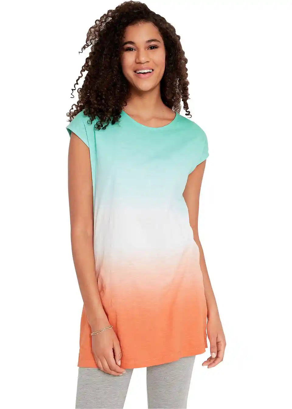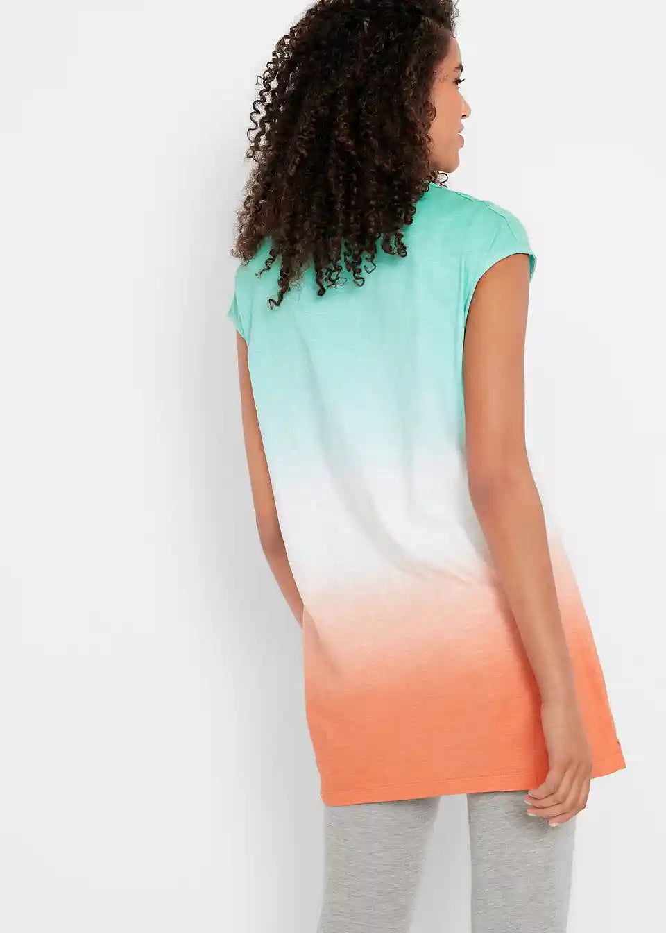 Lepa bombažna majica z barvnimi prehodi in stranskim razporkom