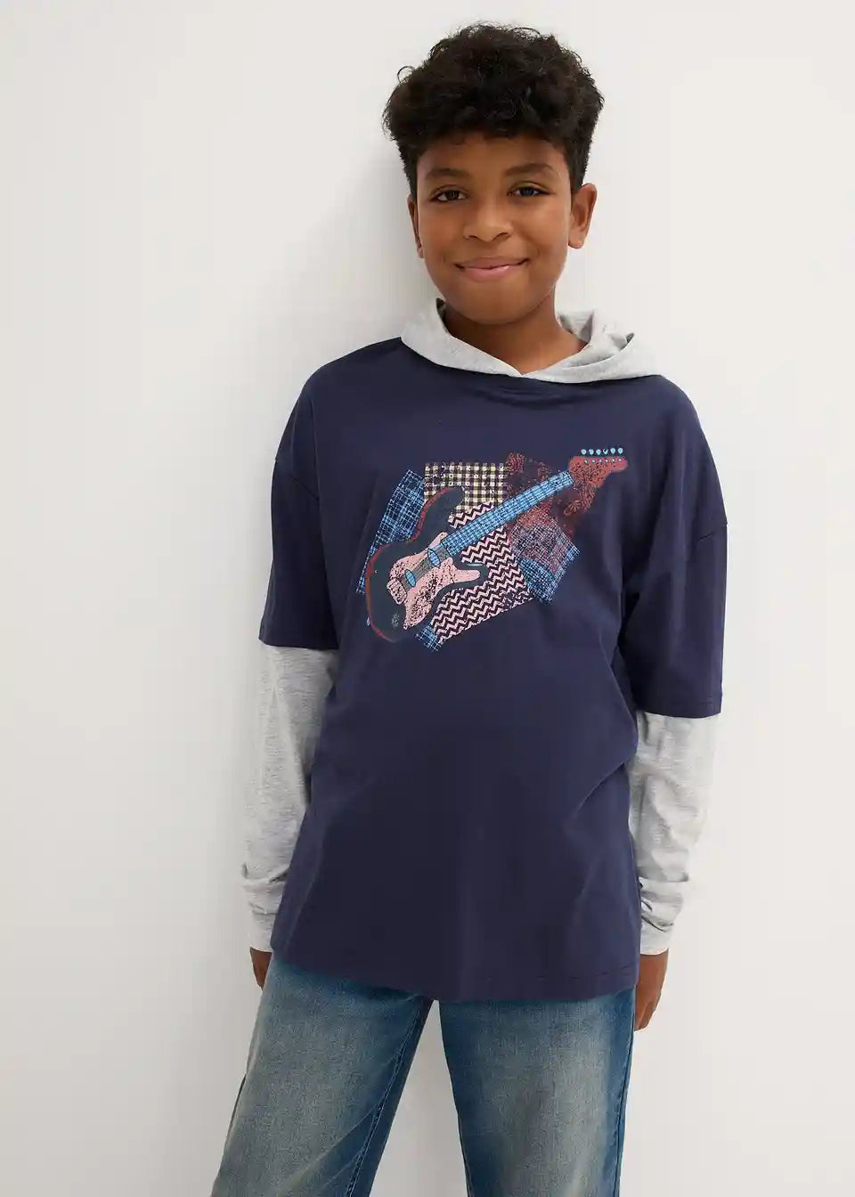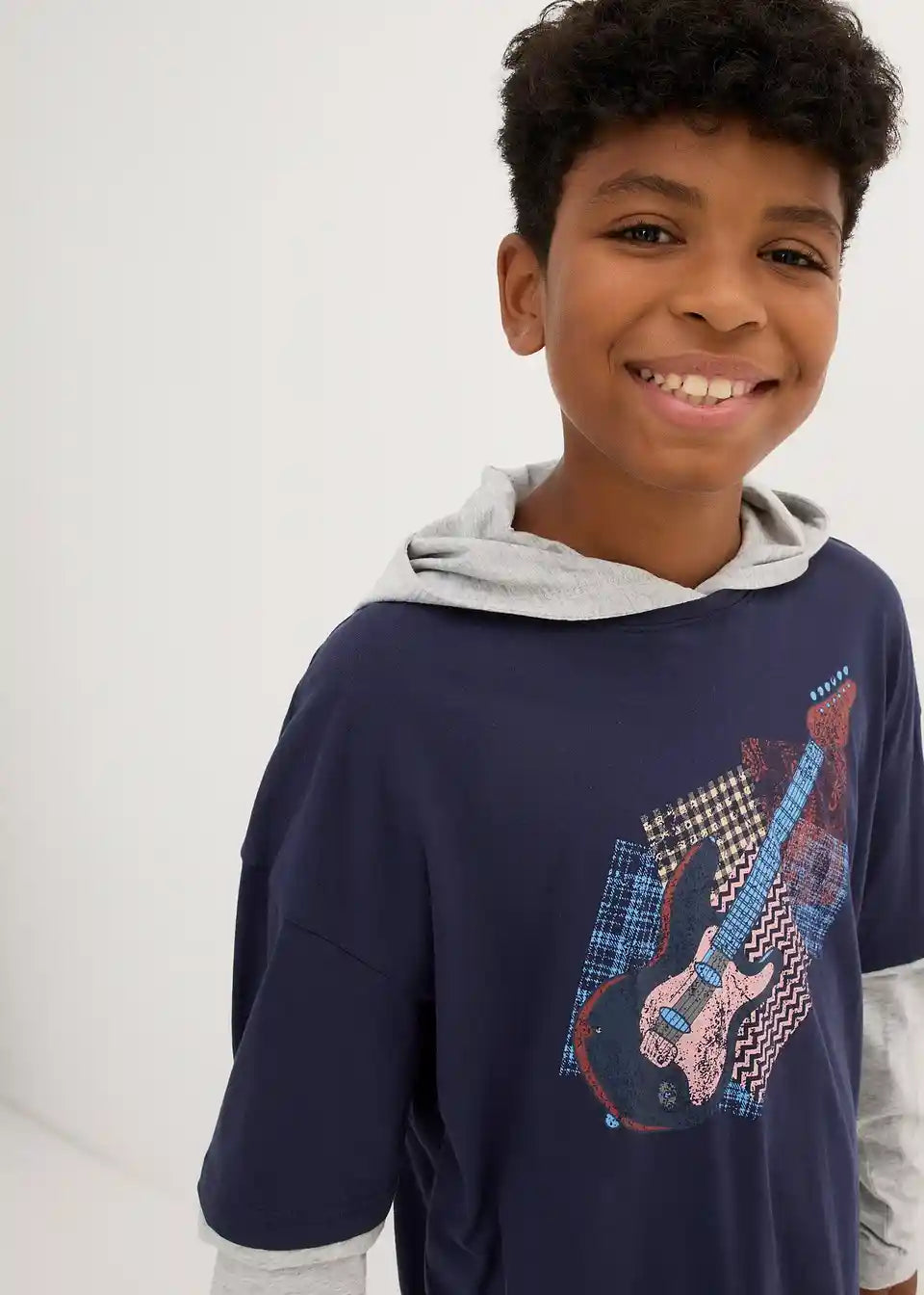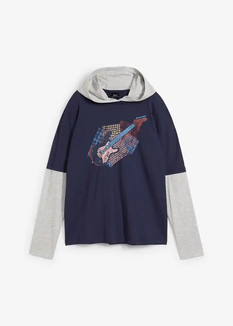 Fantovska dvoplastna majica s kapuco, dolgimi rokavi in ekološkim bombažem