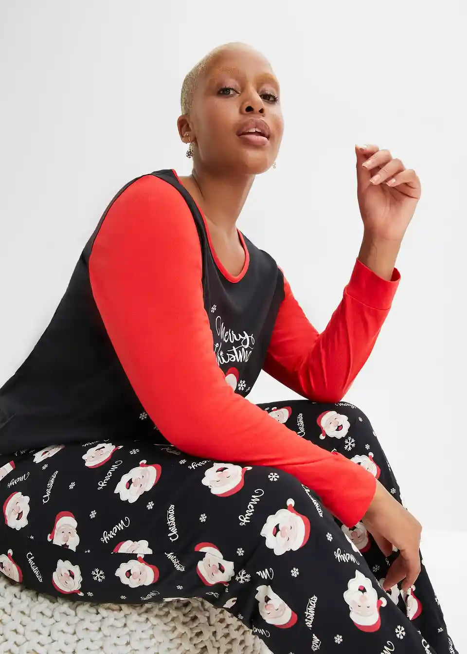 Udobna pižama z Božičkovim potiskom iz bombaža