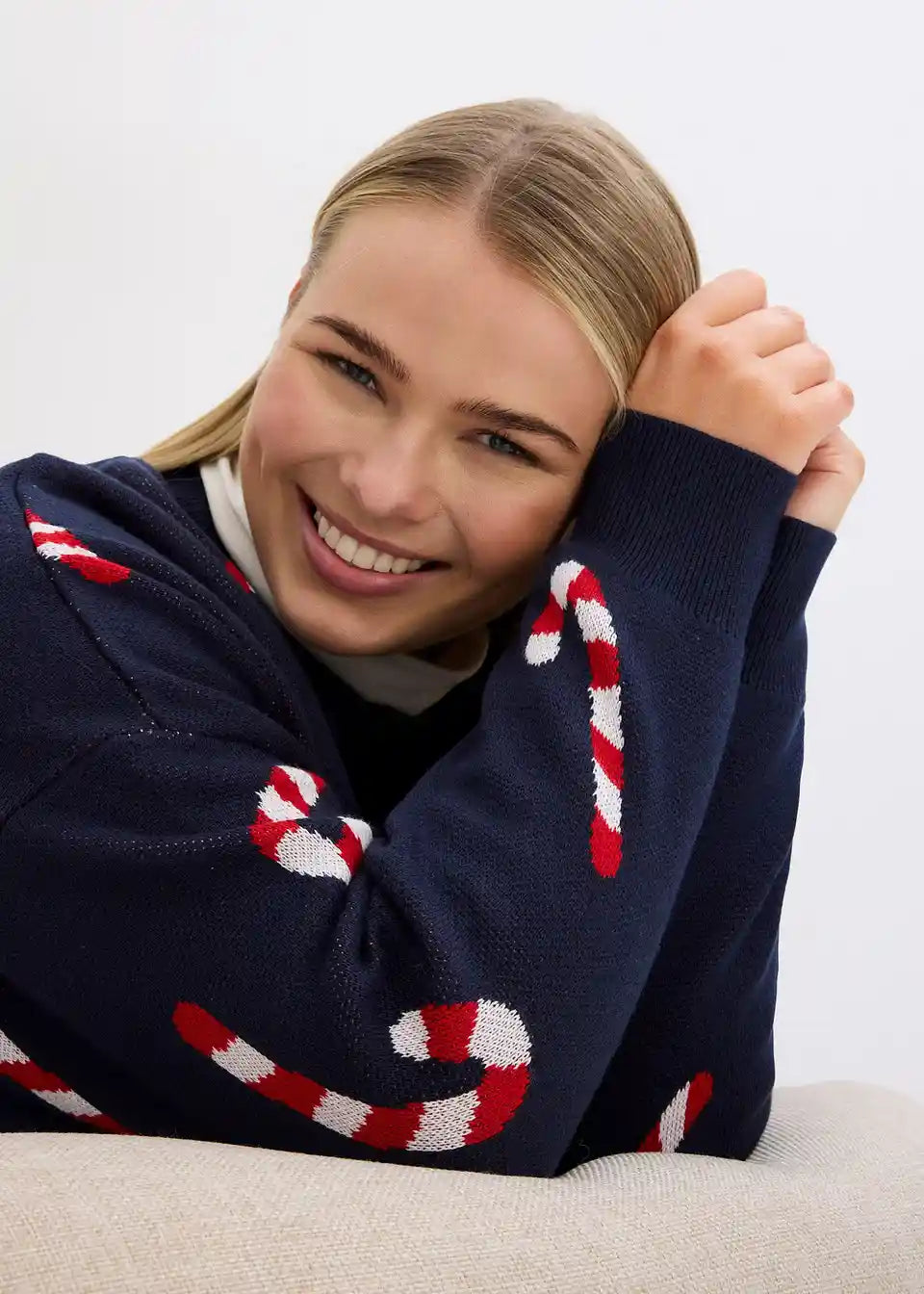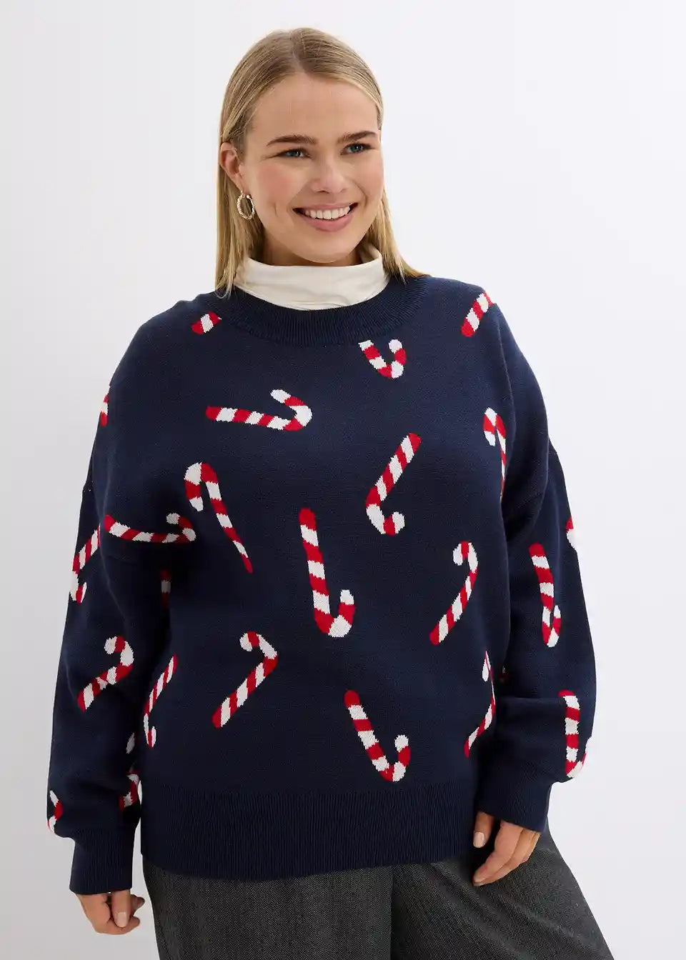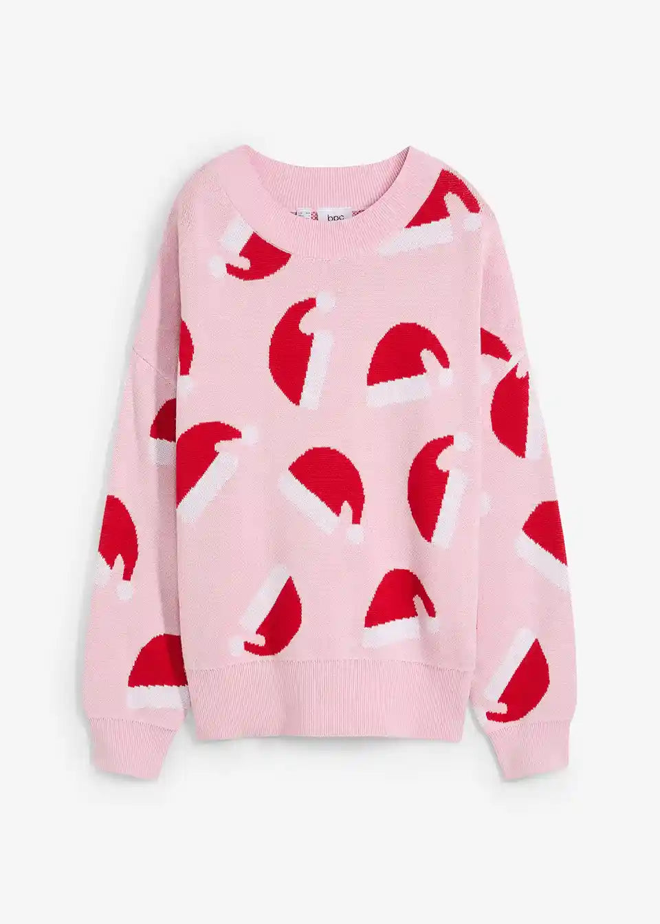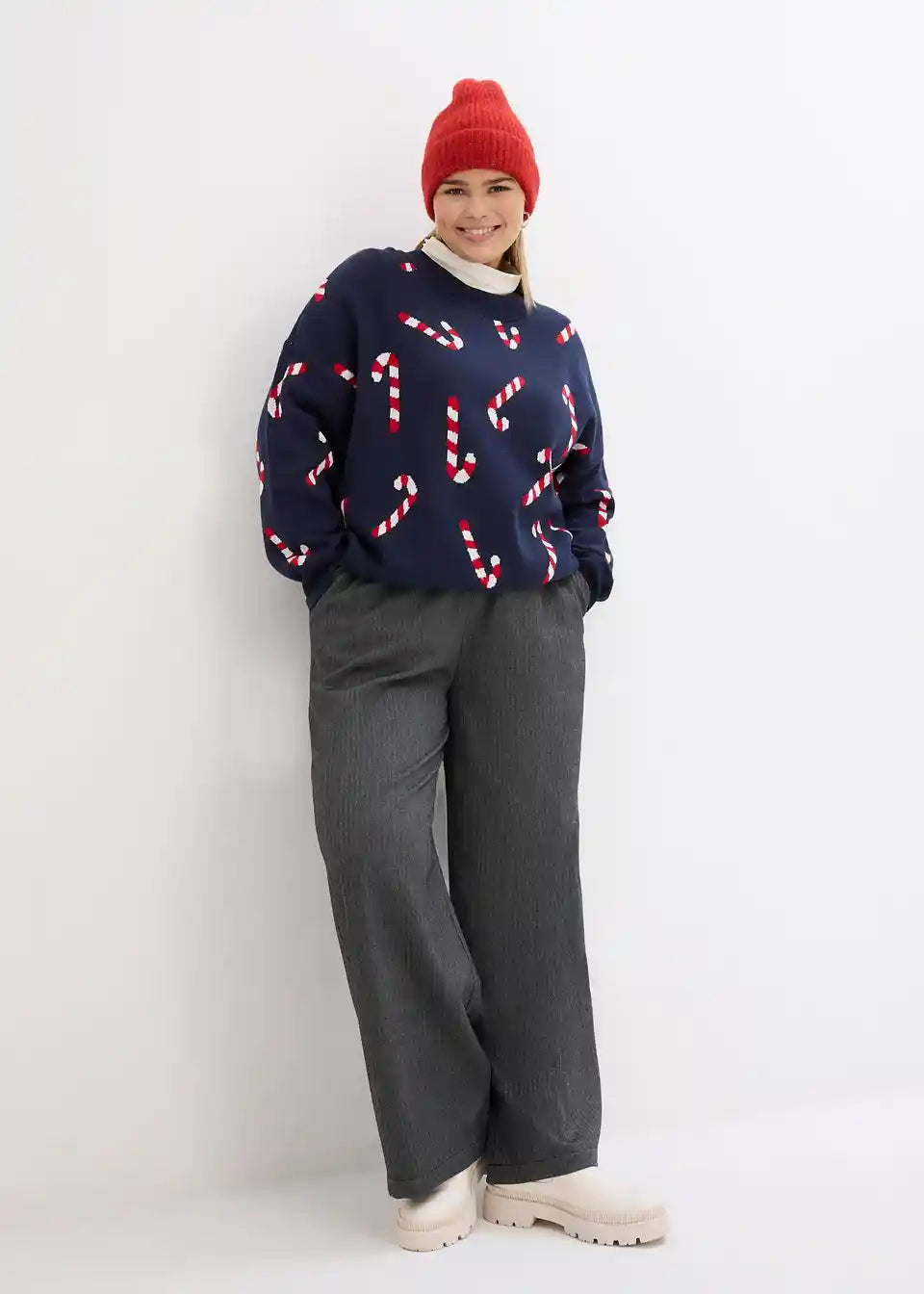 Božični pulover z okroglim izrezom v ohlapnem kroju