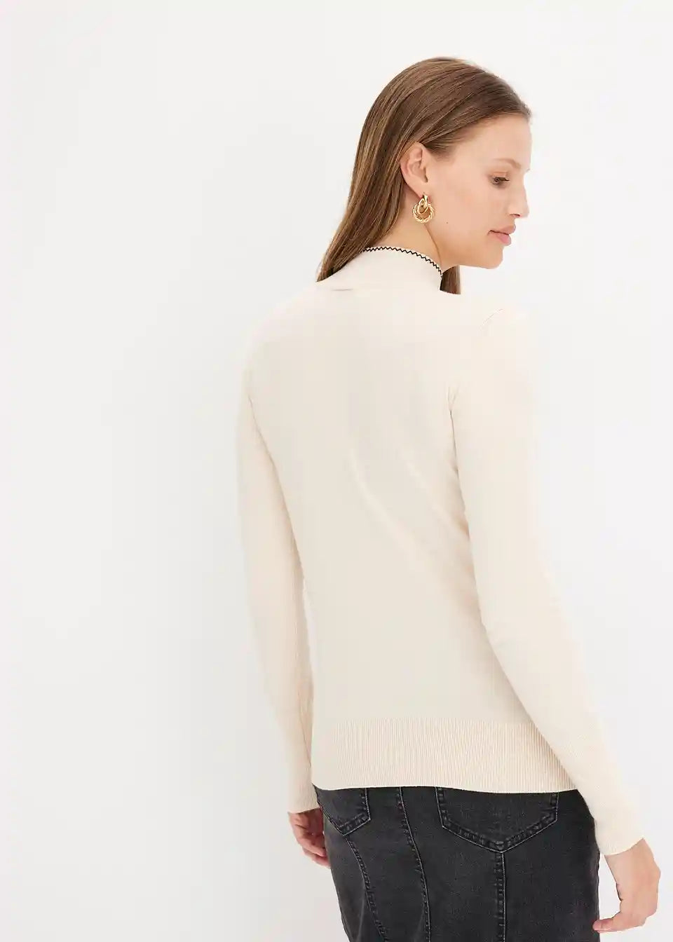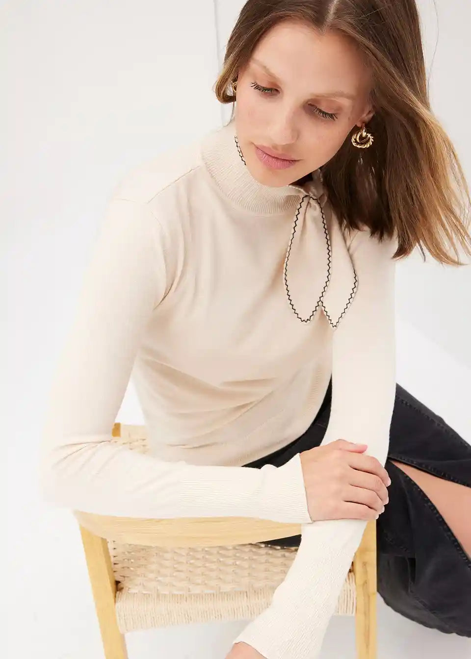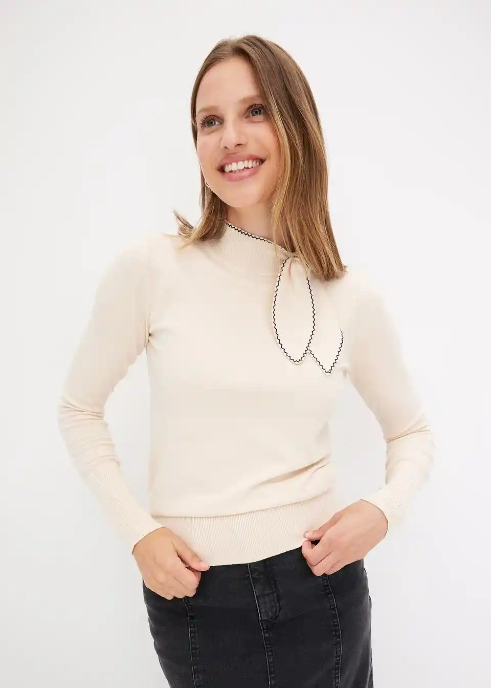 Udoben pulover z ženstvenim detajlom na ovratniku