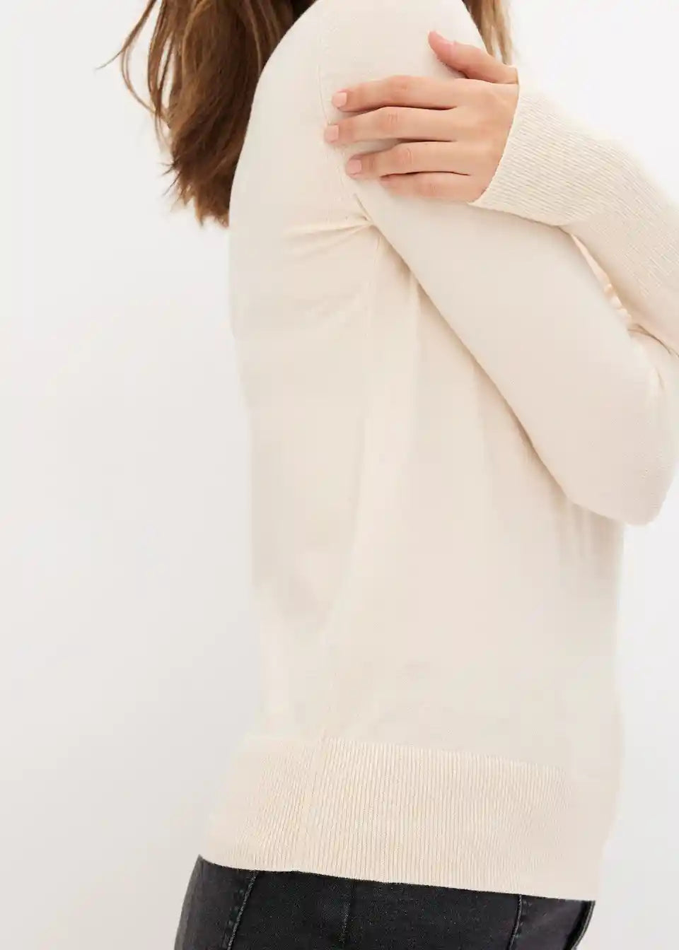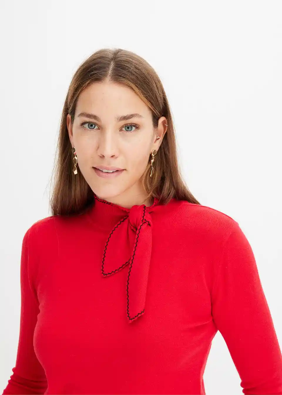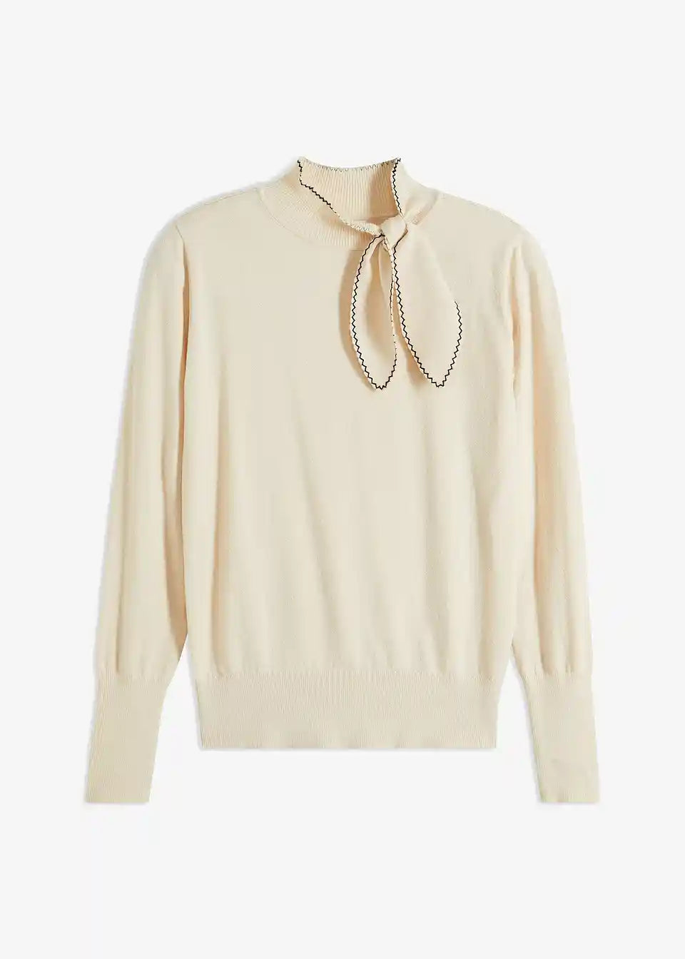 Udoben pulover z ženstvenim detajlom na ovratniku