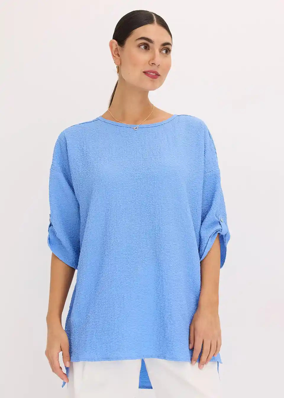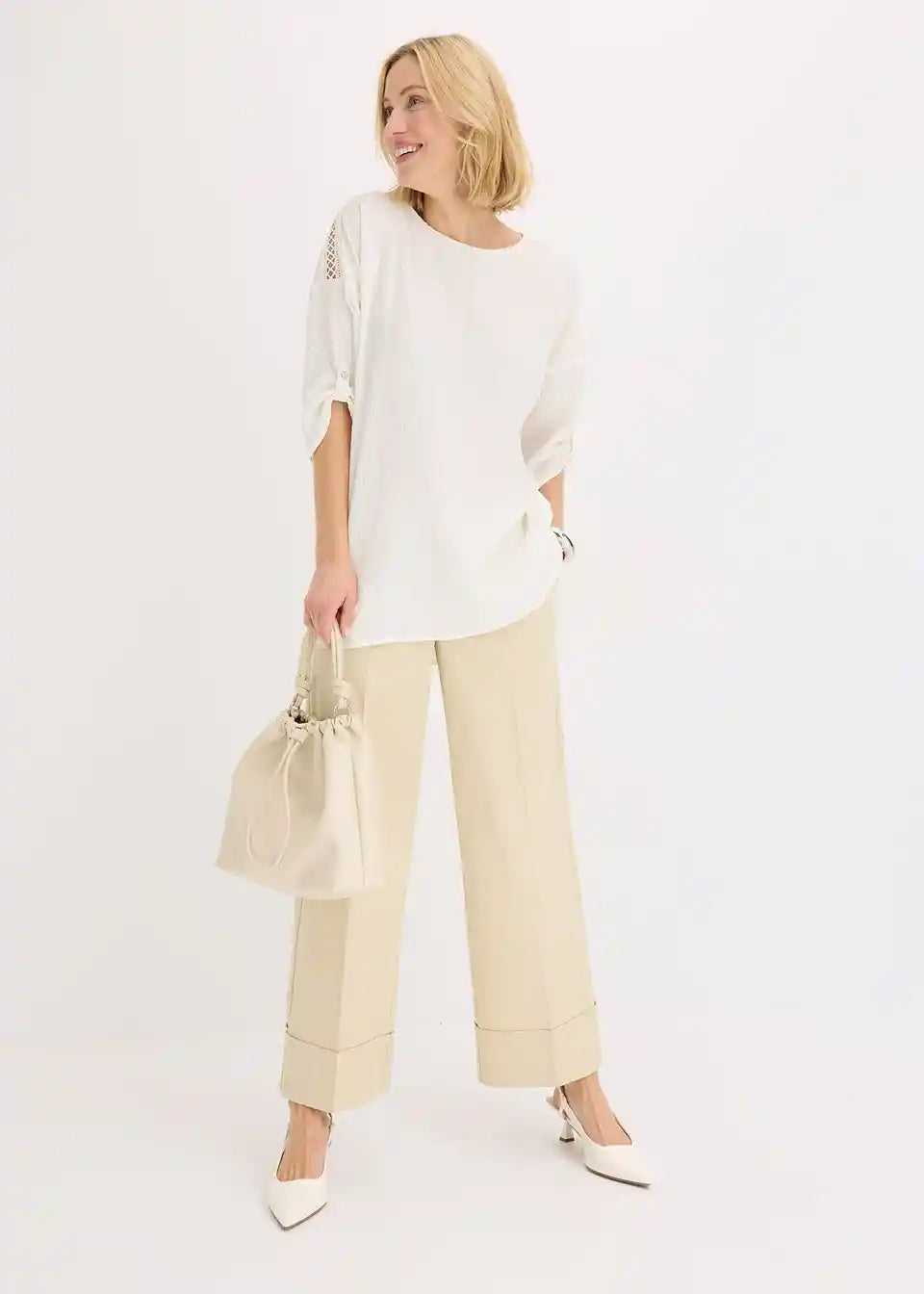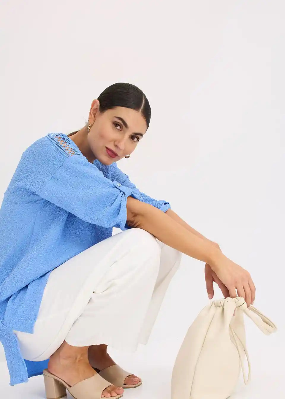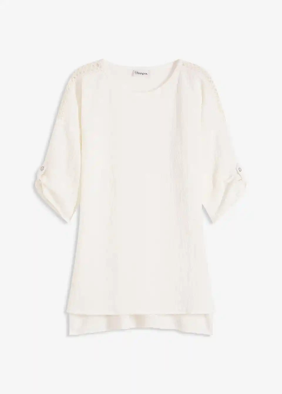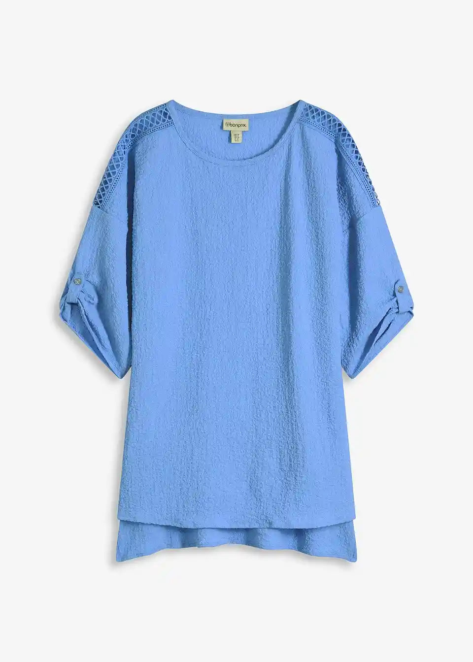 Tunika iz strukturiranega materiala s čipkastim trakom