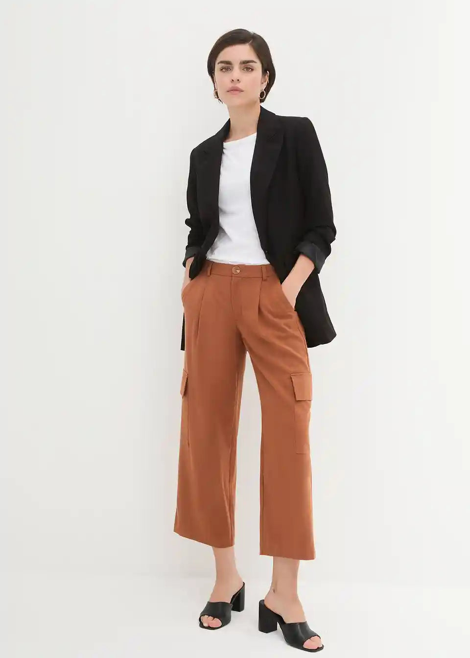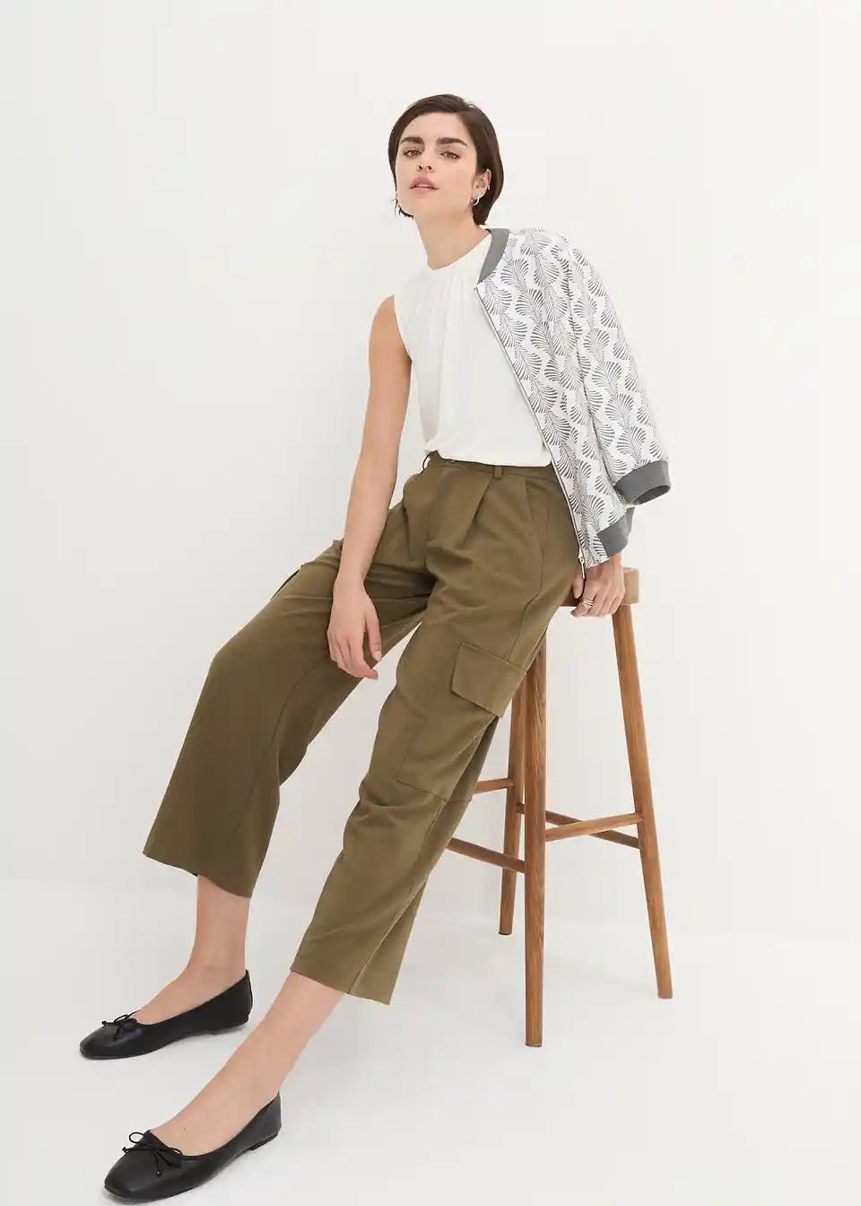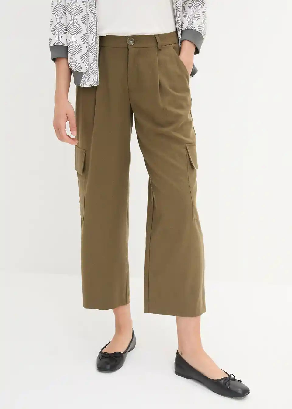 Široke 7/8-hlače s cargo žepi