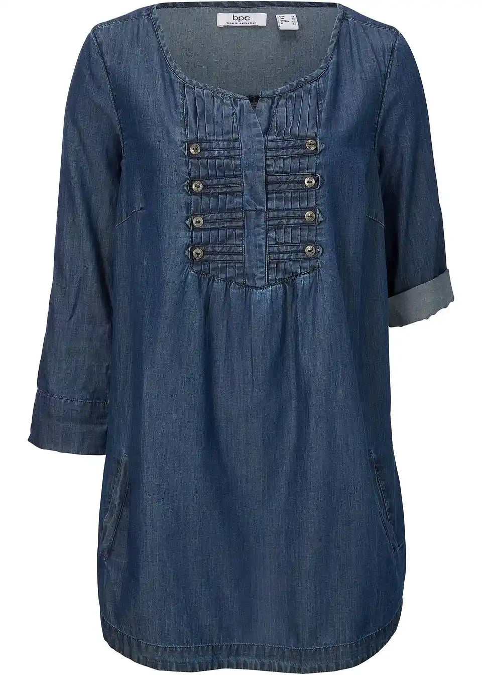 Ta bluzica s polovičnimi rokavi izstopa v stilu tunike in očara s svojo figuri prijazno obliko. Privlačne podrobnosti temu modelu iz bpc kolekcije dodajo privlačen pridih. V ospredju je narodni motiv z gubami in gumbi pod okroglim izrezom. Na višini komolca so zavihek za pritrditev rokavov. Majhni stranski razporki in stranski všiti žepi učinkovito dopolnjujejo bluzico s polovičnimi rokavi.