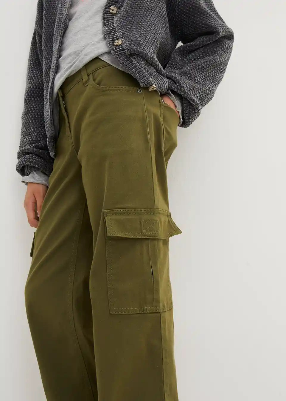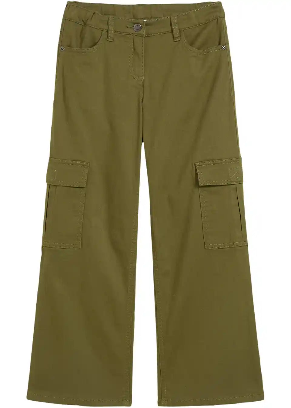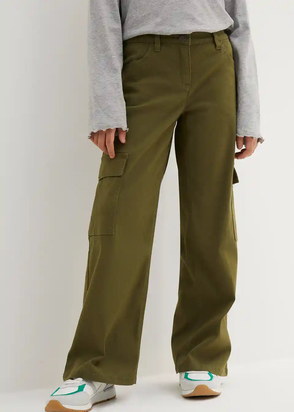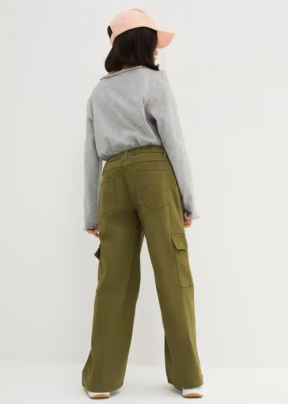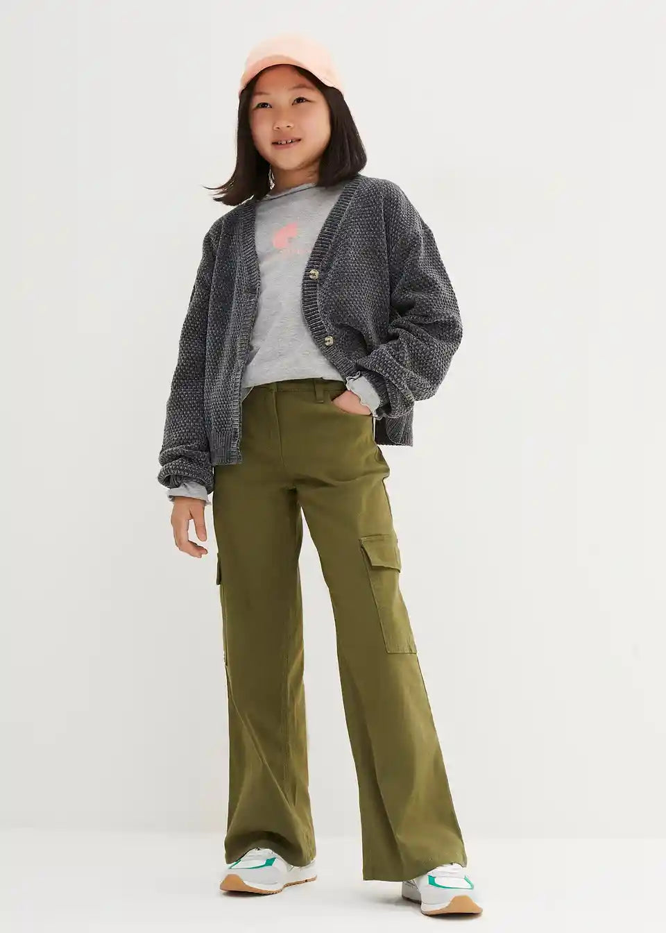 Dekliške hlače s cargo žepi in širokimi hlačnicami