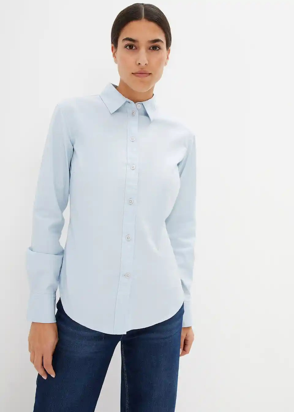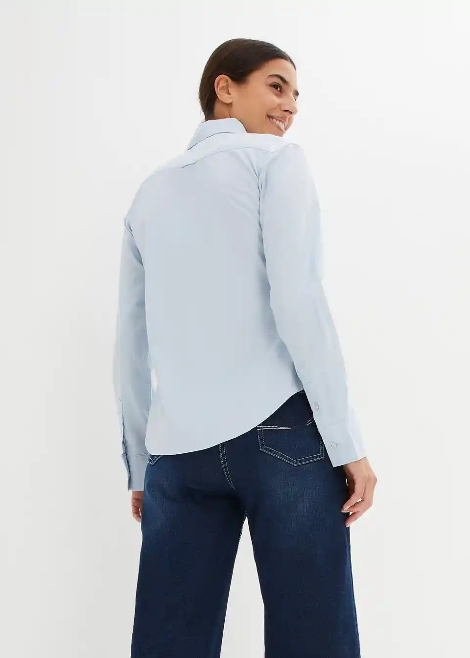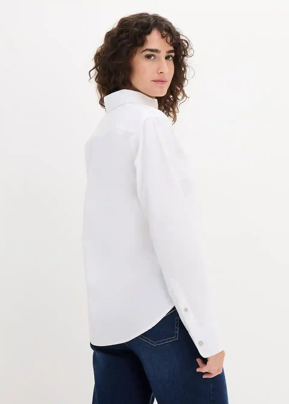Klasična bluza iz organskega bombaža z zaobljenim robom in zapenjanjem na gumbe