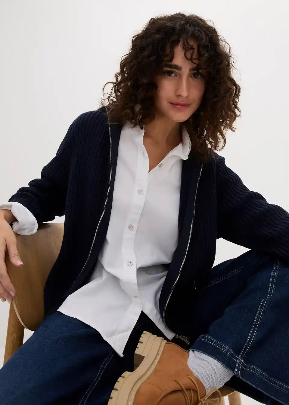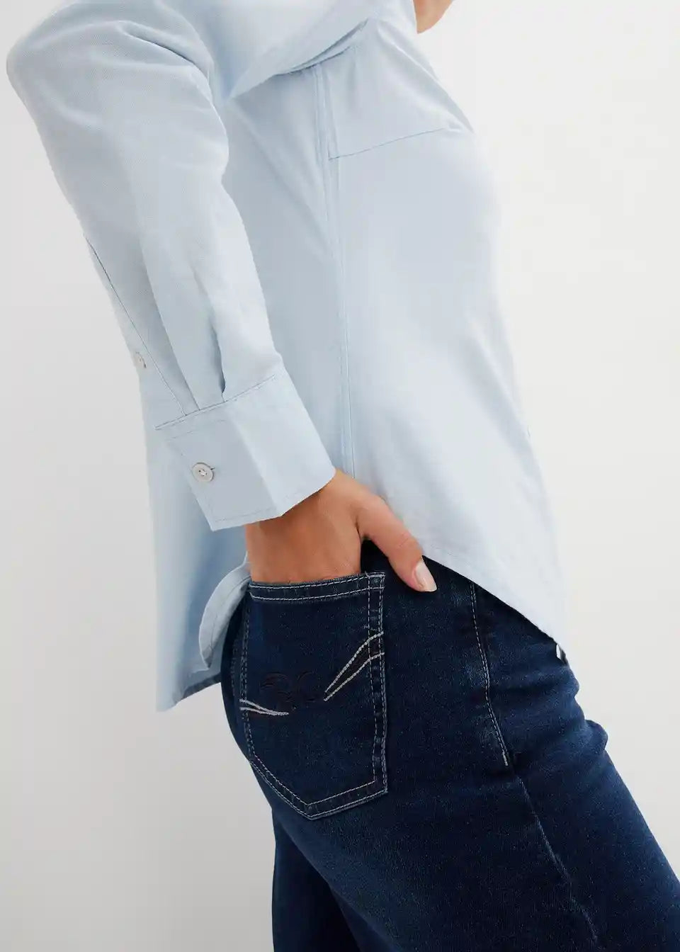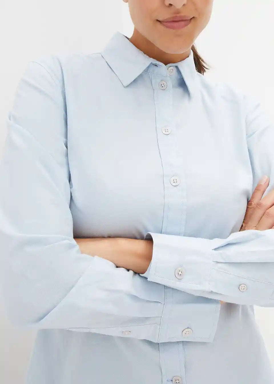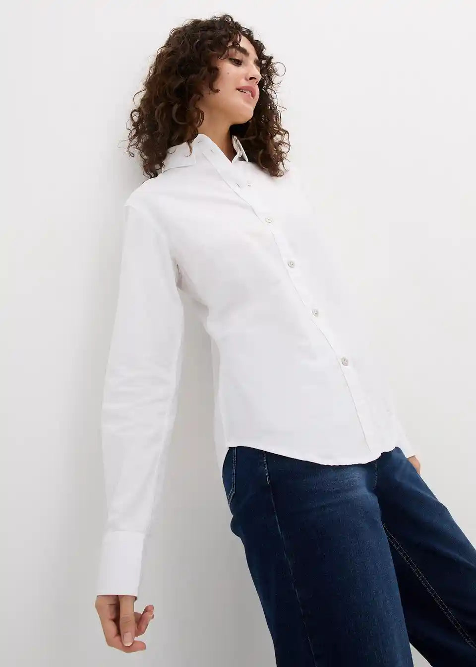 Klasična bluza iz organskega bombaža z zaobljenim robom in zapenjanjem na gumbe