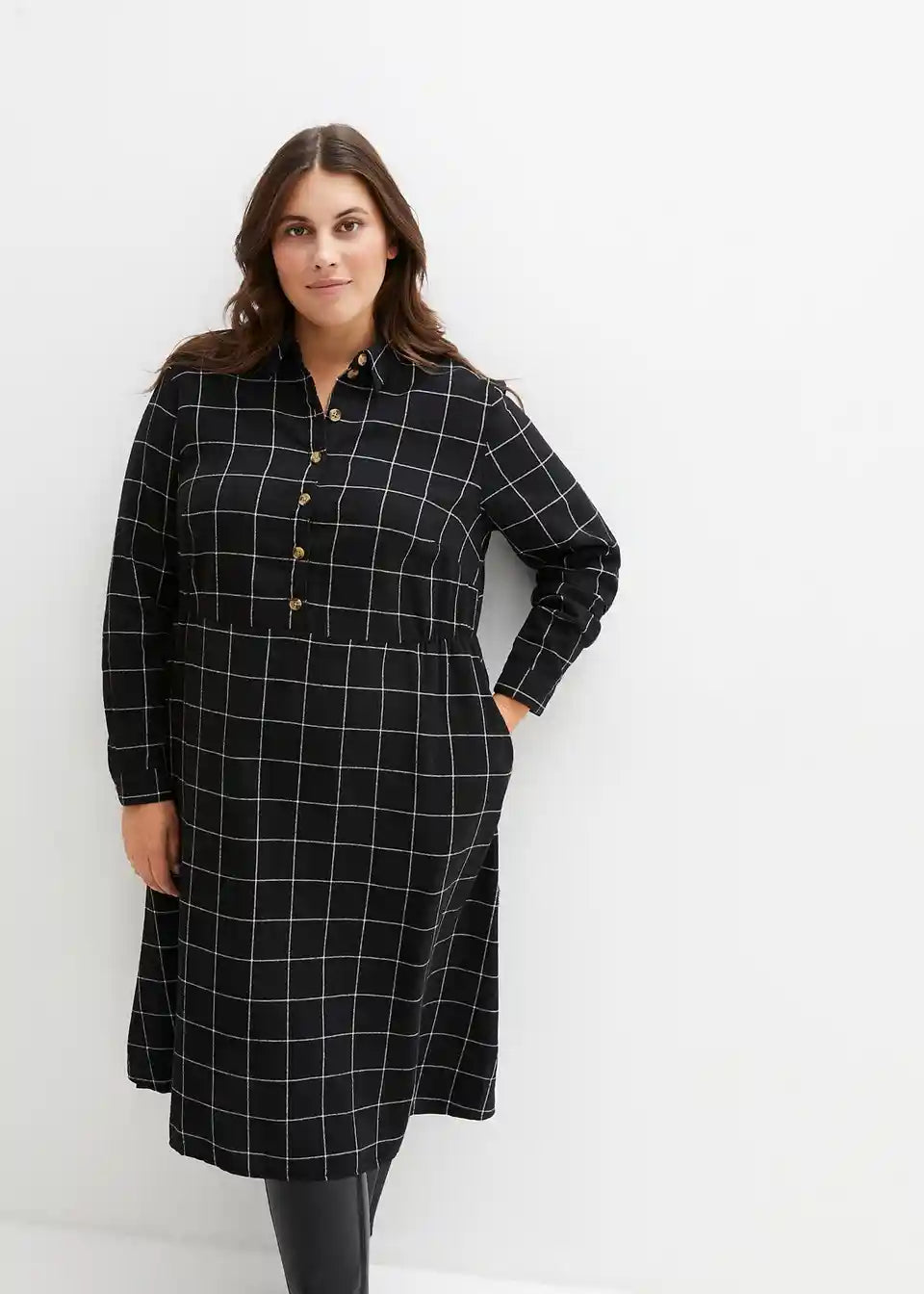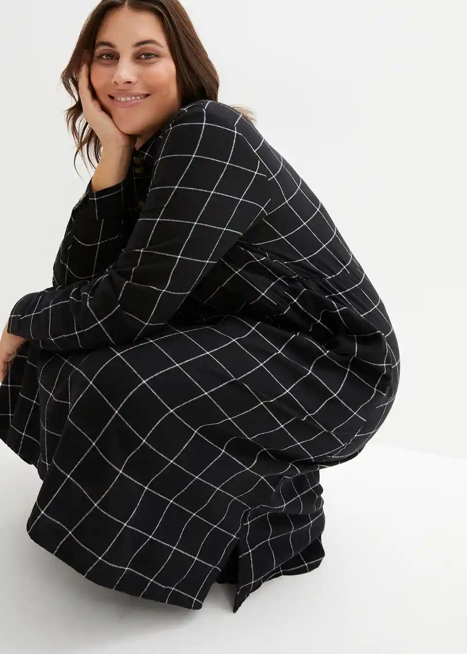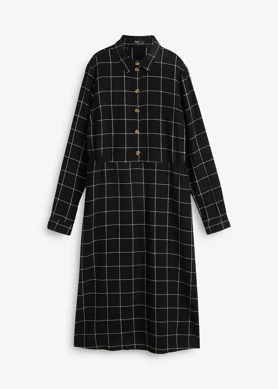 Flanelasta srajčna obleka do kolen s karirastim vzorcem