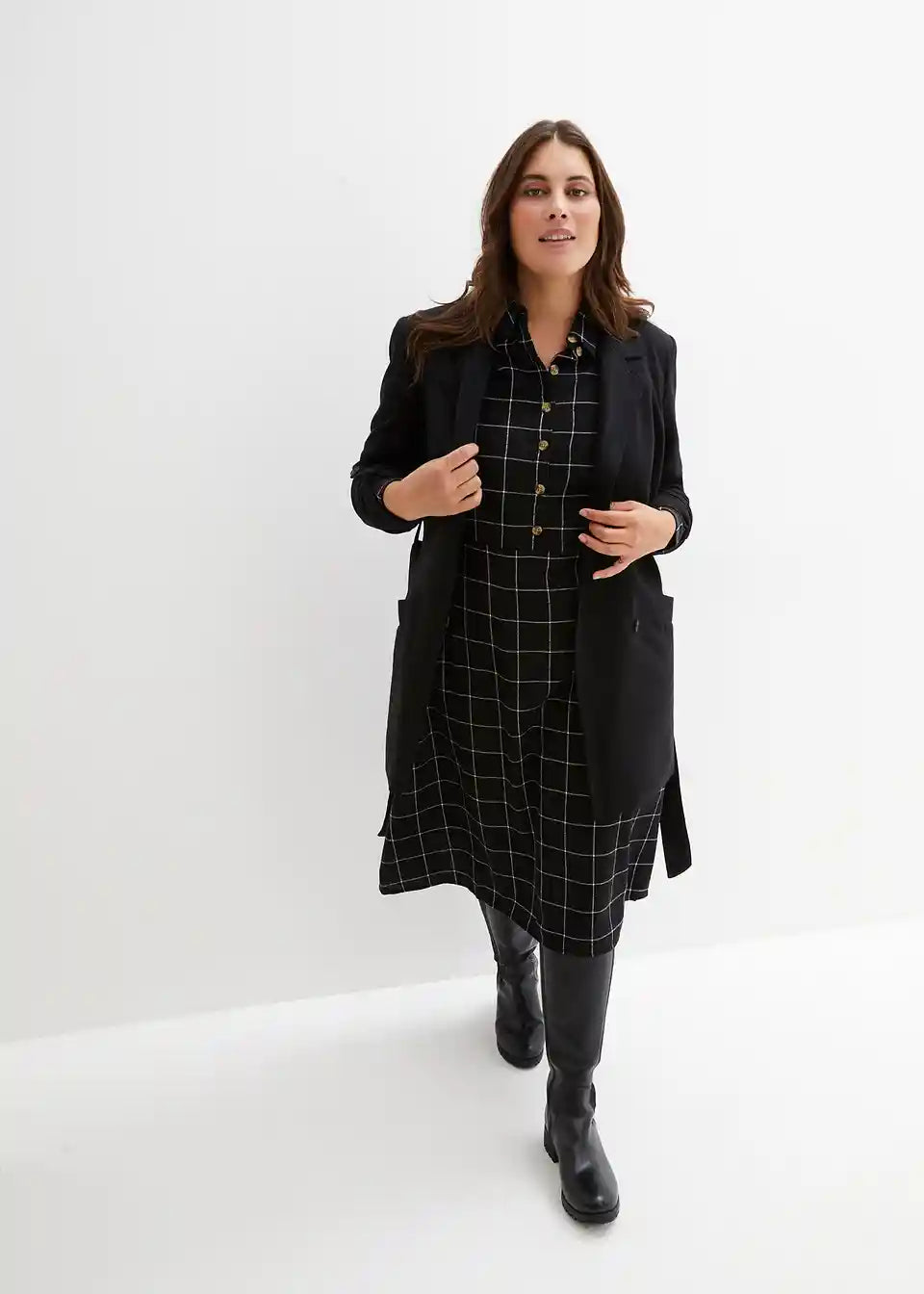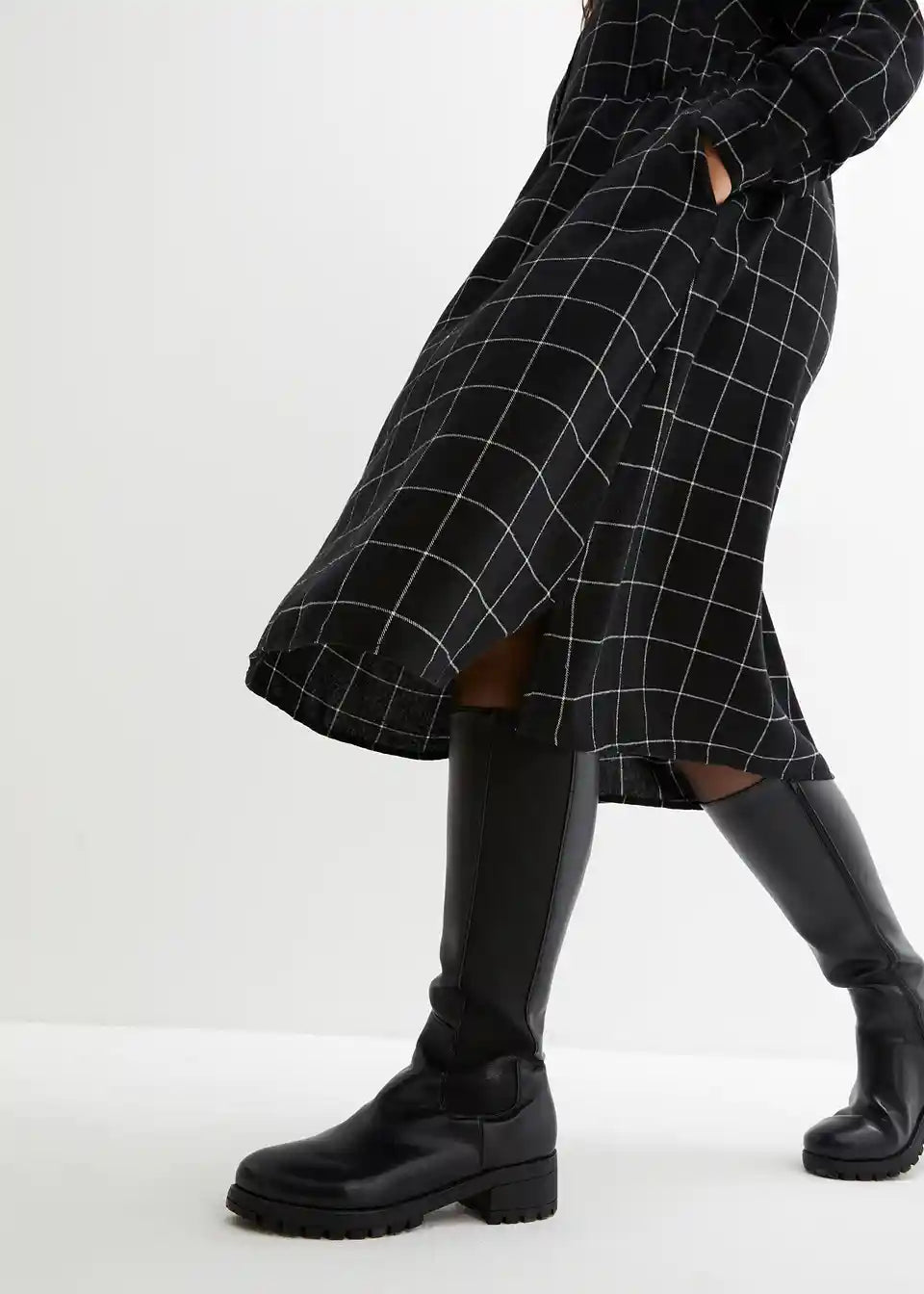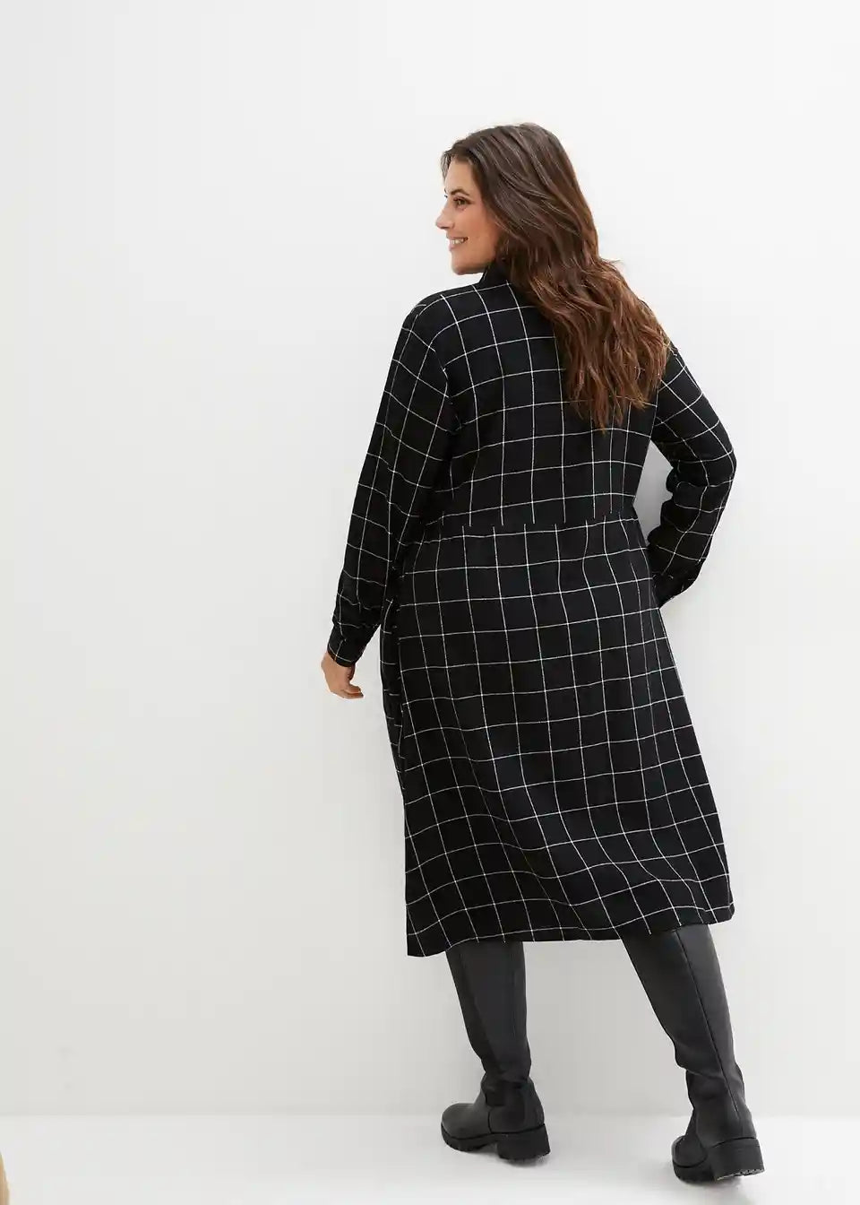 Flanelasta srajčna obleka do kolen s karirastim vzorcem
