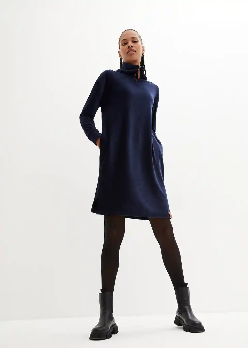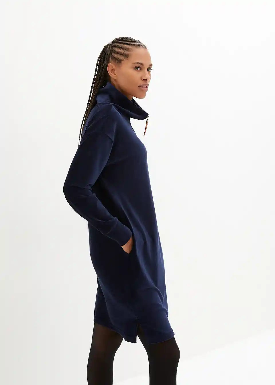 Obleka iz žametnega jerseyja v ohlapnem kroju
