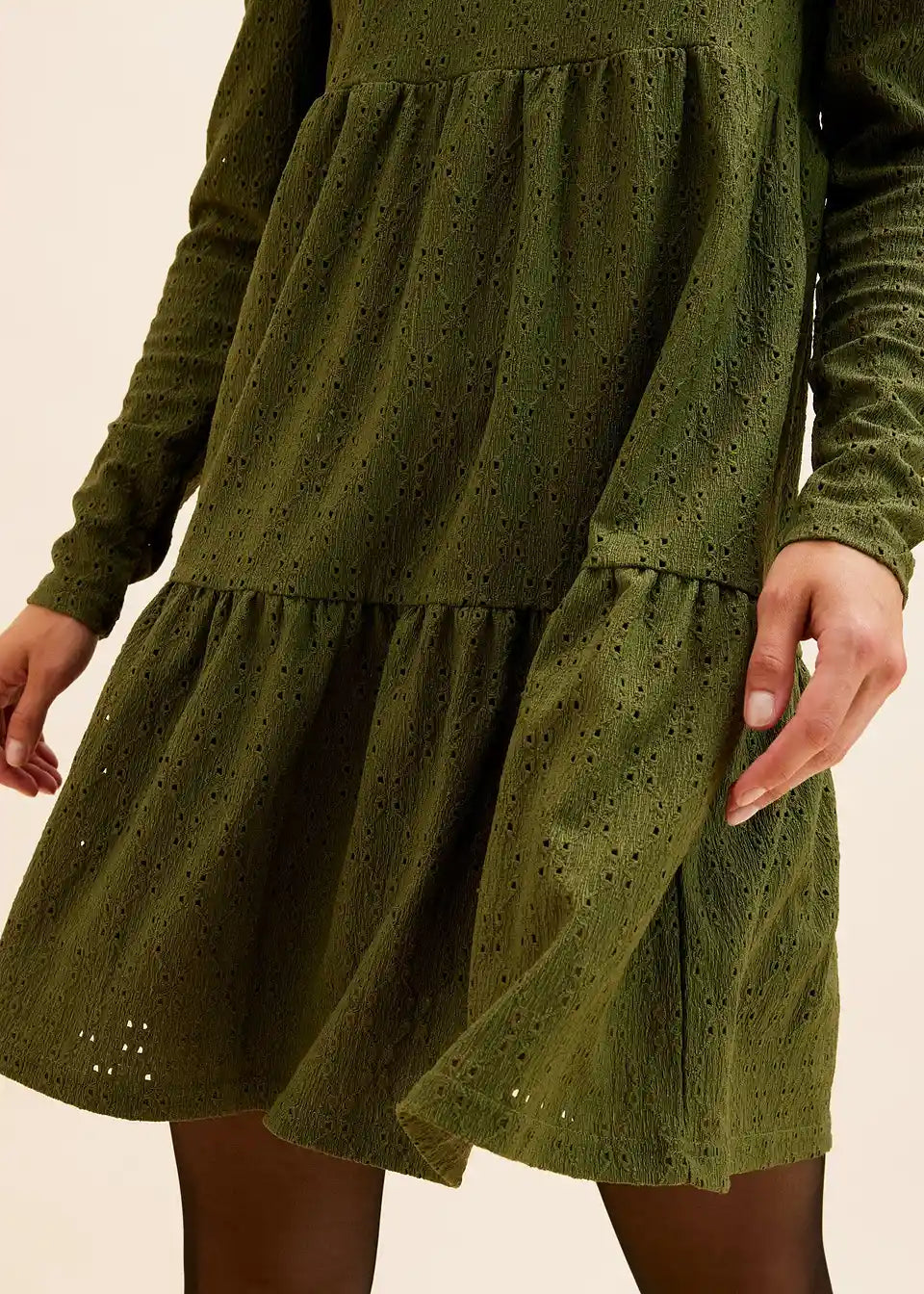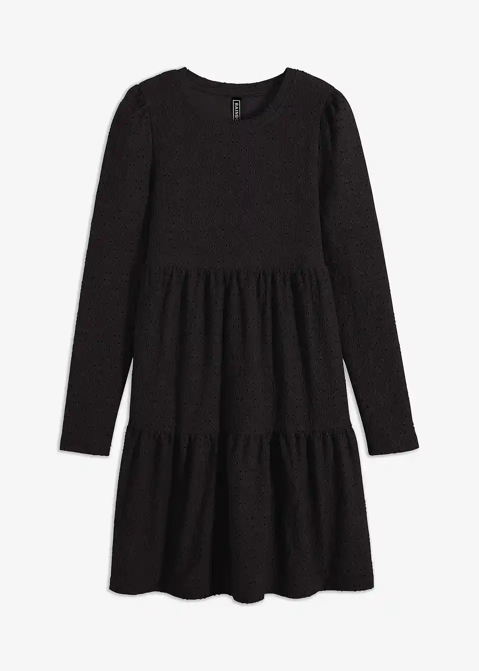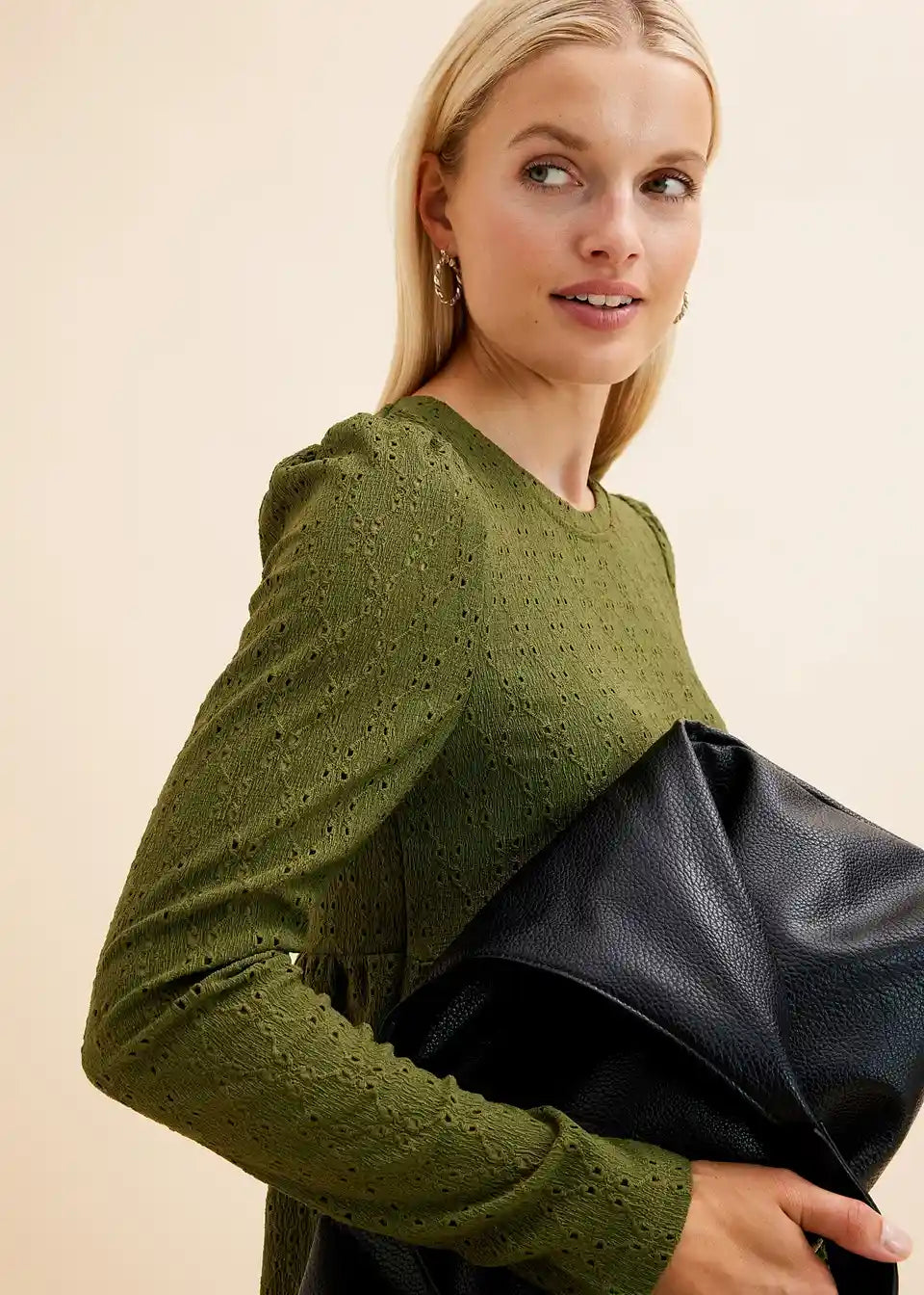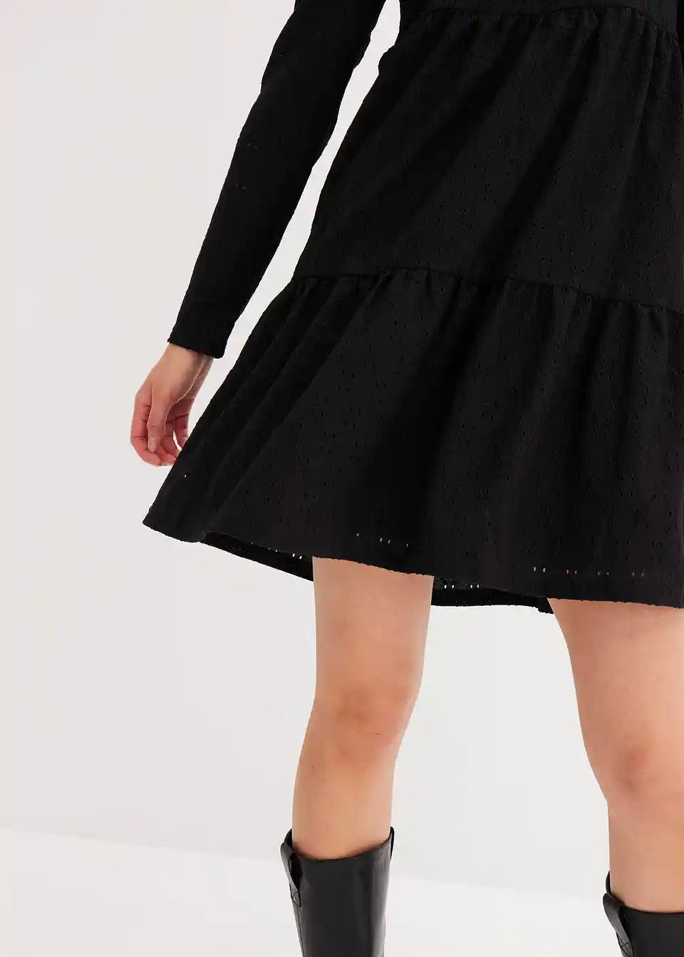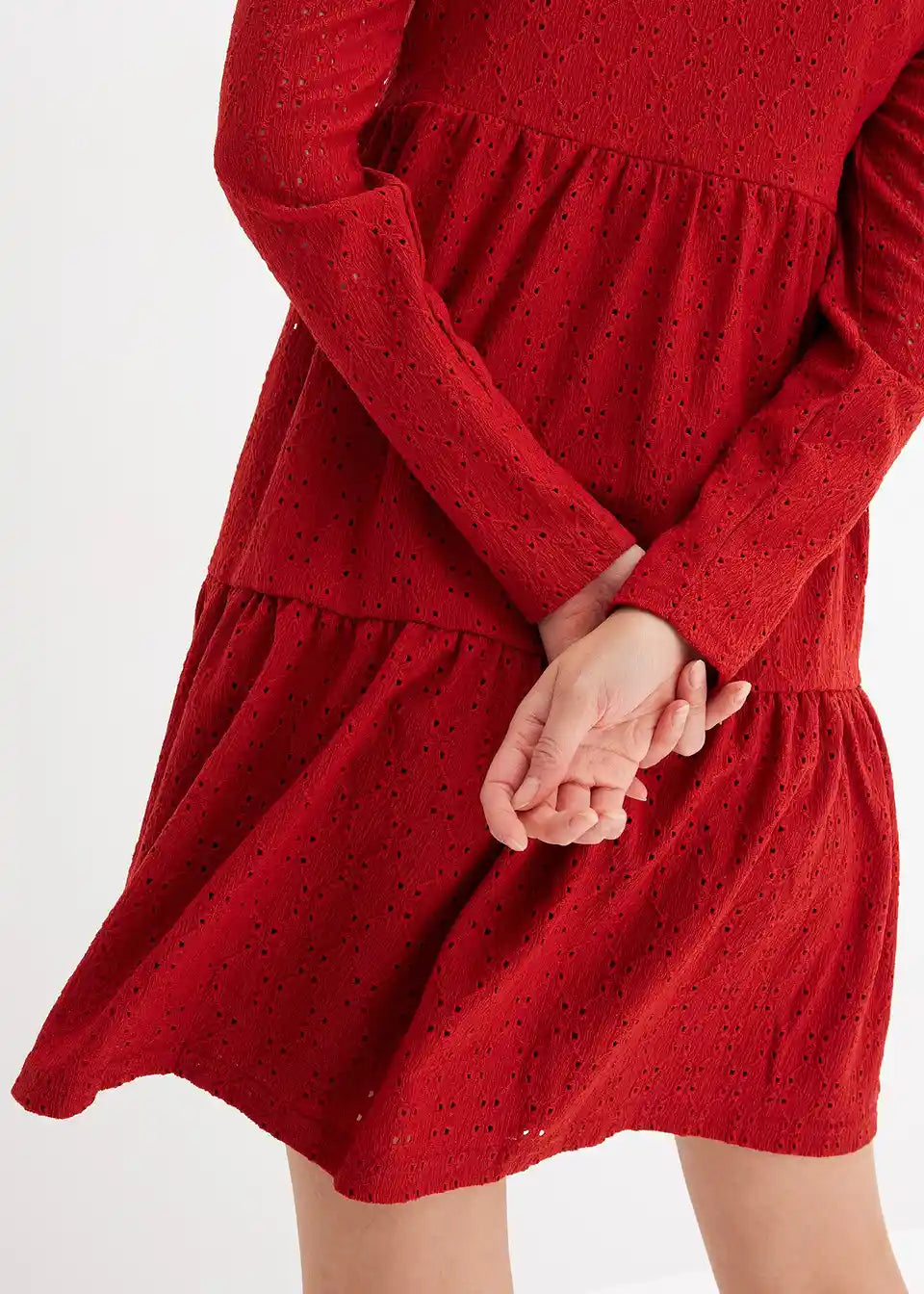 Majica obleka z dolgimi rokavi, z luknjičastim vzorcem in naborki iz Crêpea