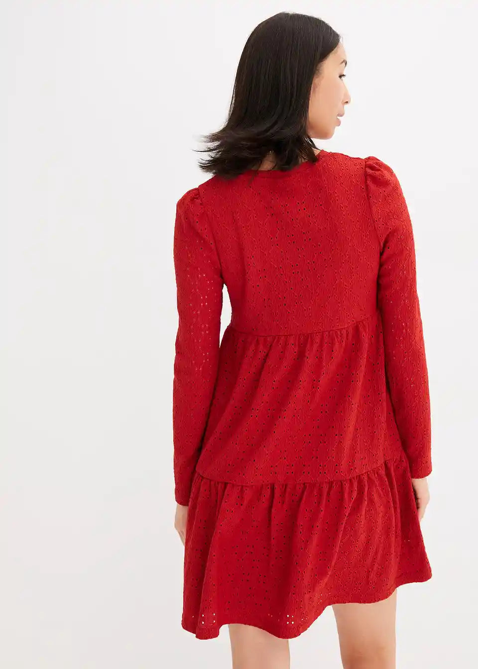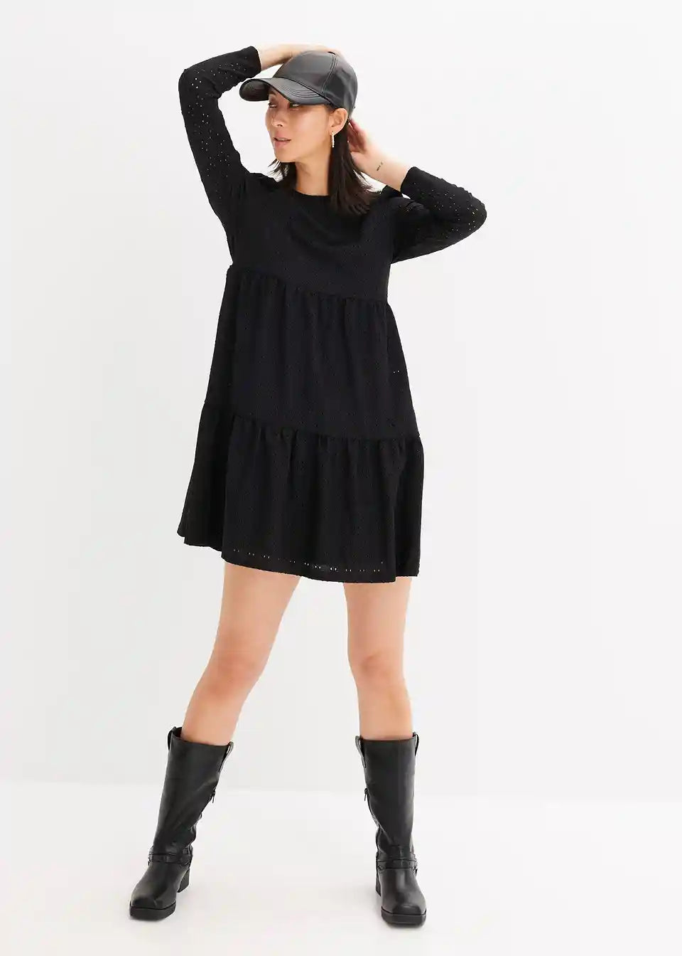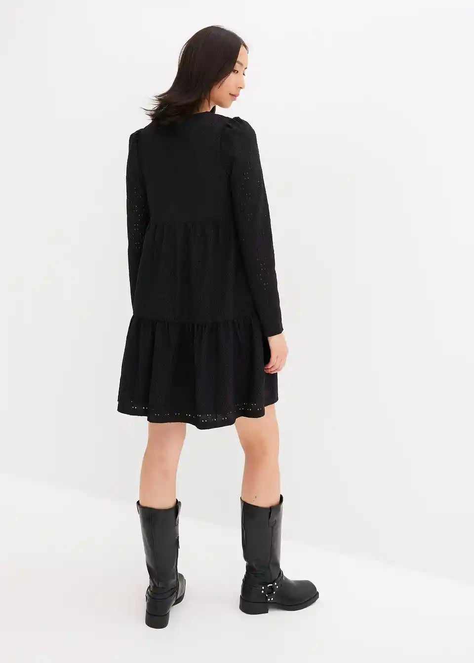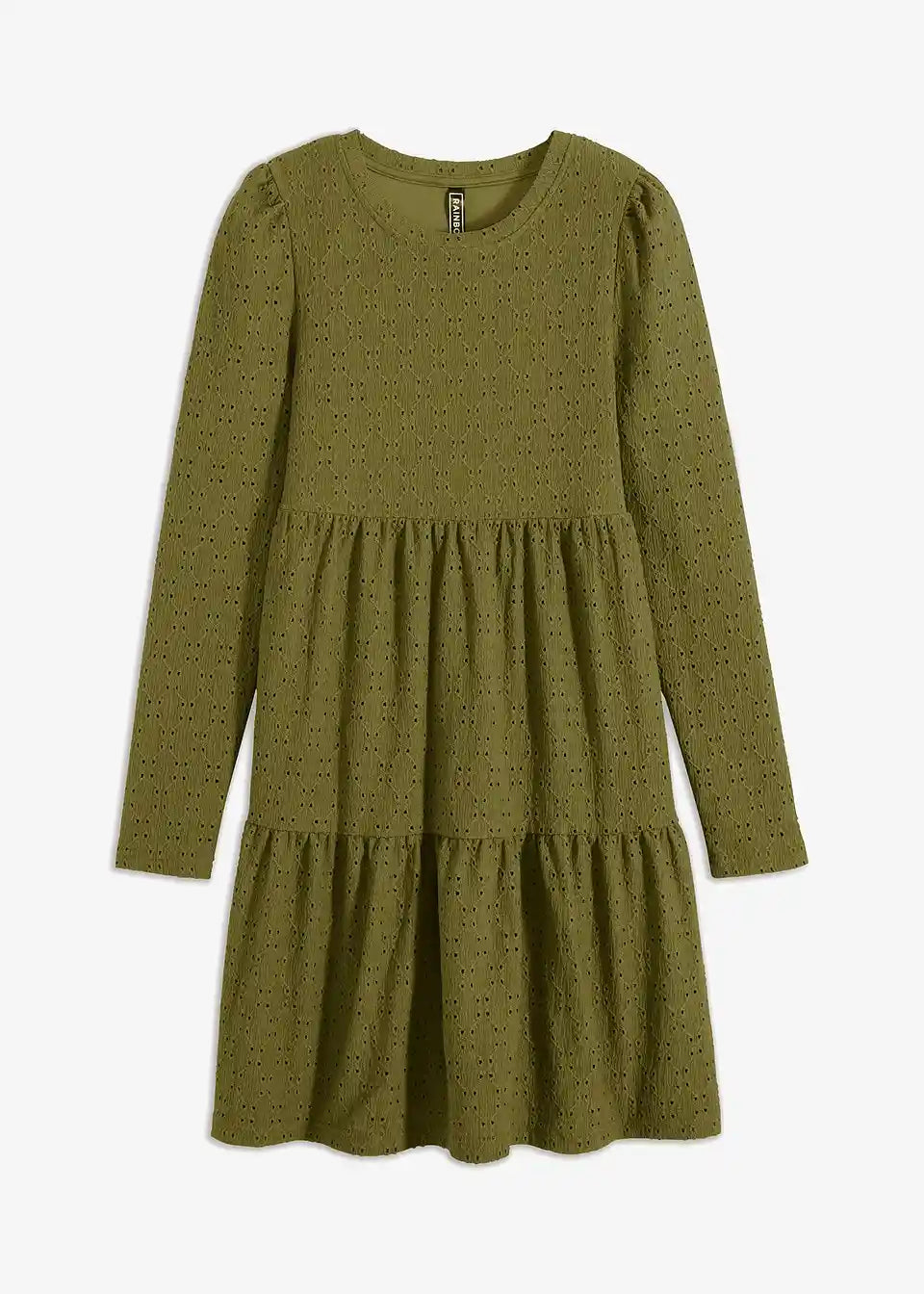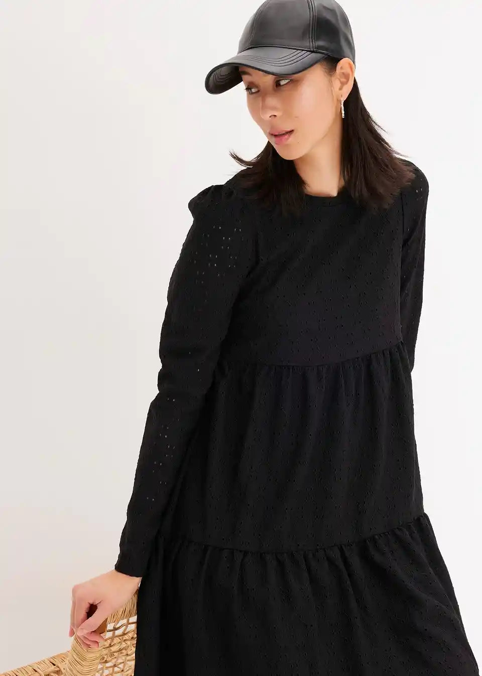 Majica obleka z dolgimi rokavi, z luknjičastim vzorcem in naborki iz Crêpea