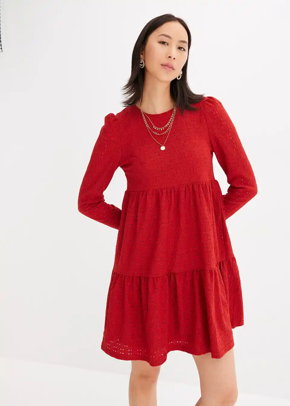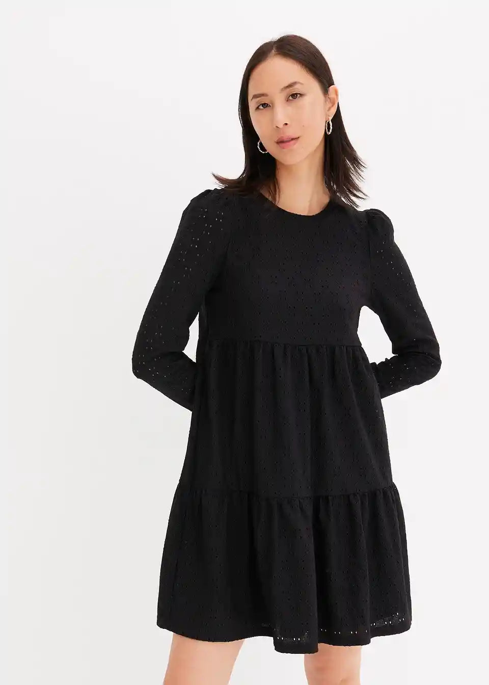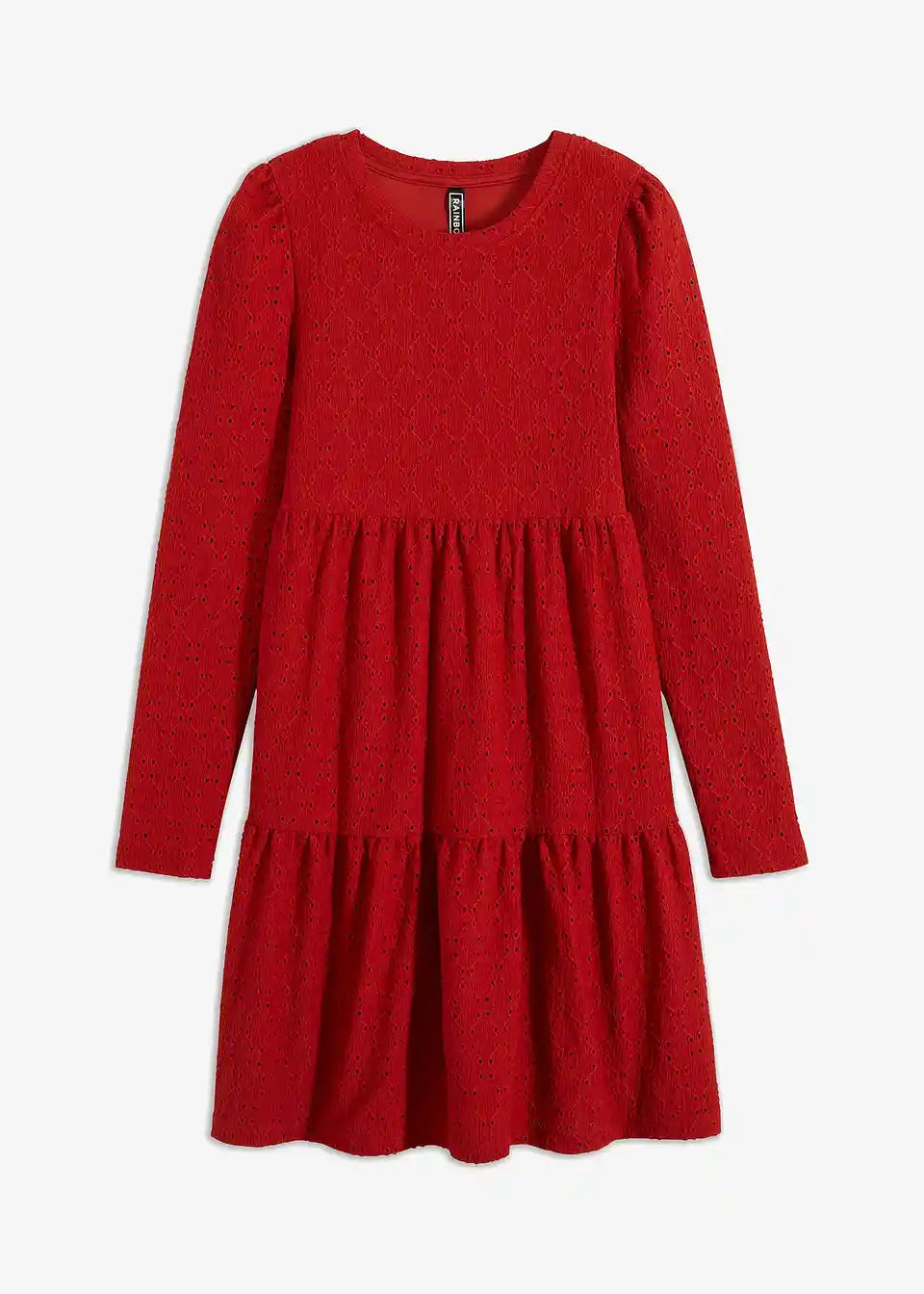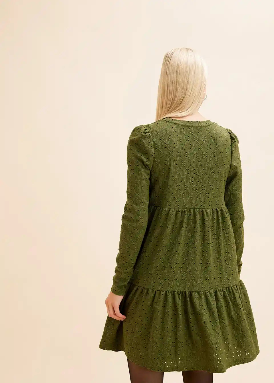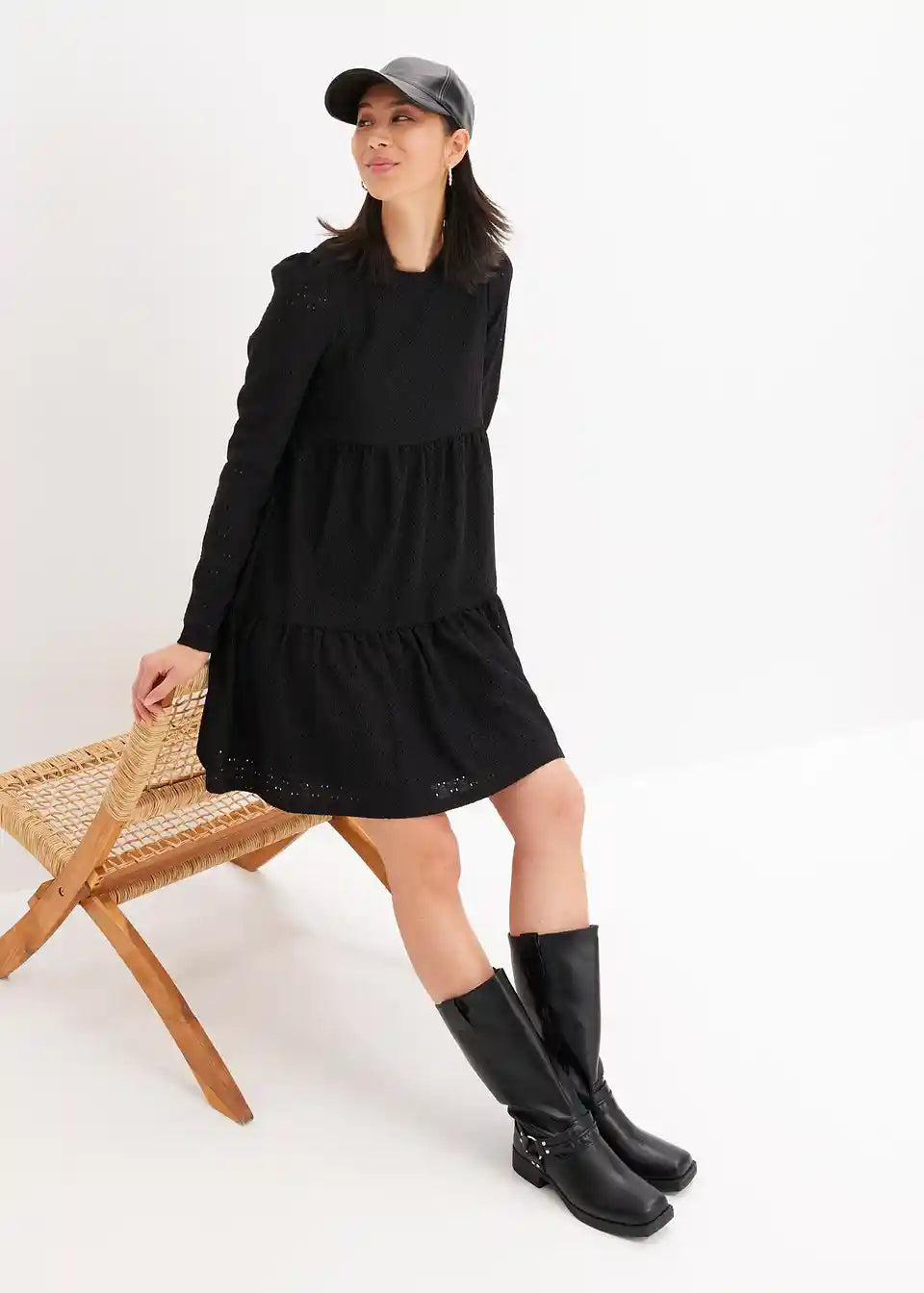 Majica obleka z dolgimi rokavi, z luknjičastim vzorcem in naborki iz Crêpea