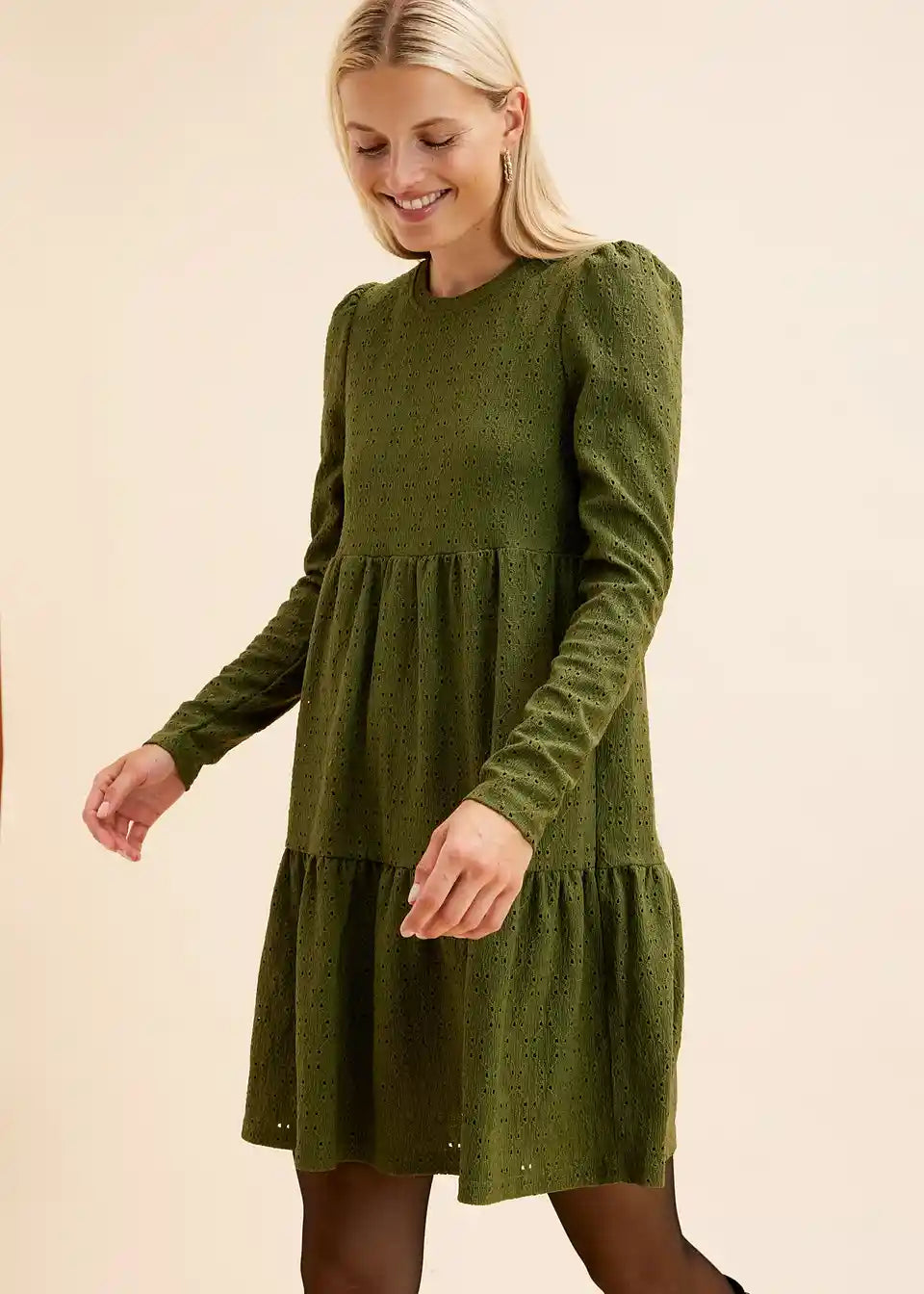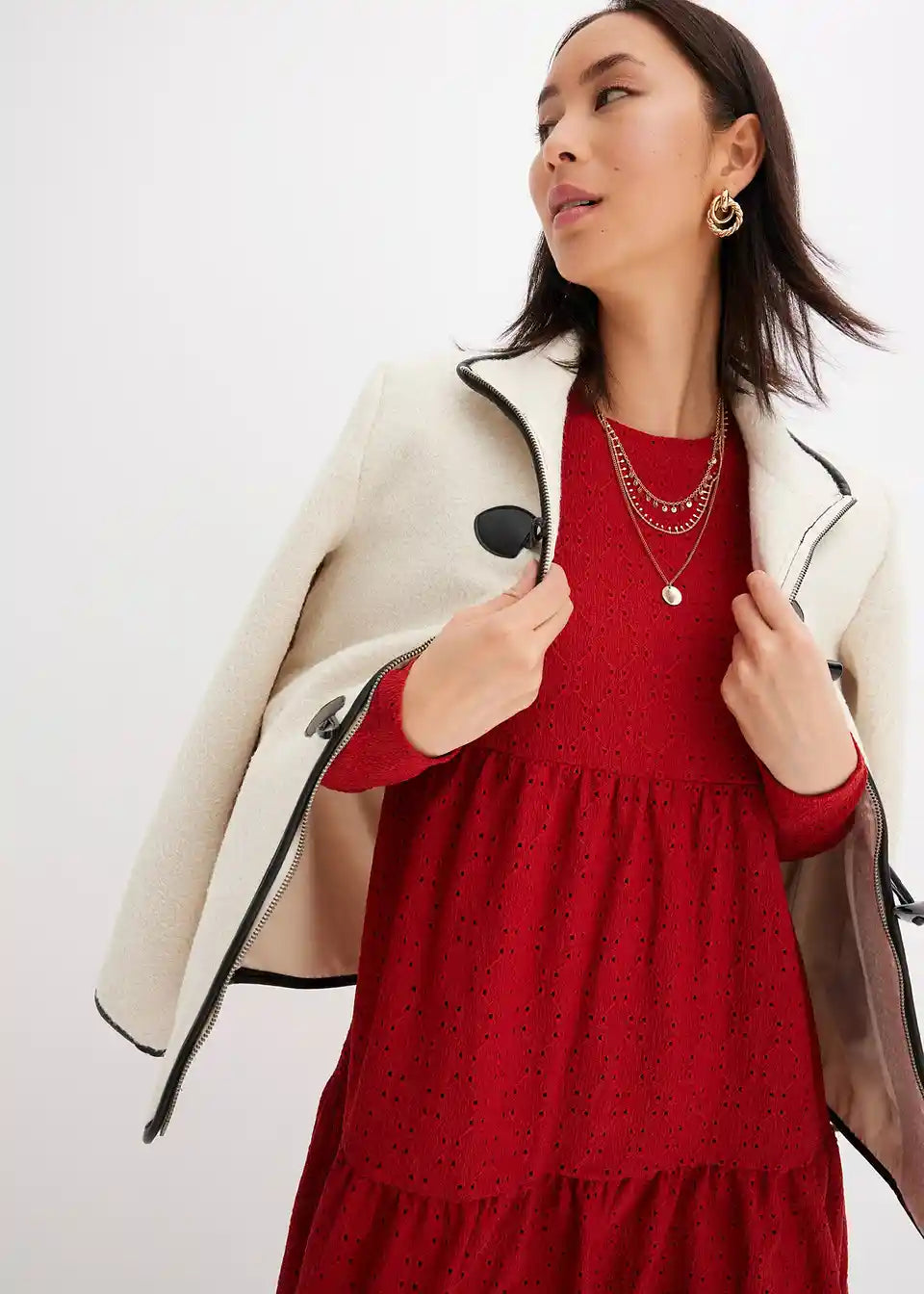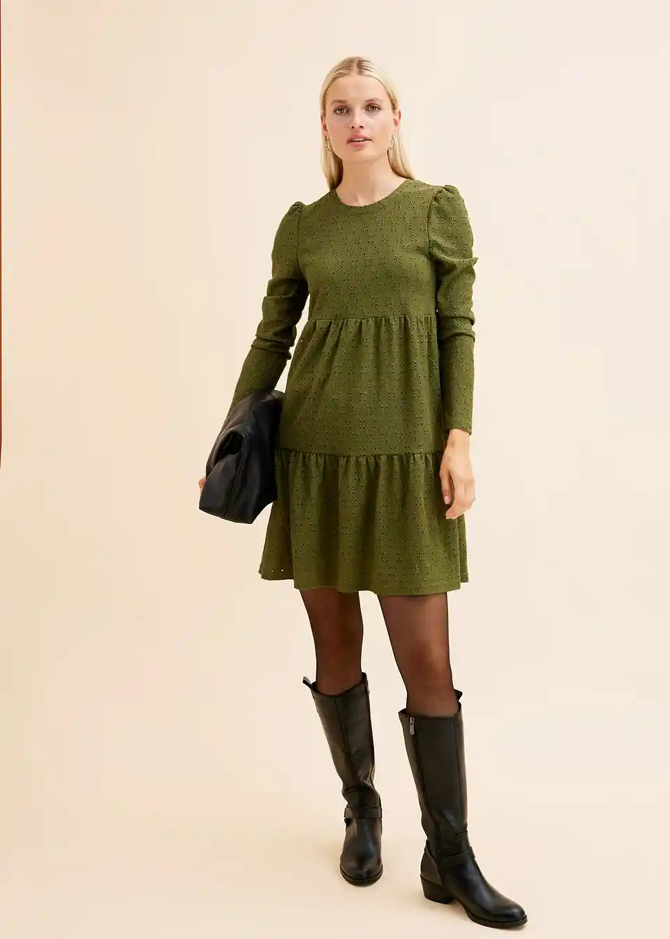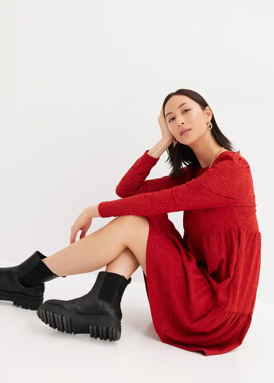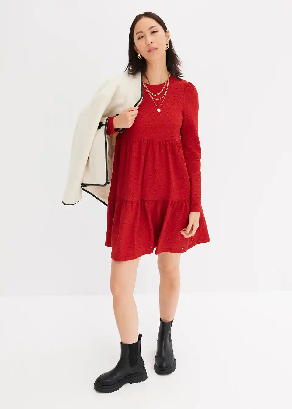 Majica obleka z dolgimi rokavi, z luknjičastim vzorcem in naborki iz Crêpea