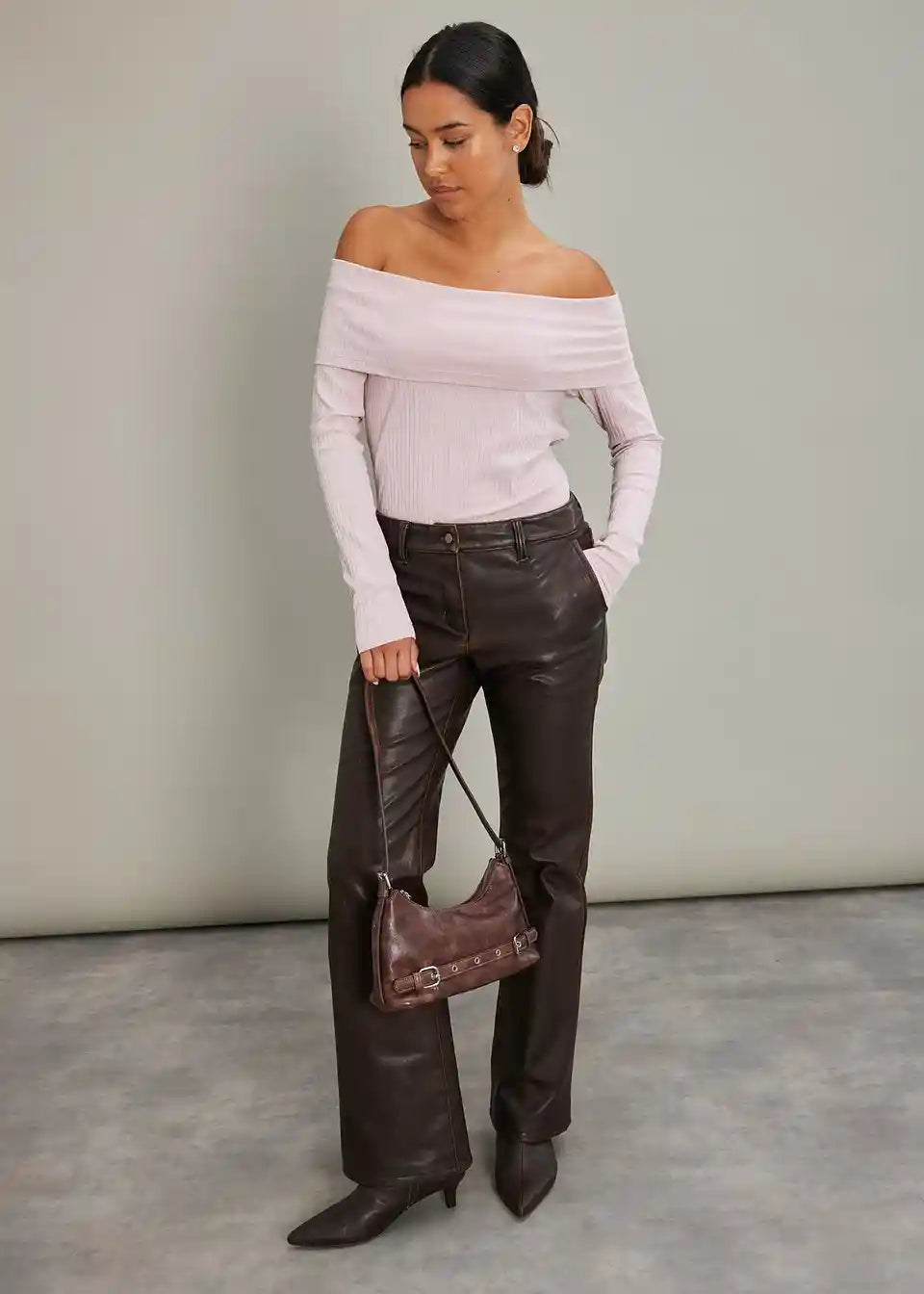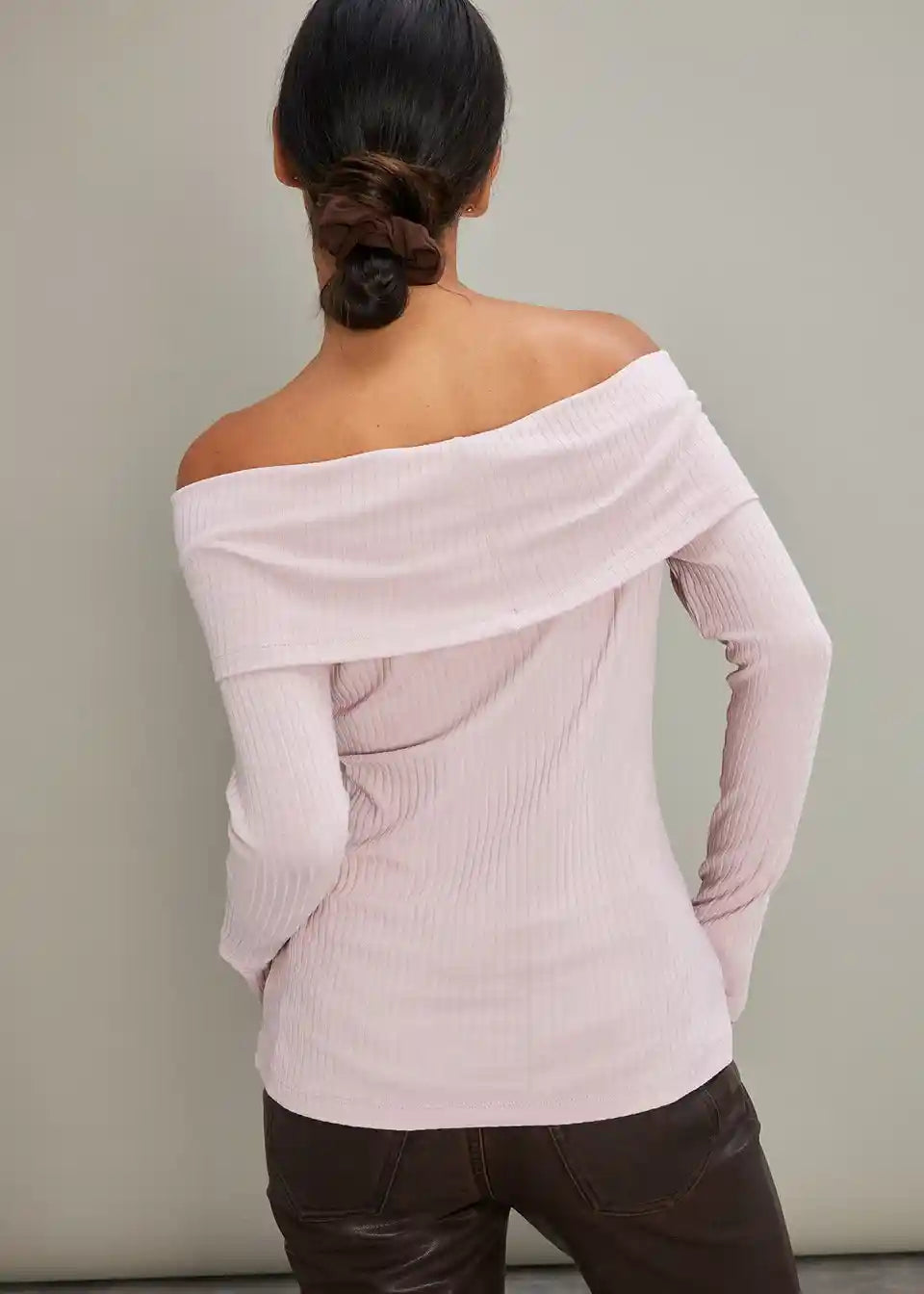 Modna majica z dolgimi rokavi in širokim Carmen izrezom.