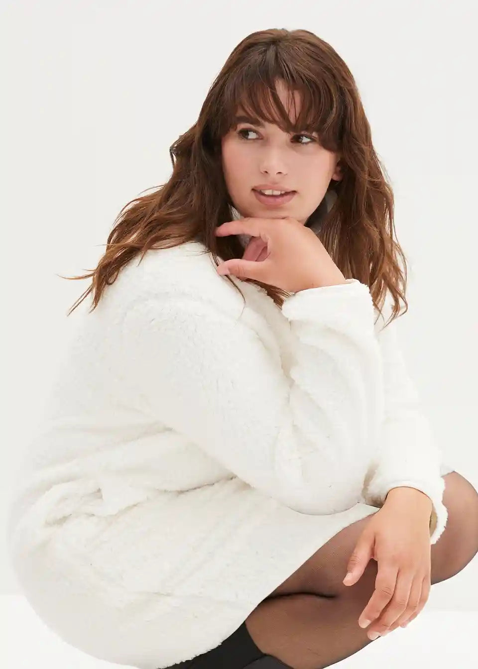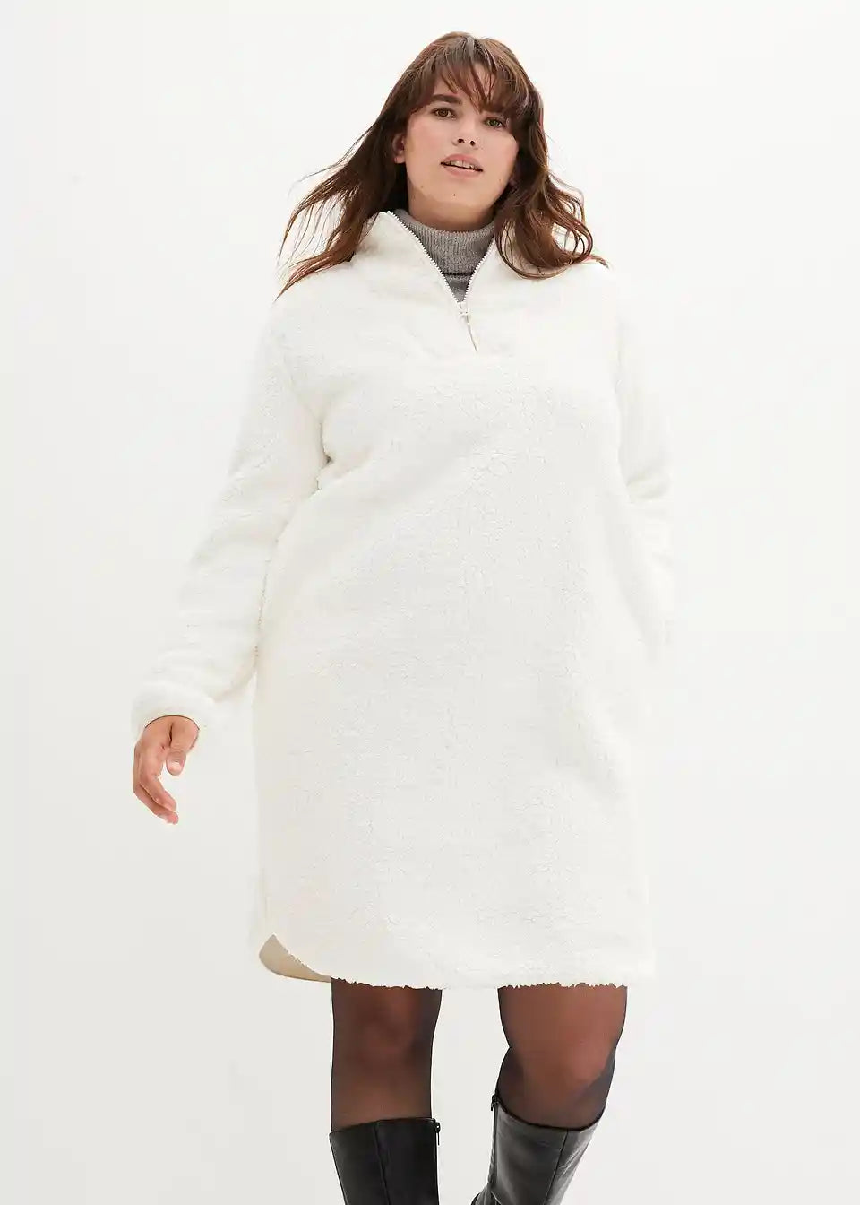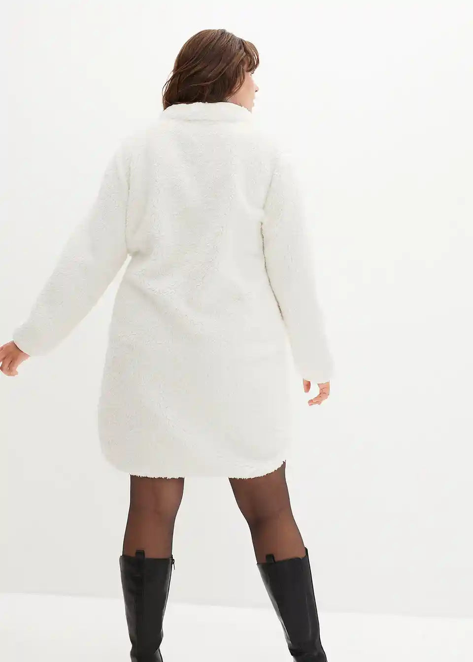 Mini obleka iz umetnega ovčjega krzna s trojanskim ovratnikom