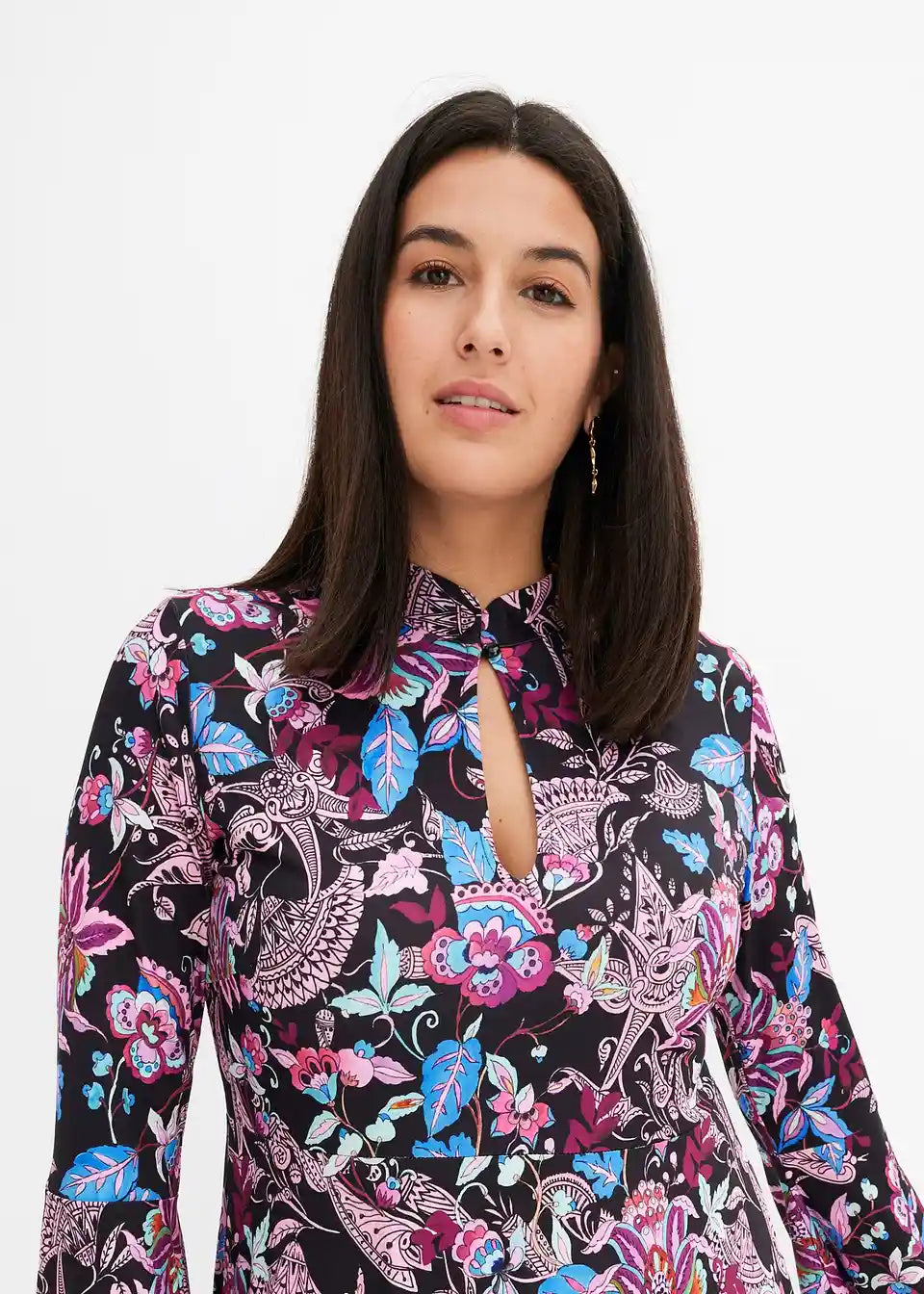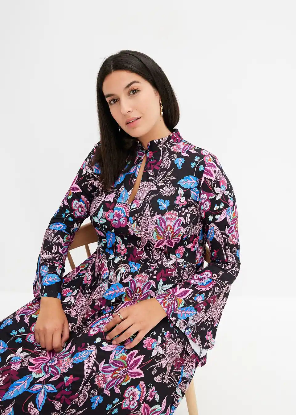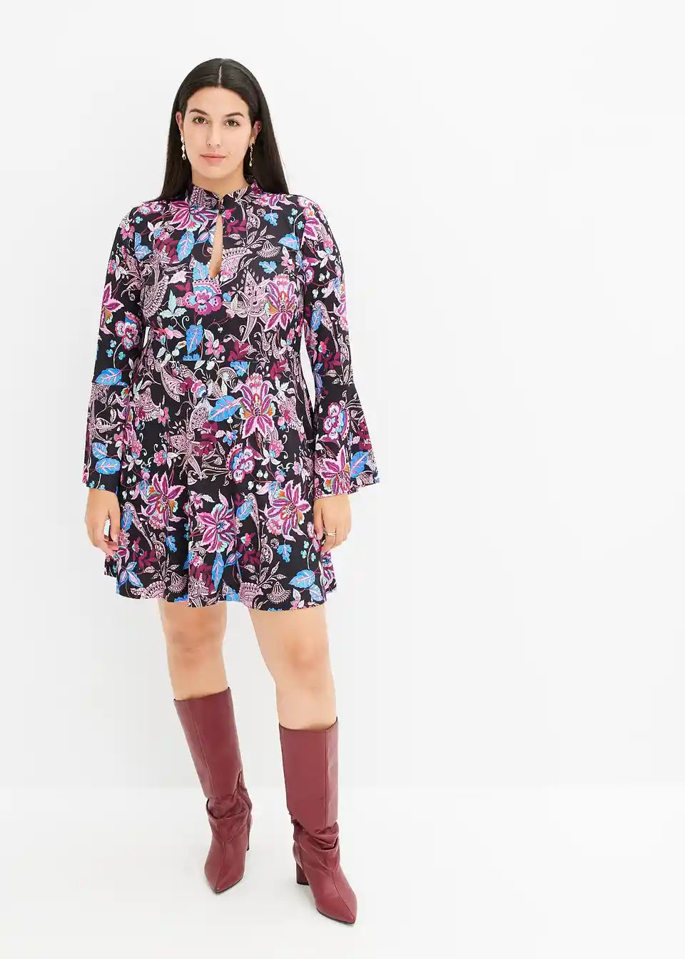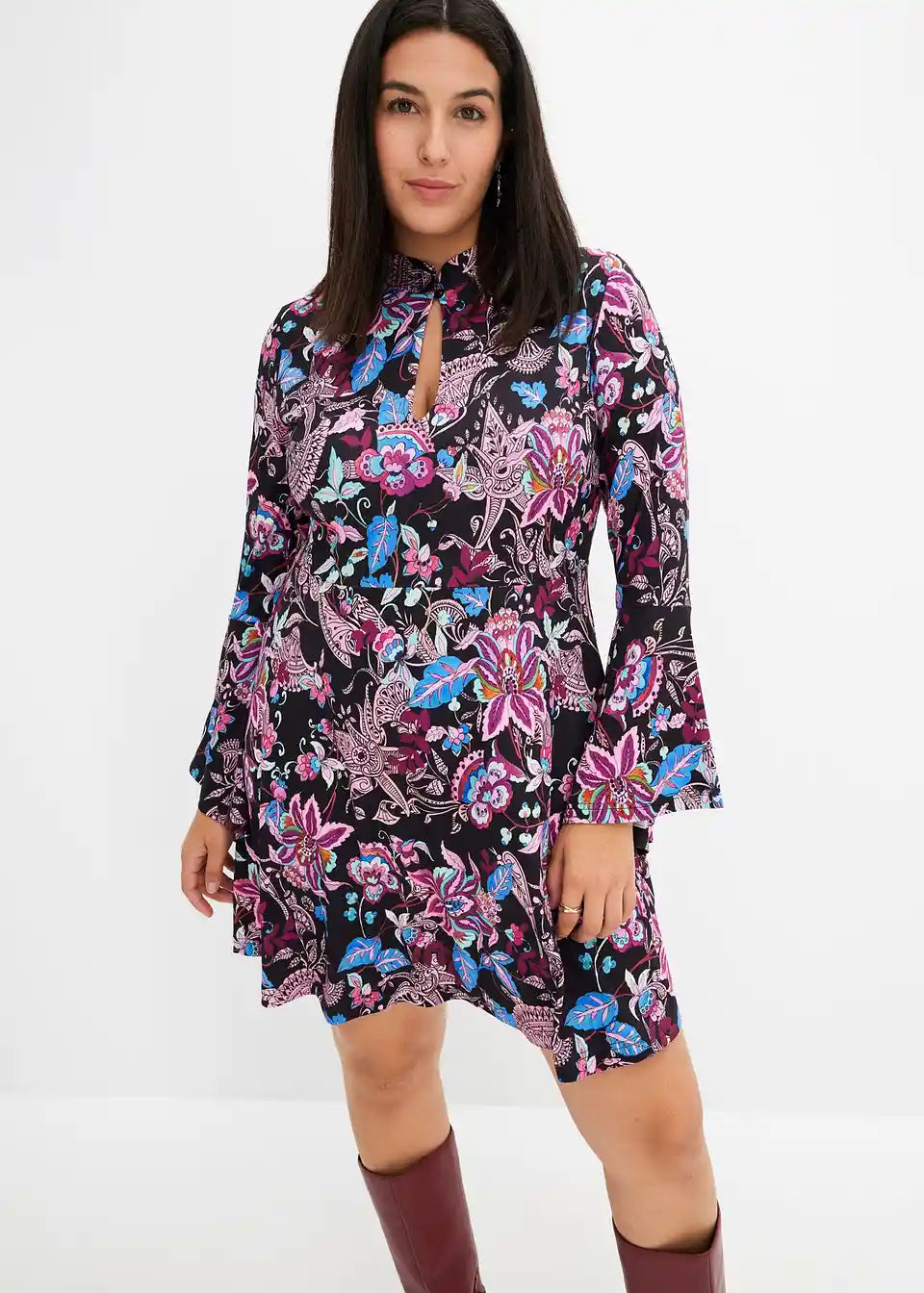 Stilska obleka s cutout izrezom in razširjenimi rokavi