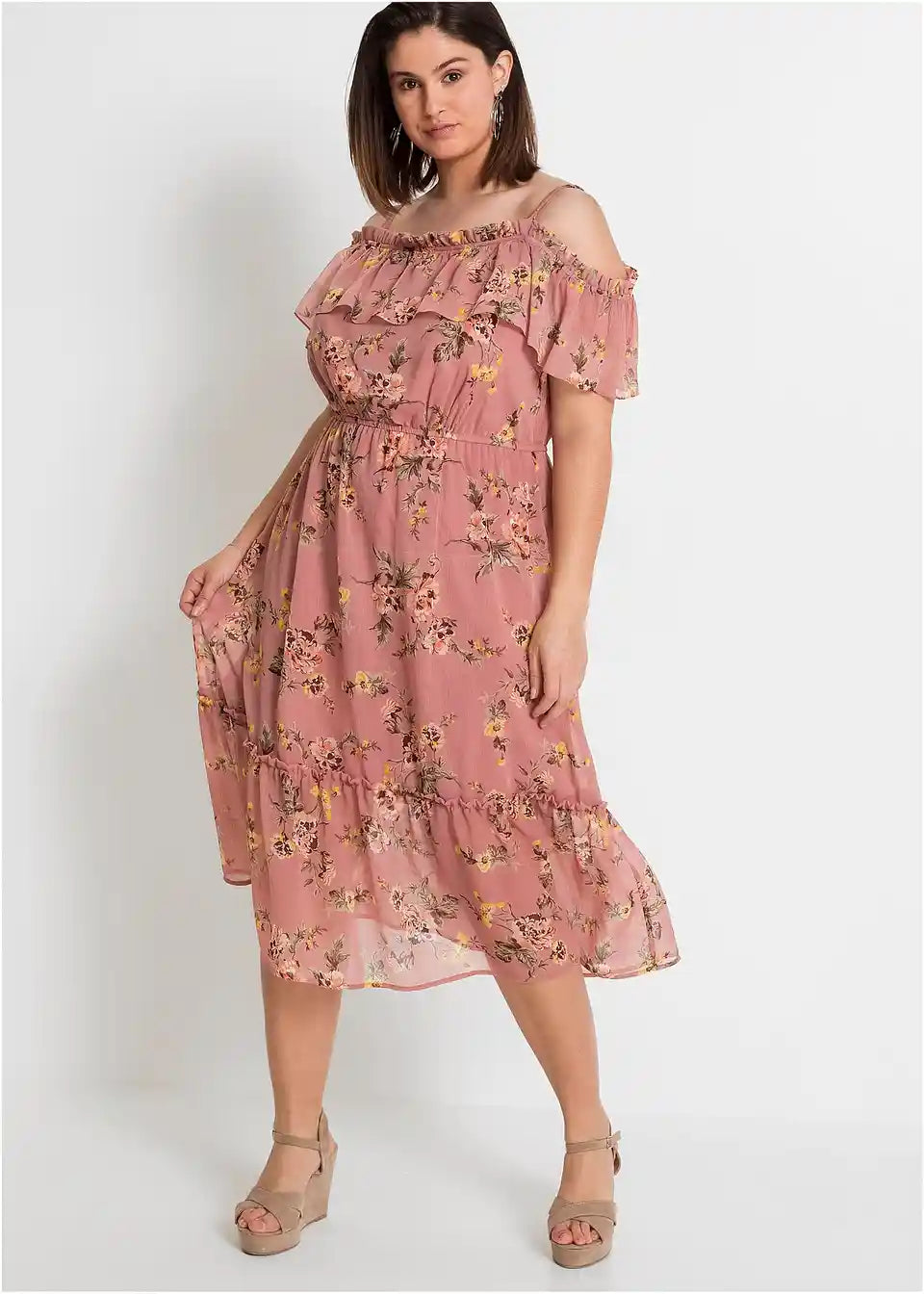 Čudovita obleka z volančki in Off-Shoulder krojem