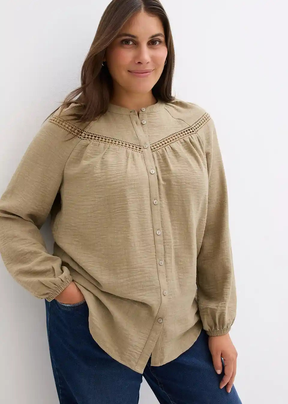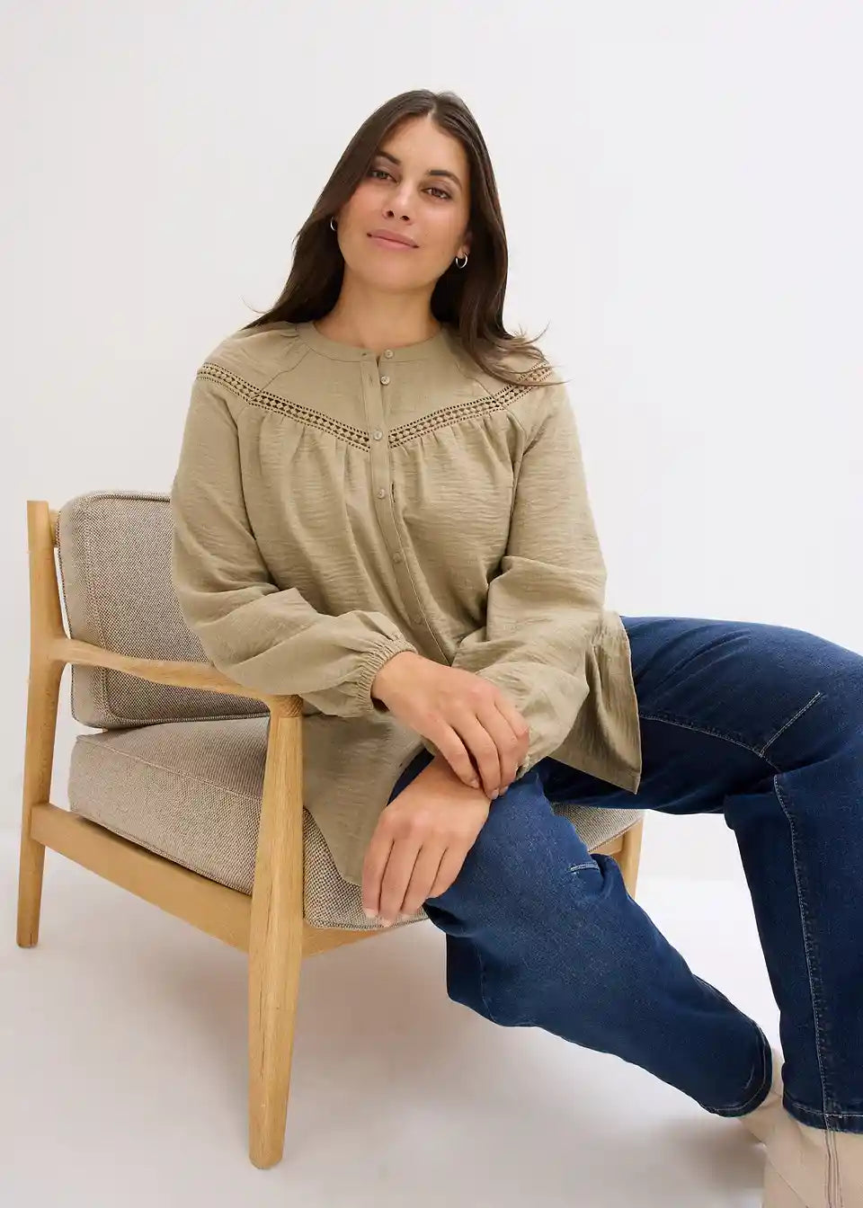 Ohlapna tunika, ki se lepo prilega postavi in prepriča z dekorativno čipko.