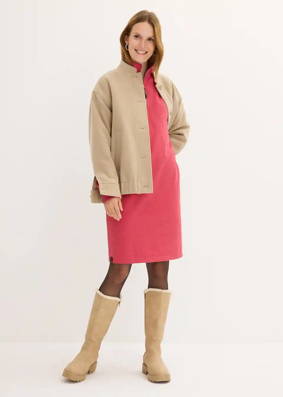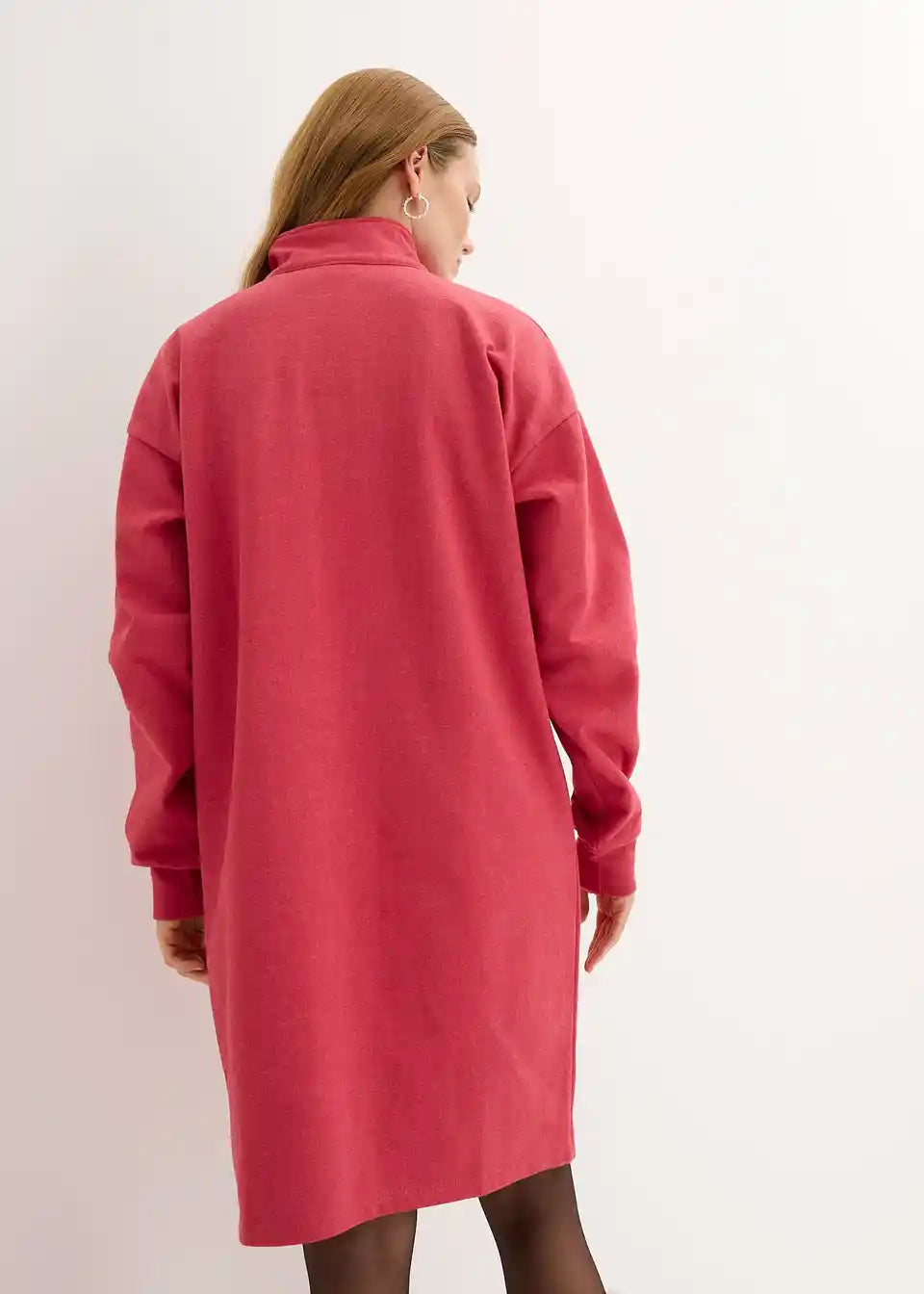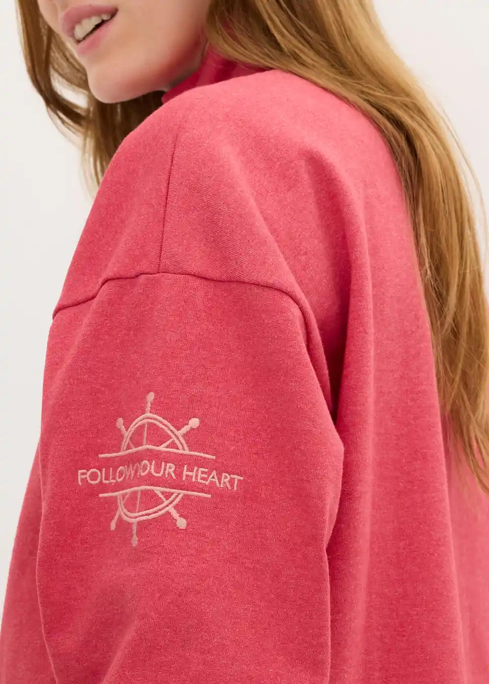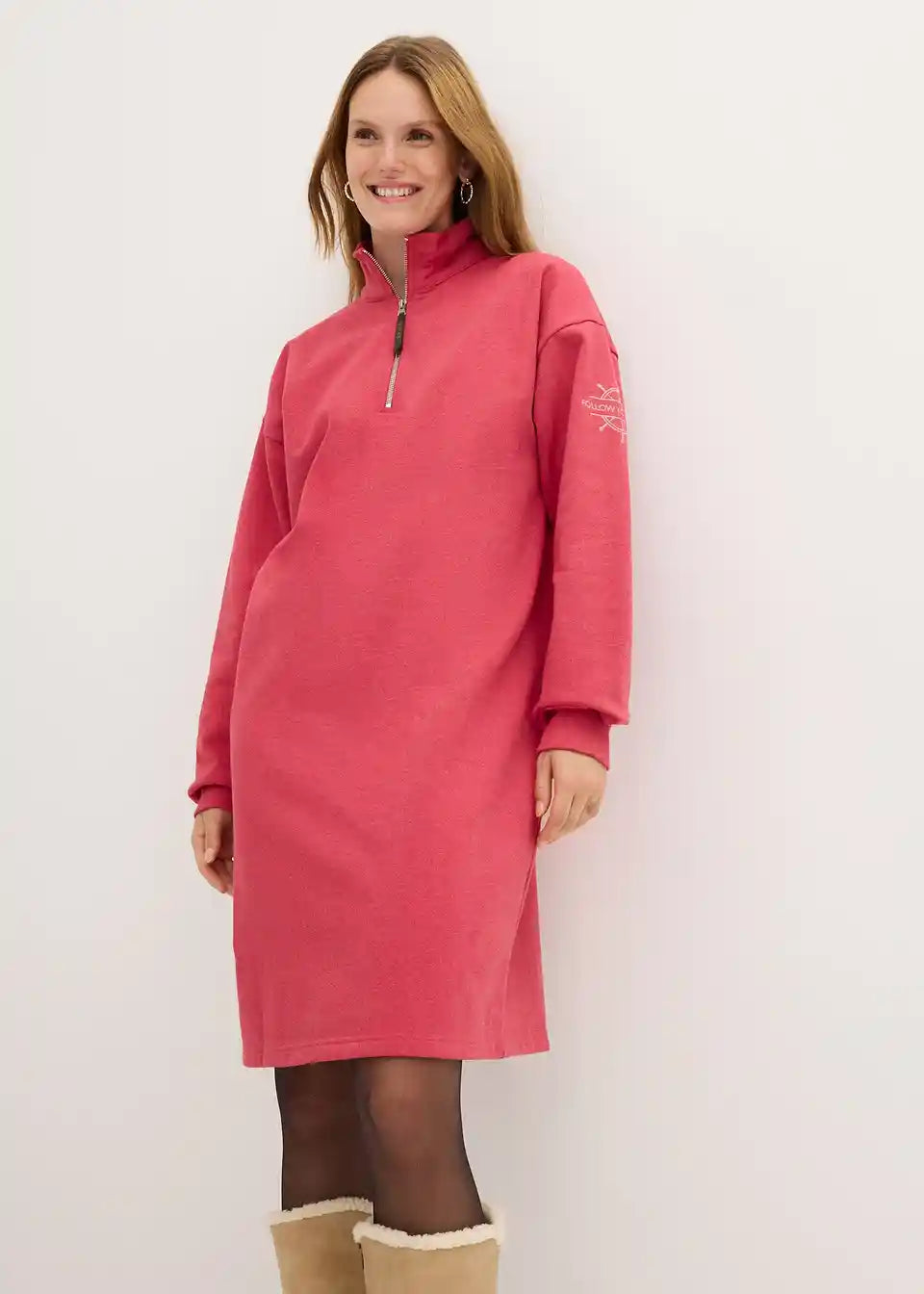 Udobna sweatshirt obleka s Troyer ovratnikom in vezenim detajlom na rokavu