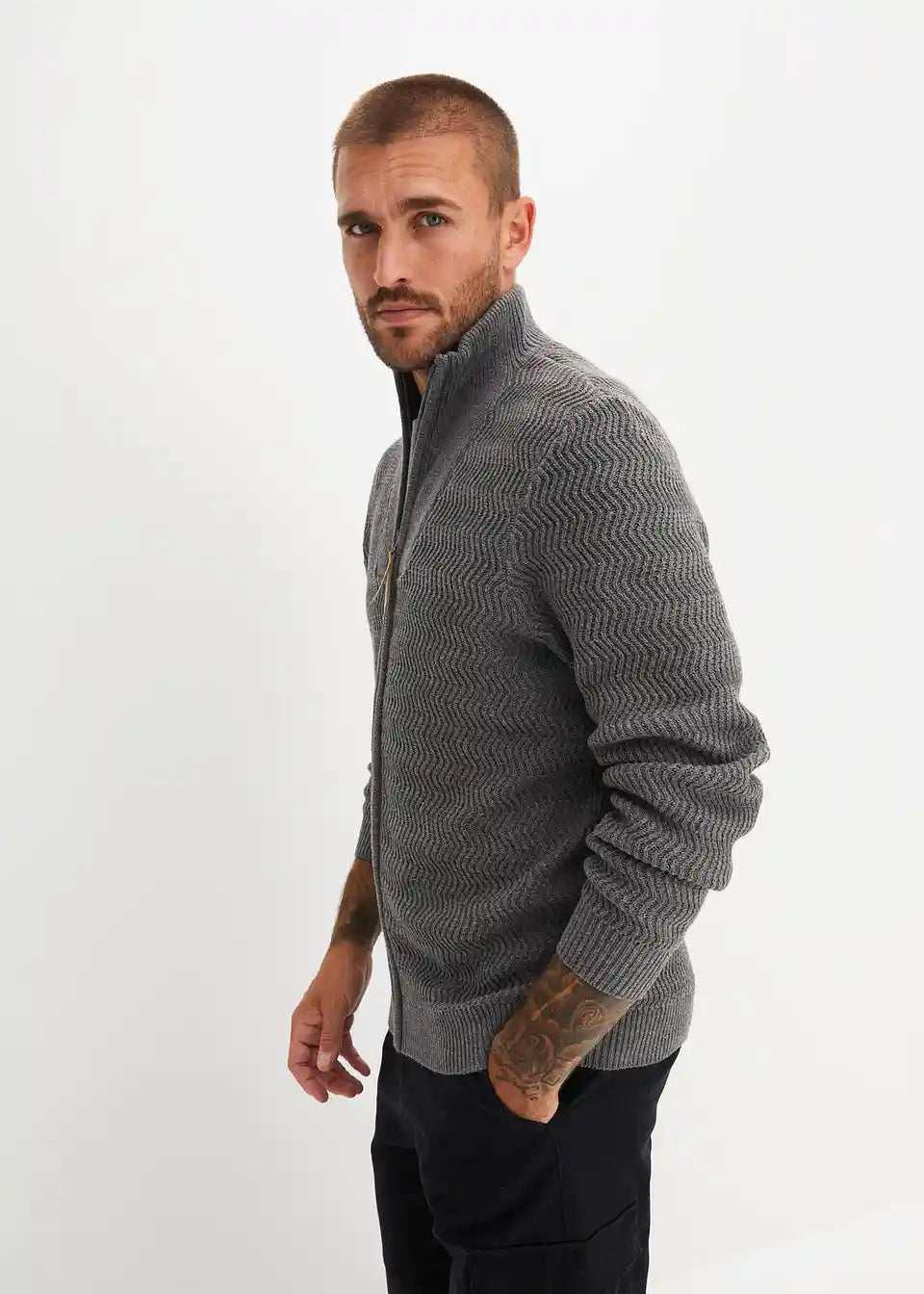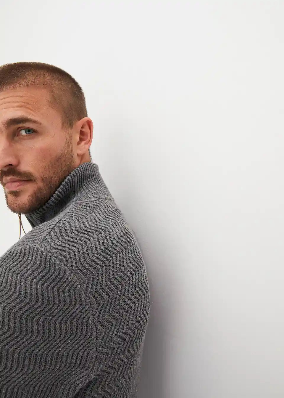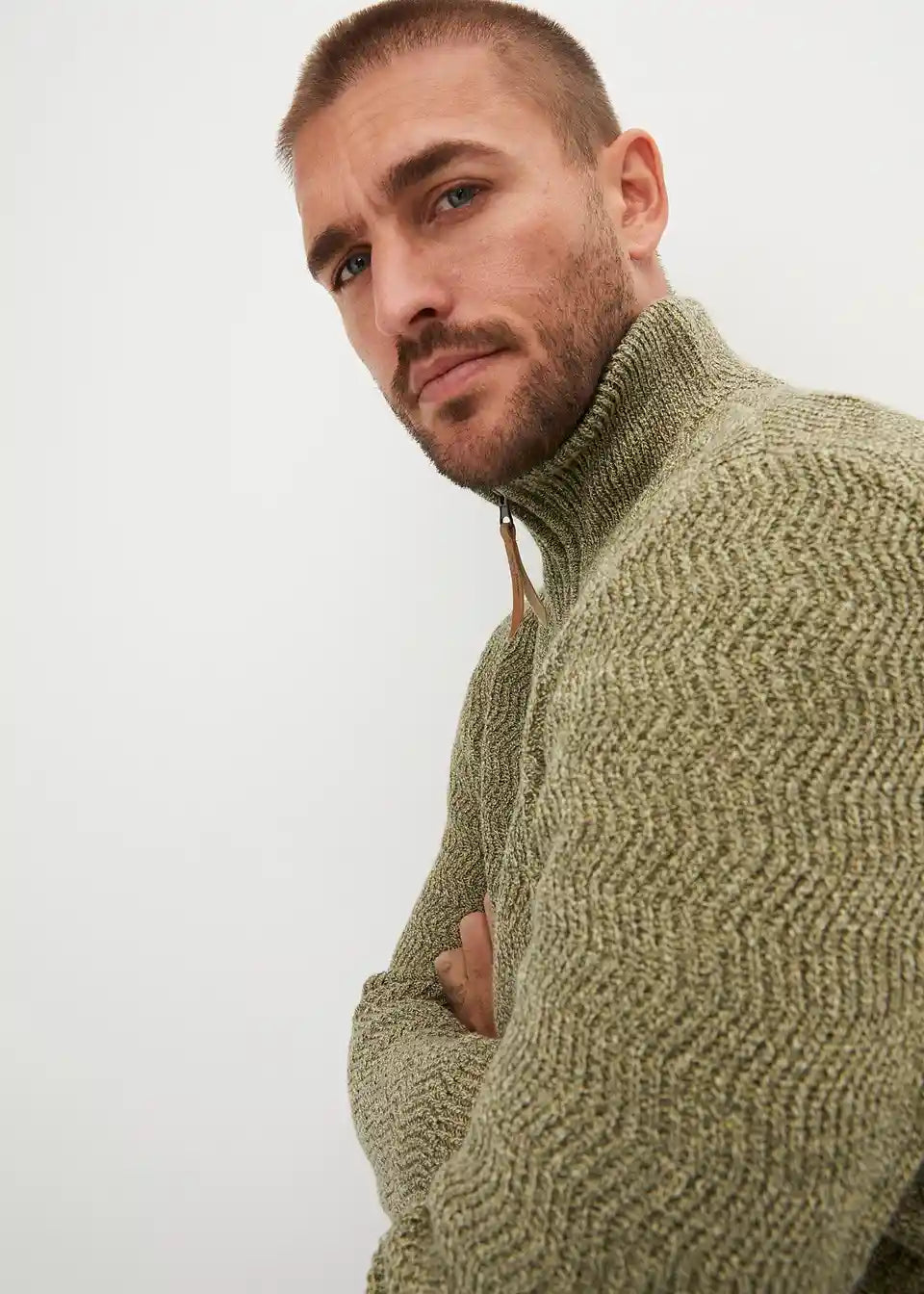 Pletena jopa s pokončnim ovratnikom in recikliranim bombažem