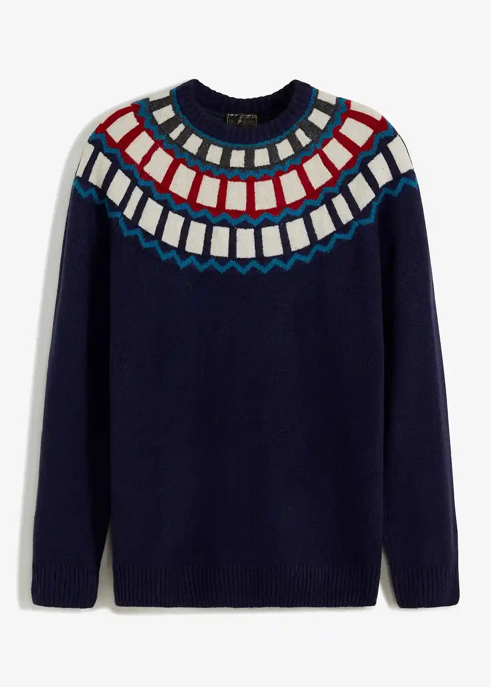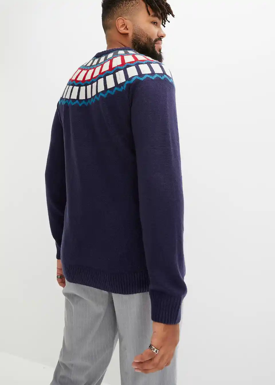 Sodobni pulover s kontrastnimi barvnimi detajli