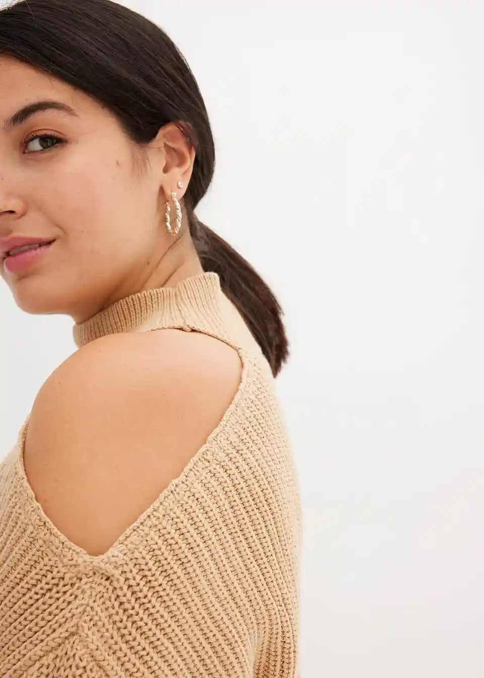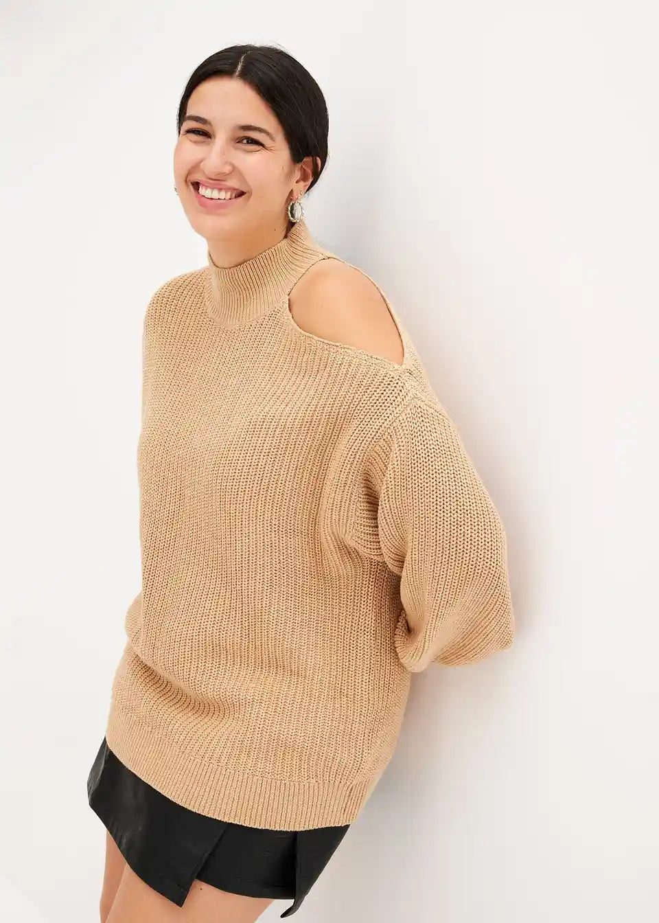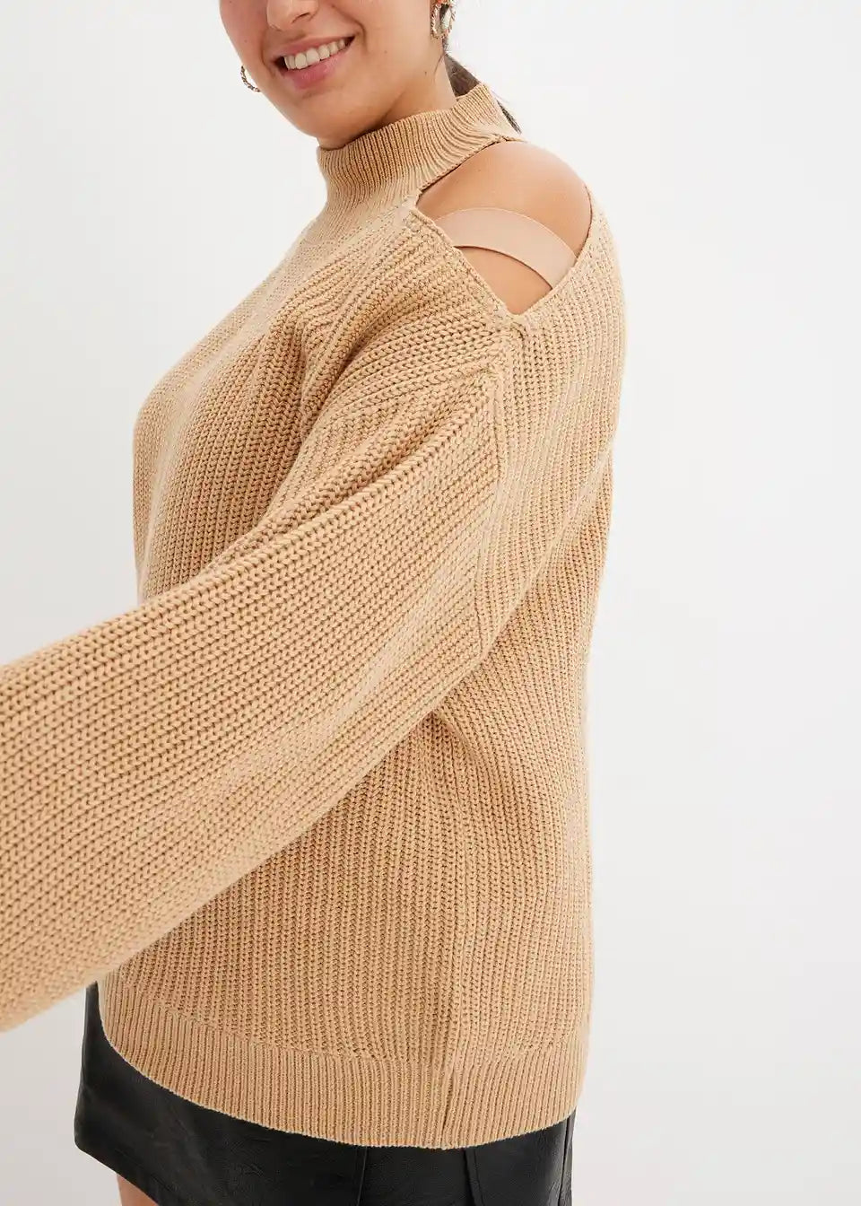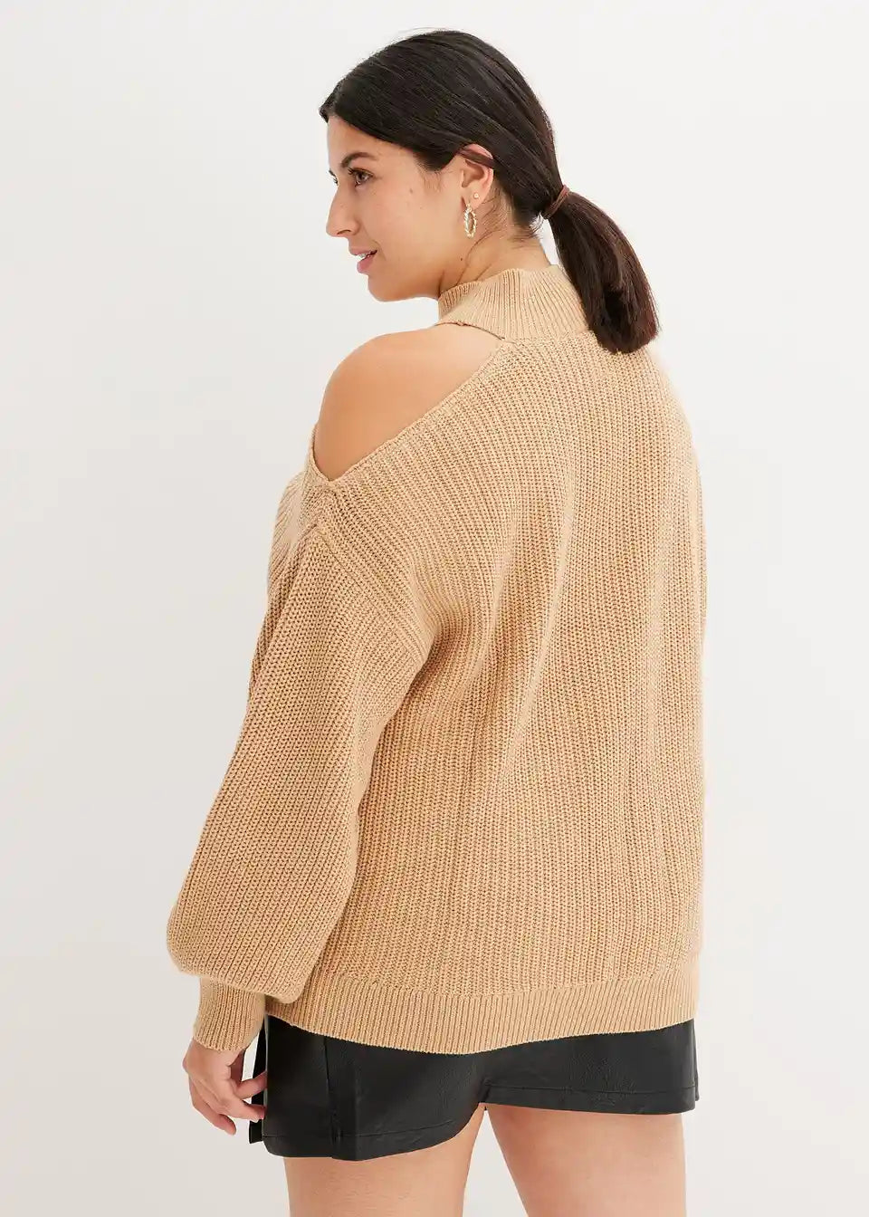 Moden pulover z izrezom in stoječim ovratnikom iz bombaža
