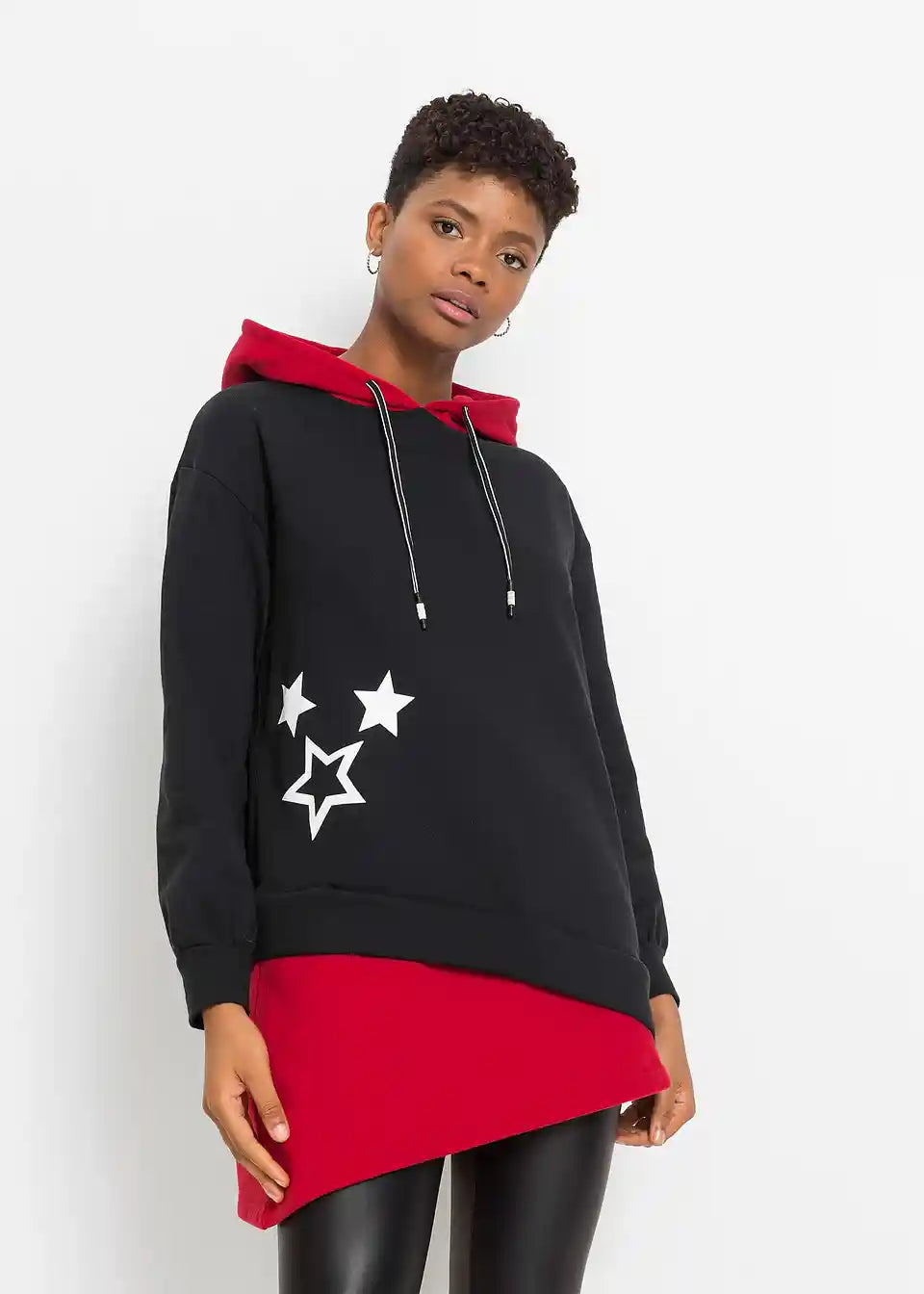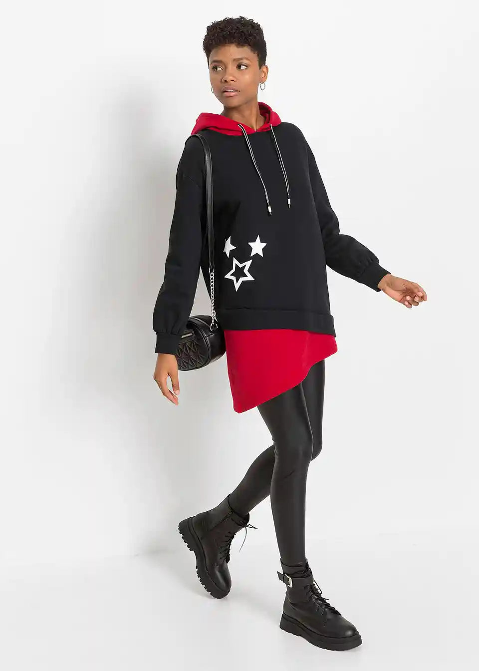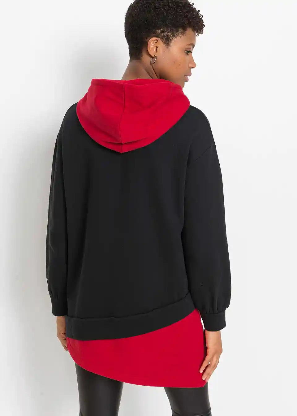 Jopa iz trikoja s kapuco in asimetričnim spodnjim robom