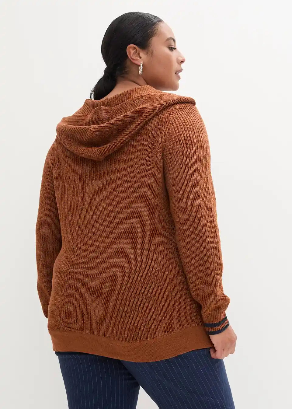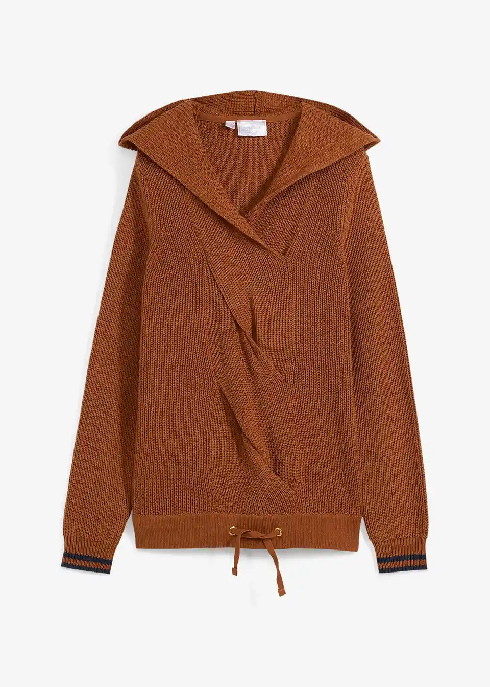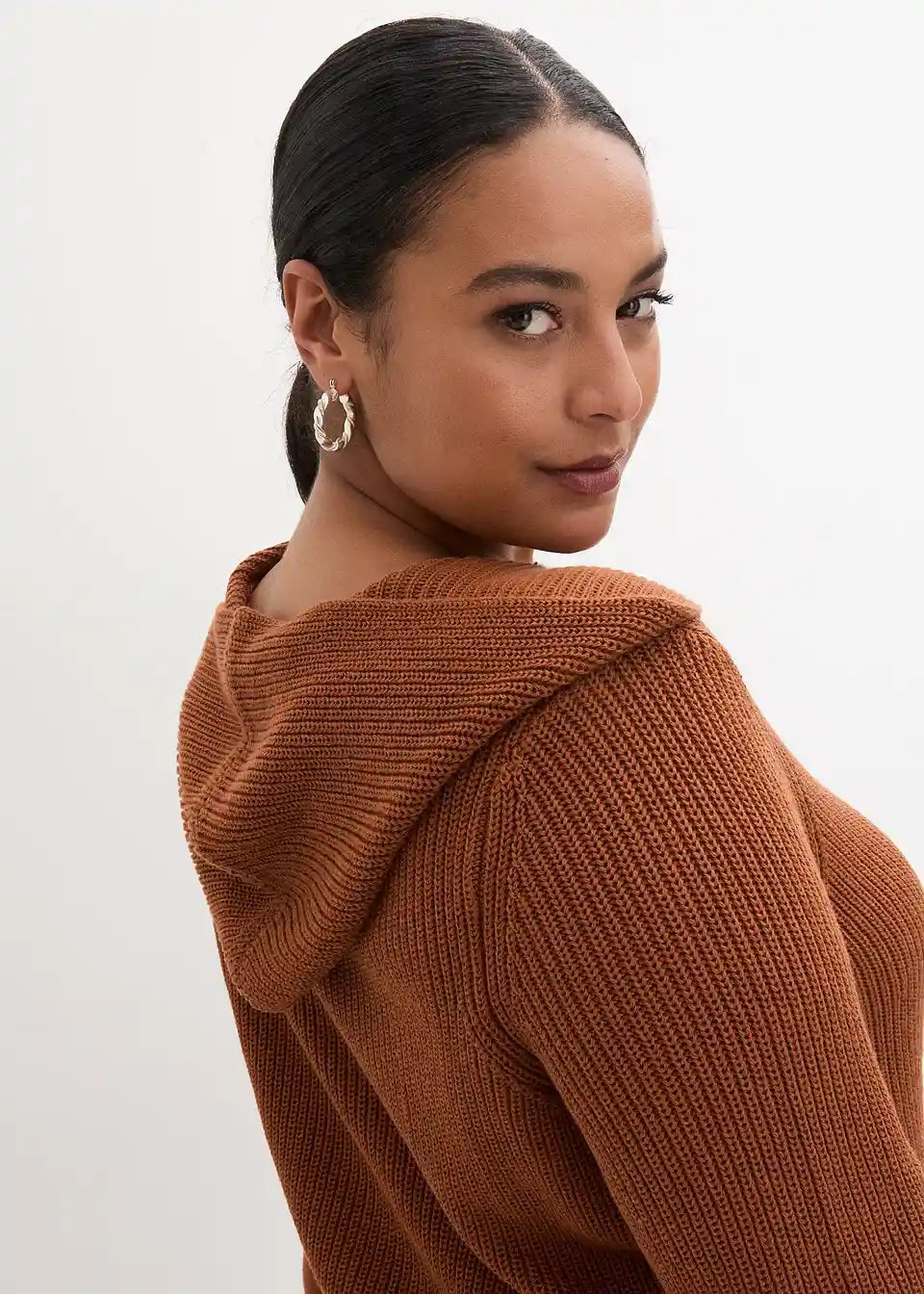 modni Pulover s kapuco in izpopolnjenim vzorcem pletenic