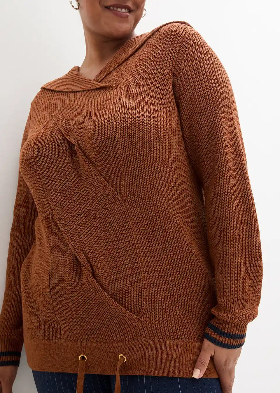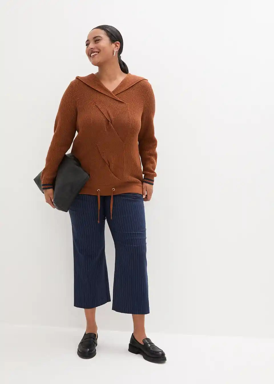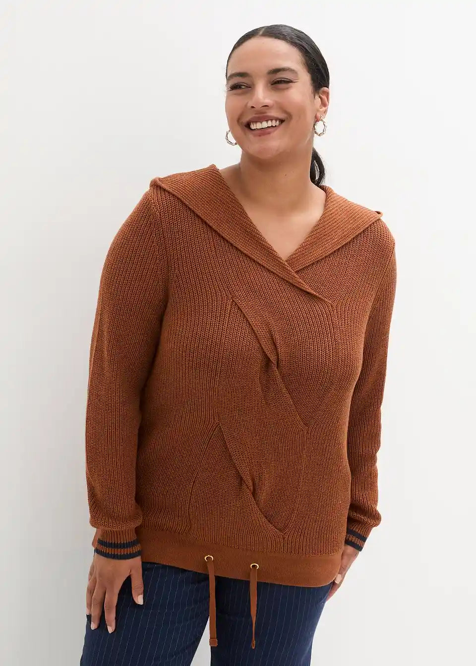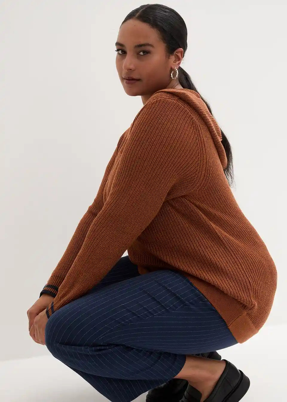 modni Pulover s kapuco in izpopolnjenim vzorcem pletenic