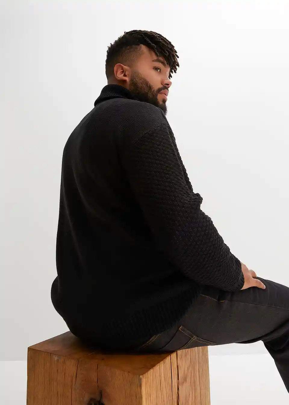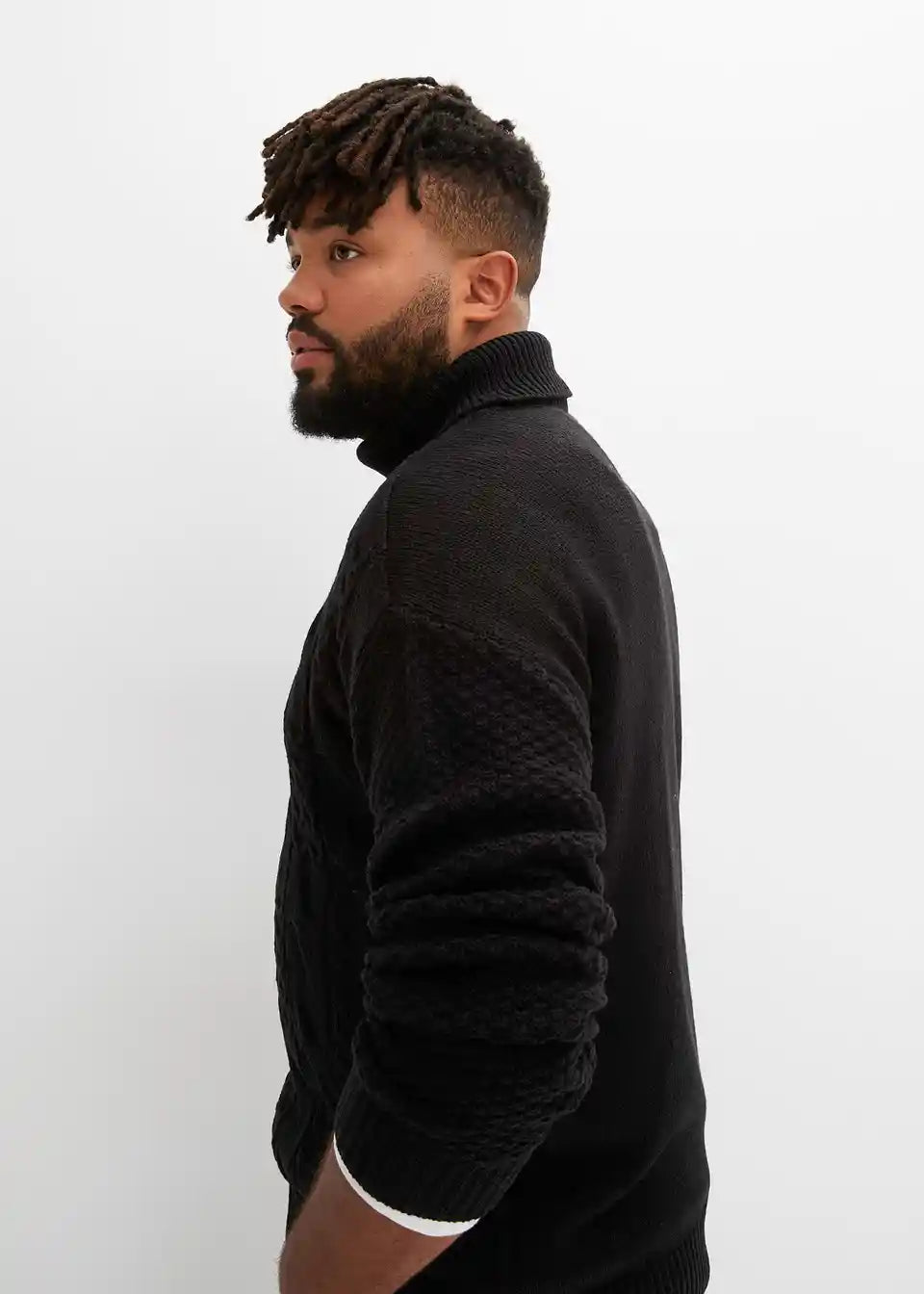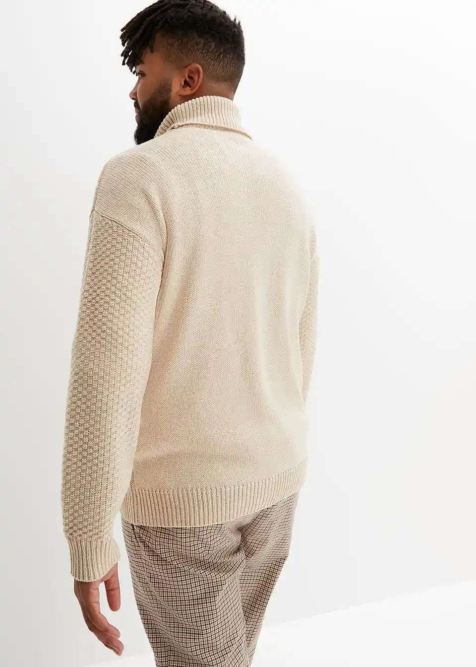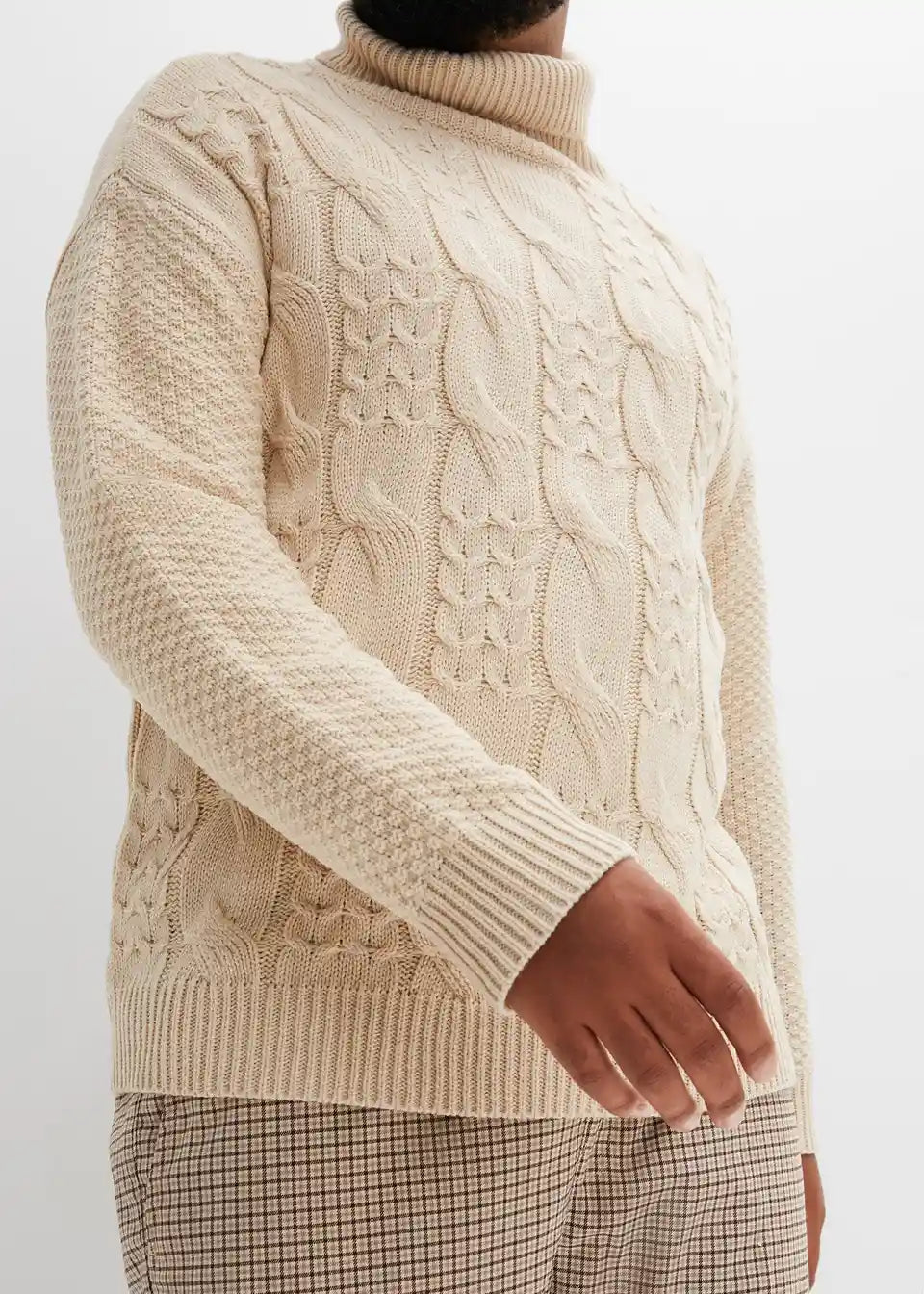 trenden pulover z rolo ovratnikom in pletenim vzorcem