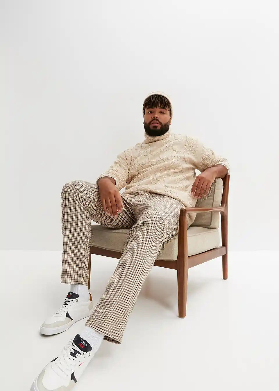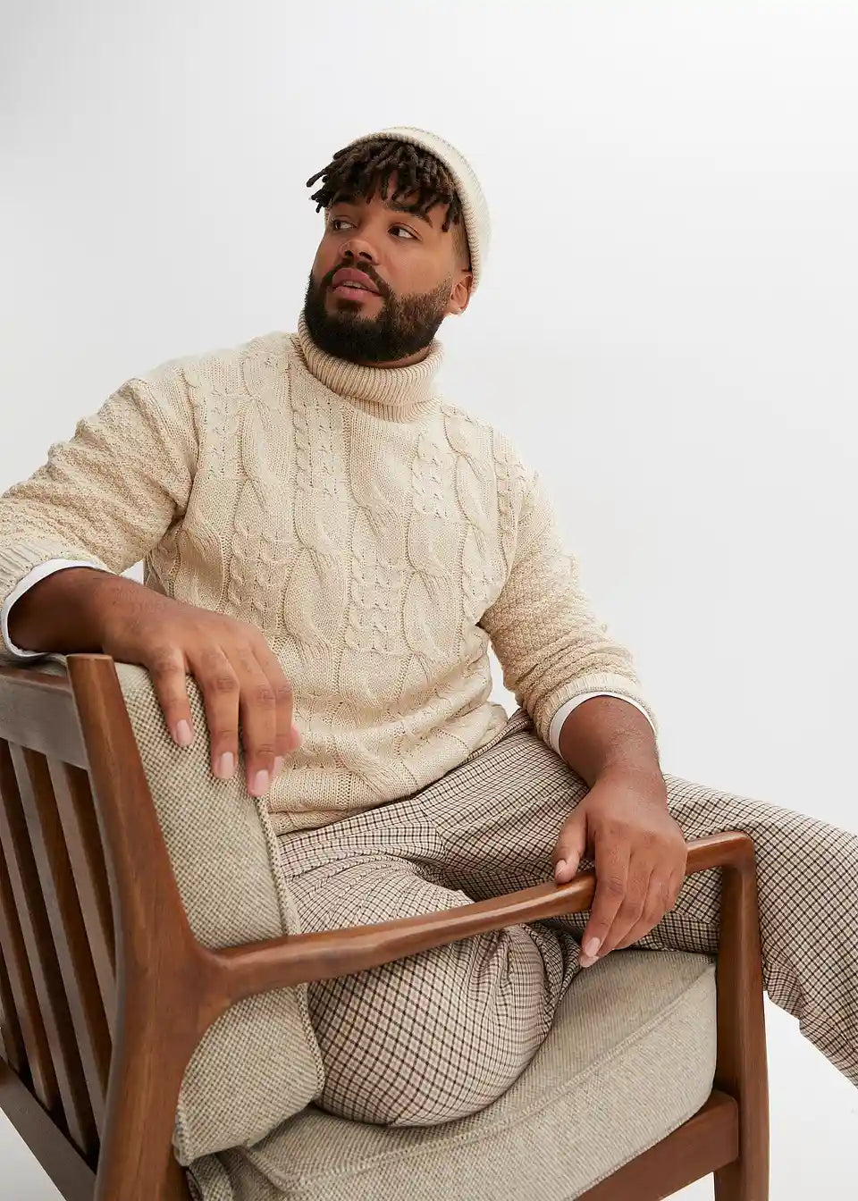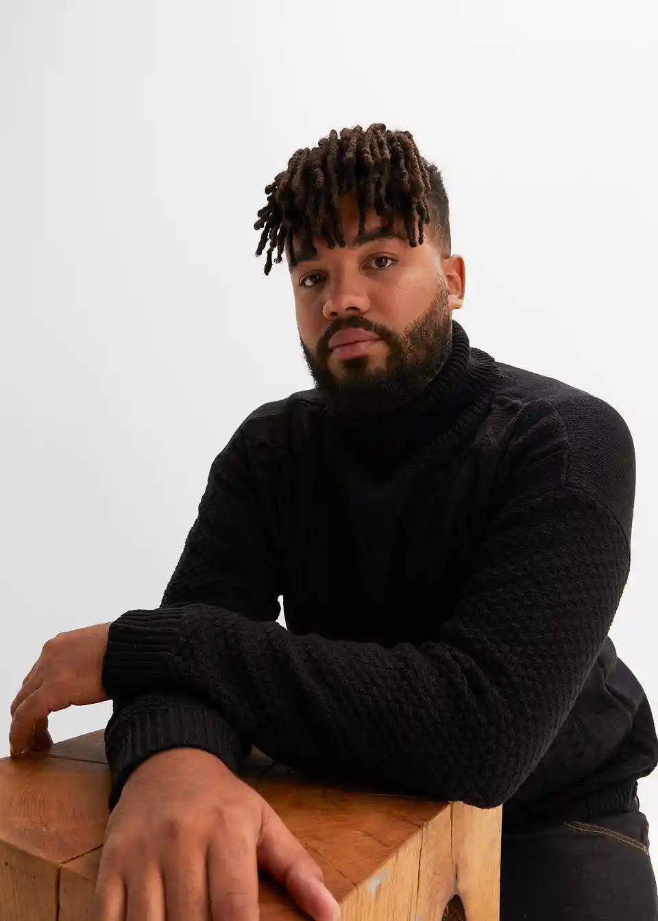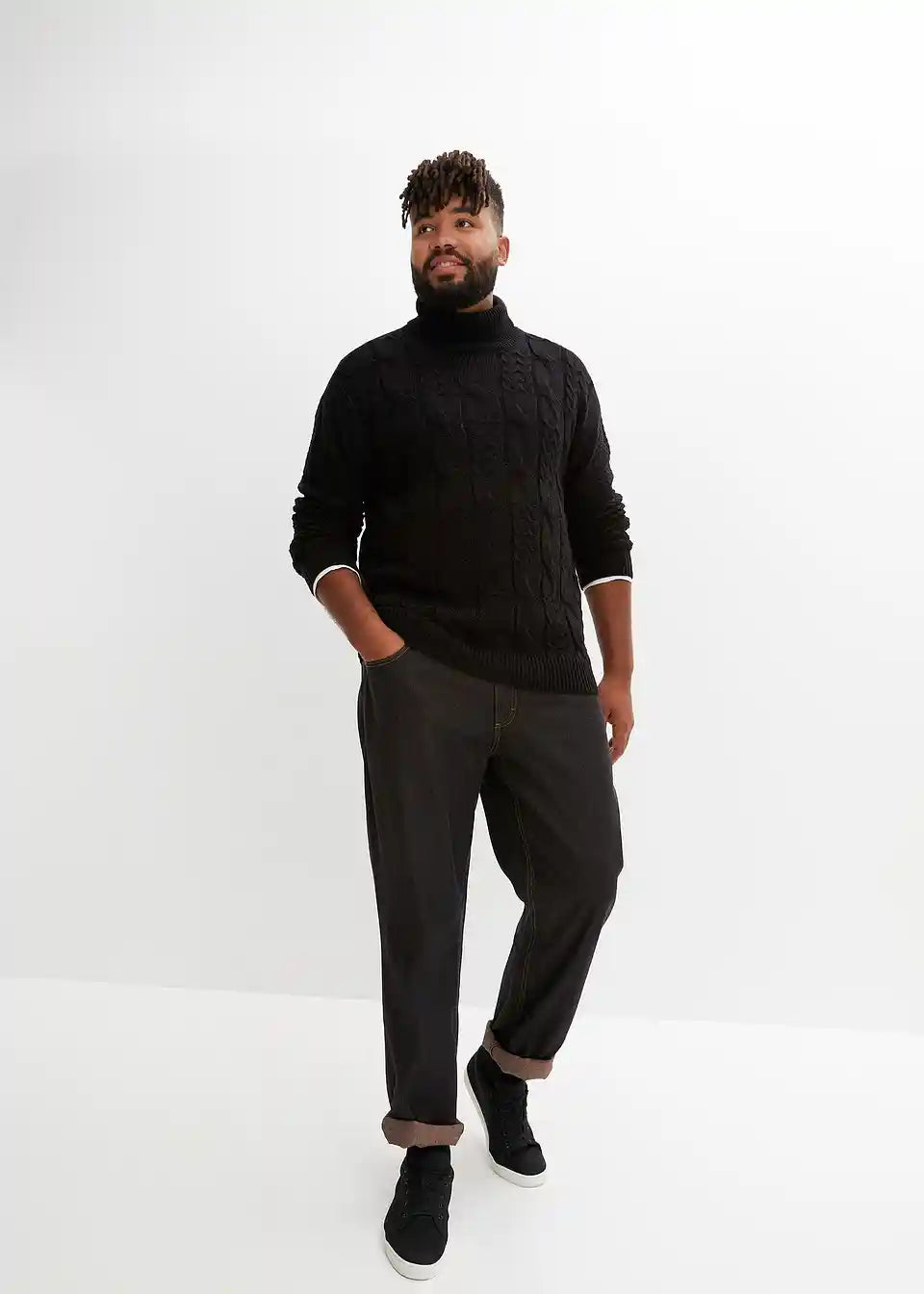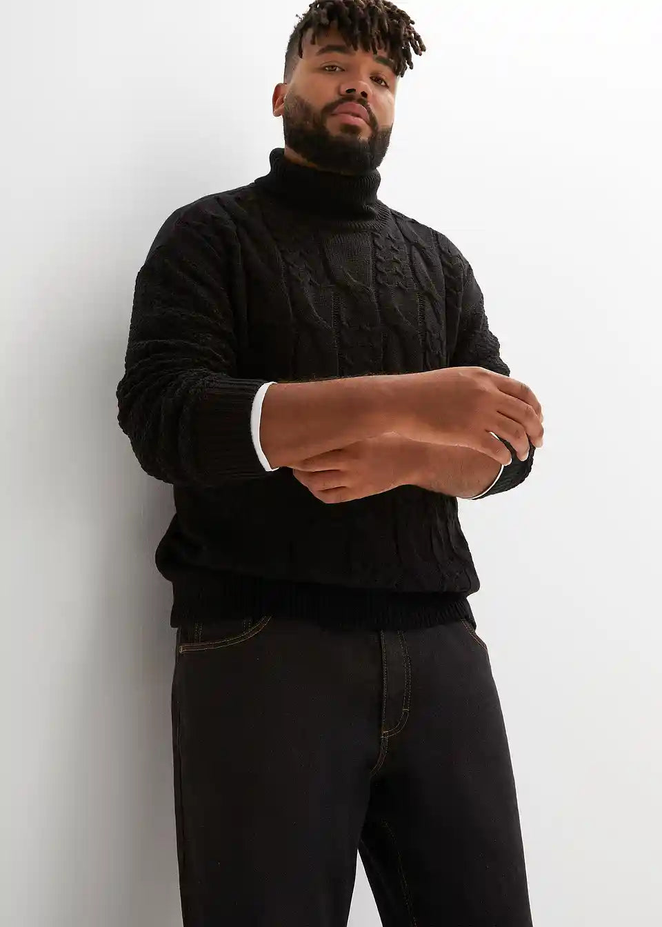 trenden pulover z rolo ovratnikom in pletenim vzorcem