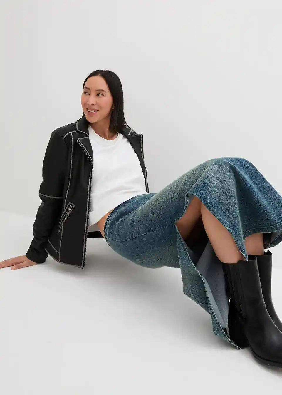 Stretch krilo iz jeansa v dolgem kroju