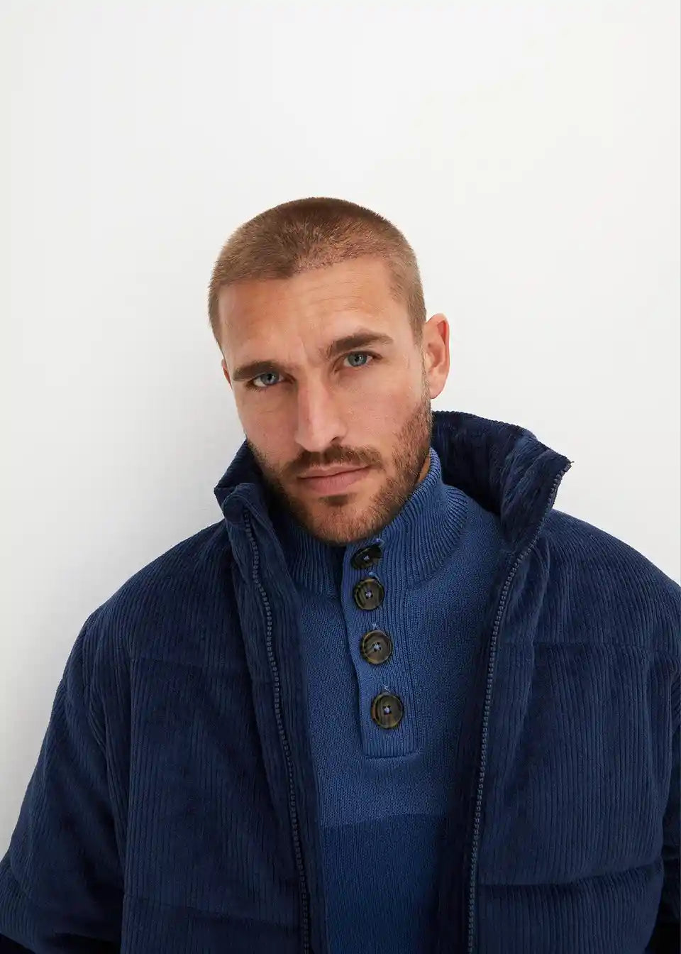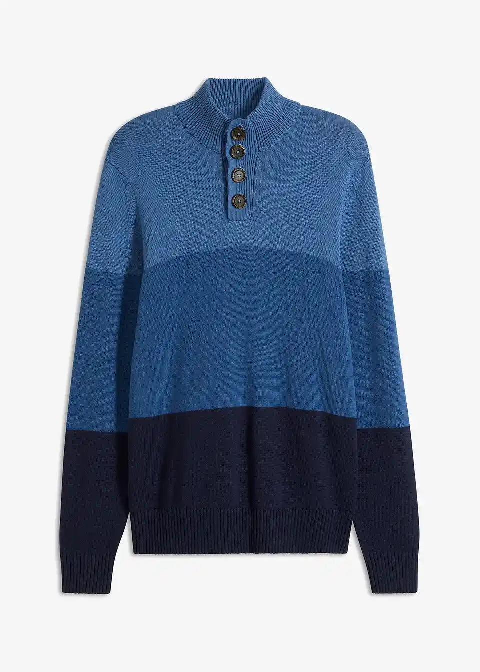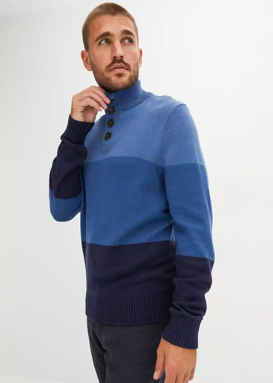 moderen pulover s pokončnim ovratnikom in zapenjanjem na gumbe
