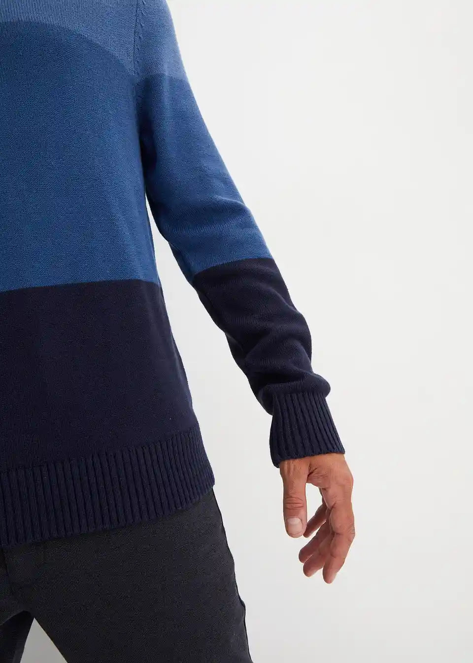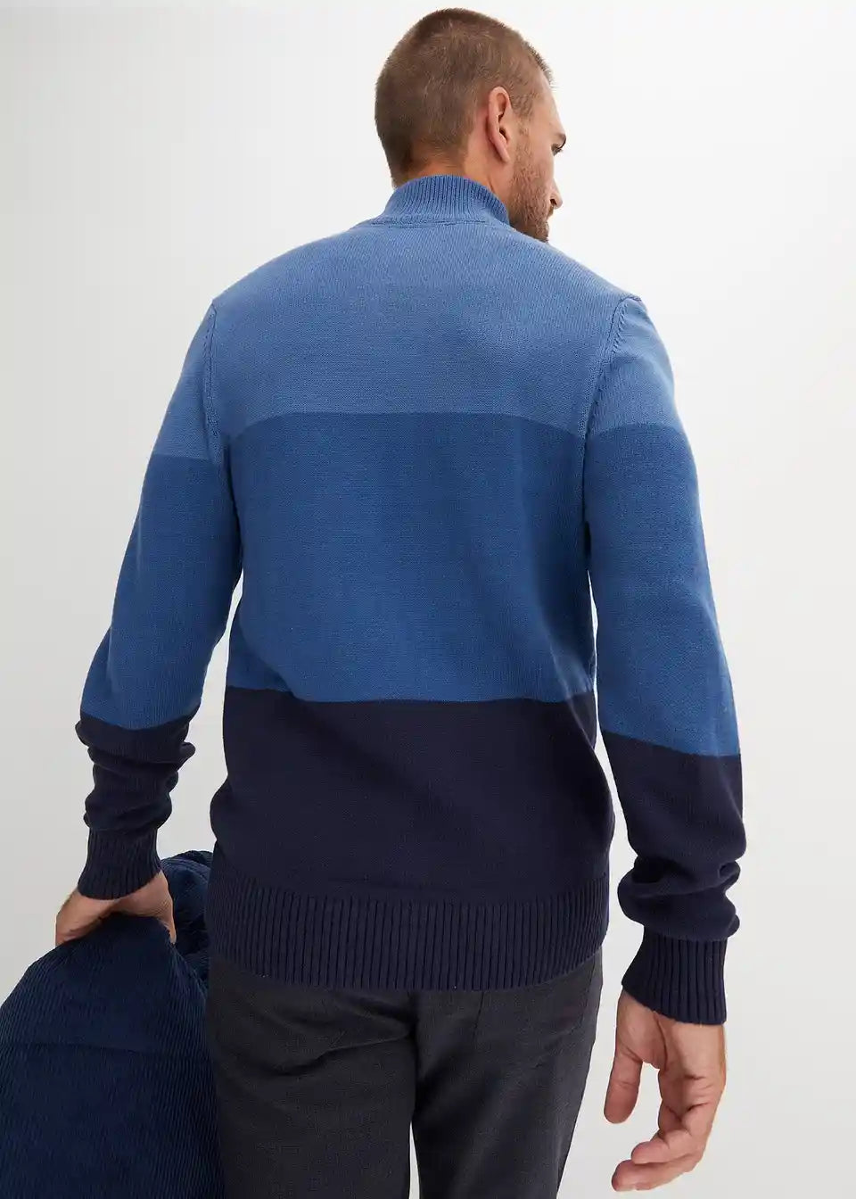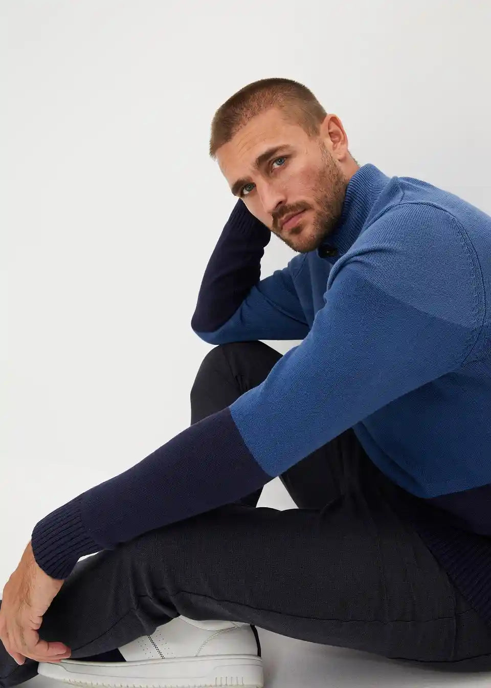 Pulover s trojanskim ovratnikom v kontrastnih barvah in bombažem