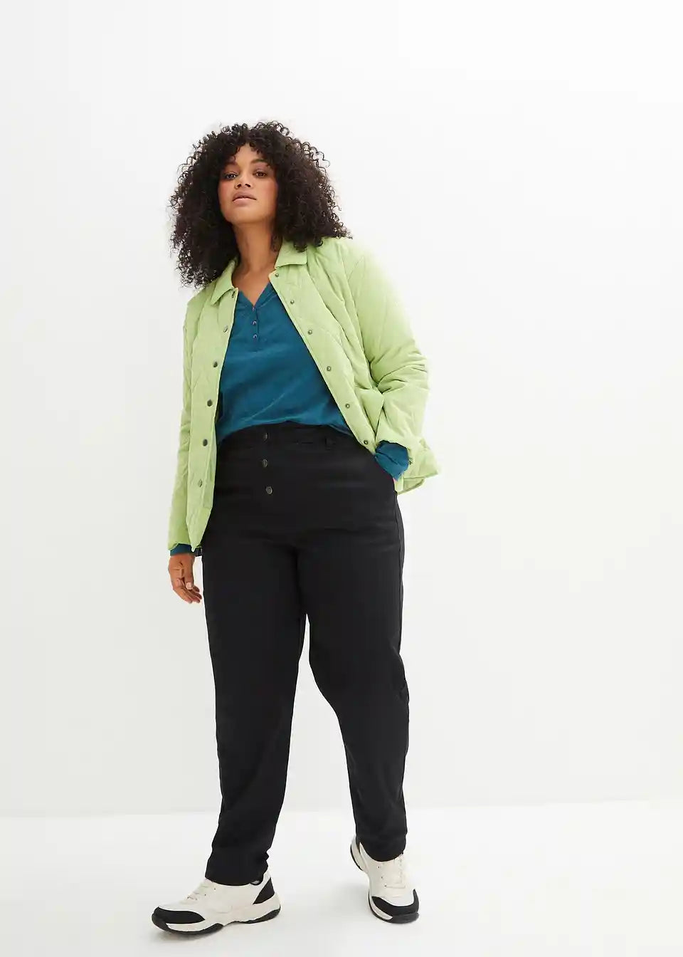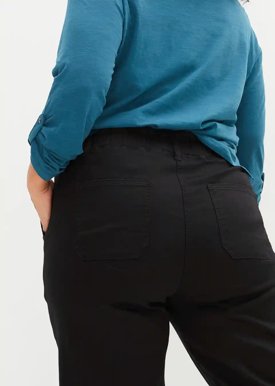 Posebnosti kroja:z oblikovalnimi šivi ter s stretchem za dodatno udobje, z efektom vitkosti zaradi vnaprej pomaknjenih šivov, za zakriti trebušček, zadnjico in boke ter udobje na stegnih