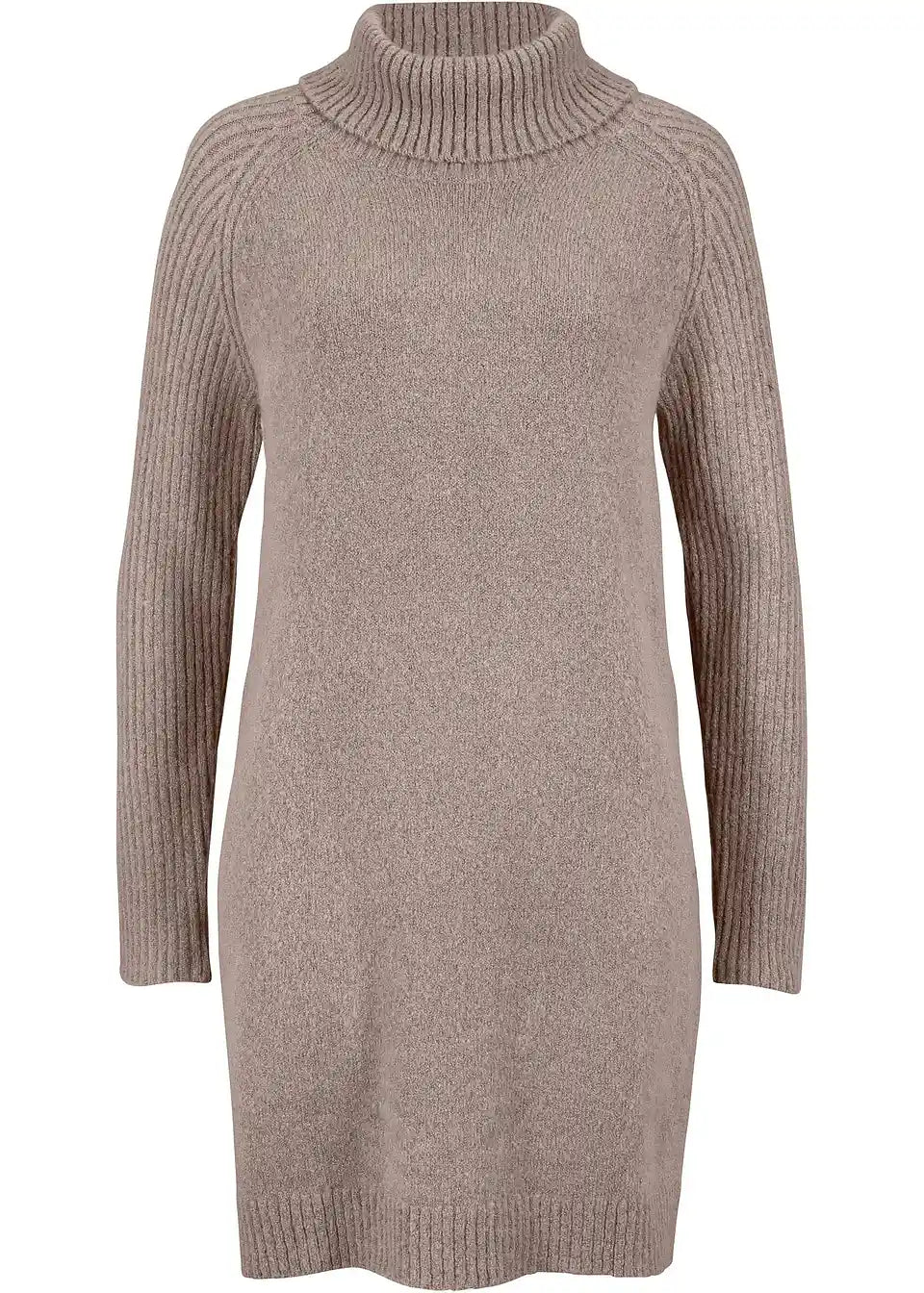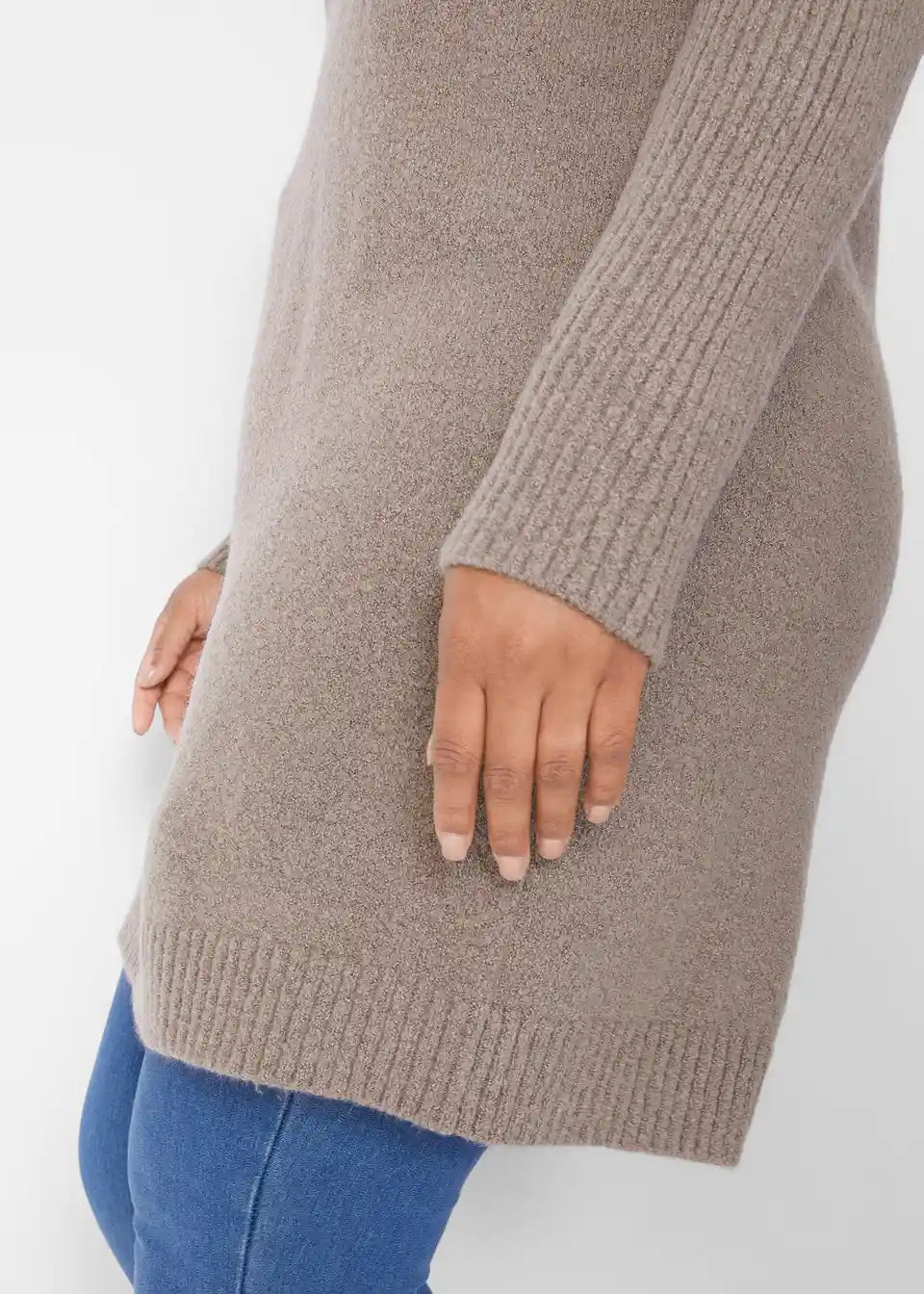 Dolg pulover s puli ovratnikom z rebrastimi rokavi