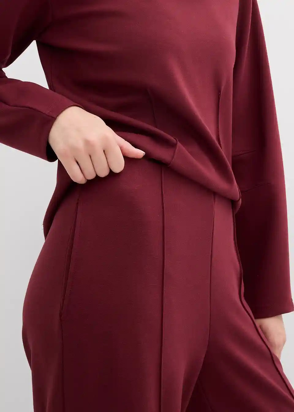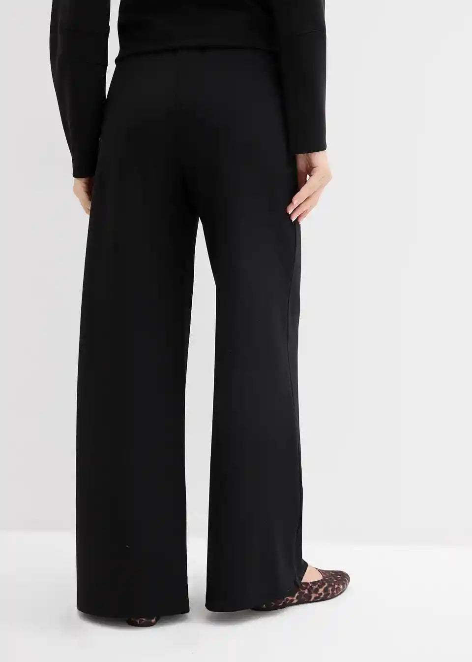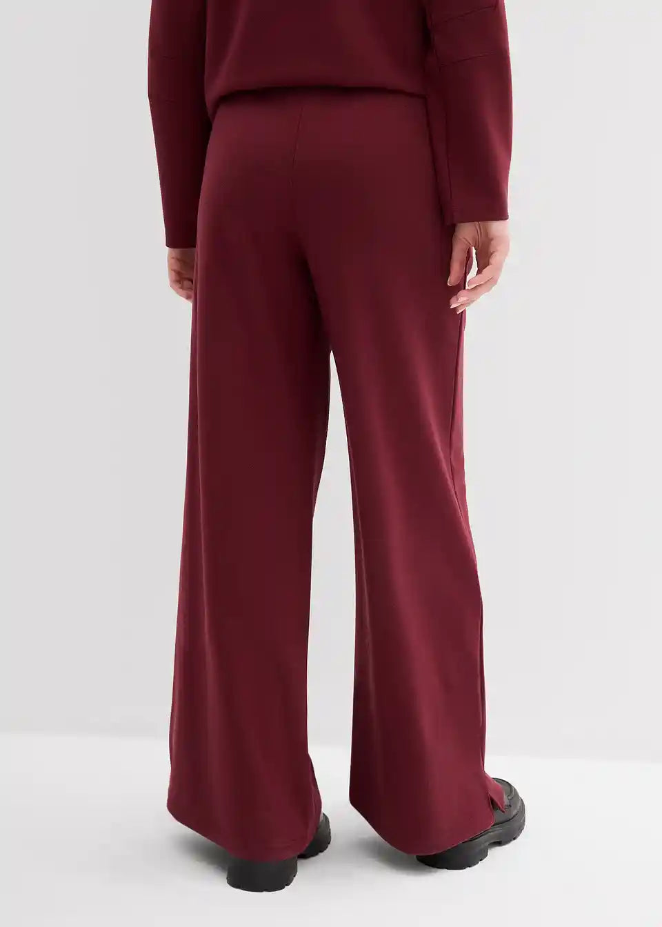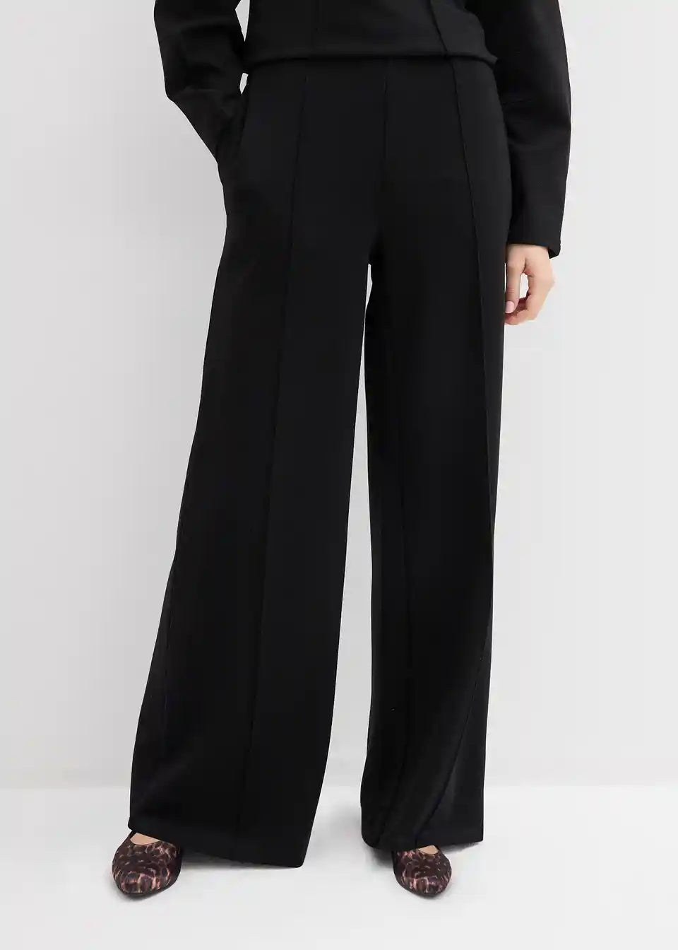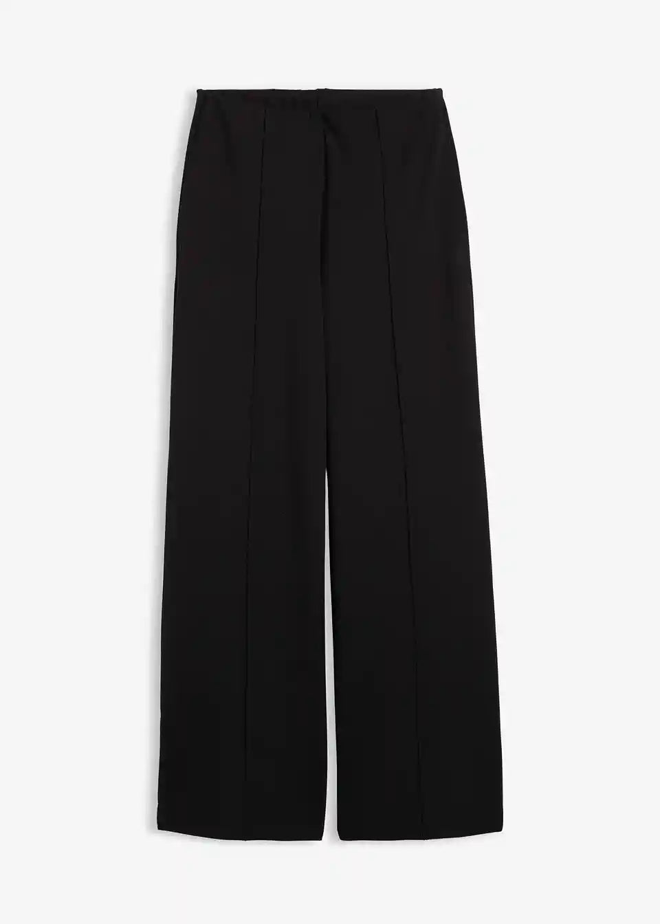 Hlače s širokimi hlačnicami iz Punto Di Roma trikoja z udobnim pasom in prešitimi črtami spredaj