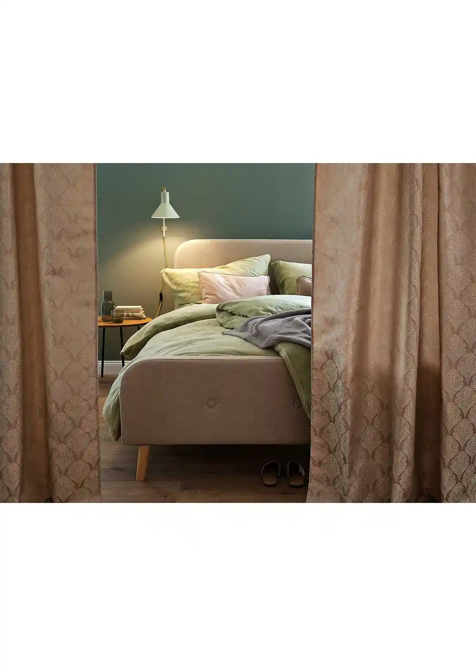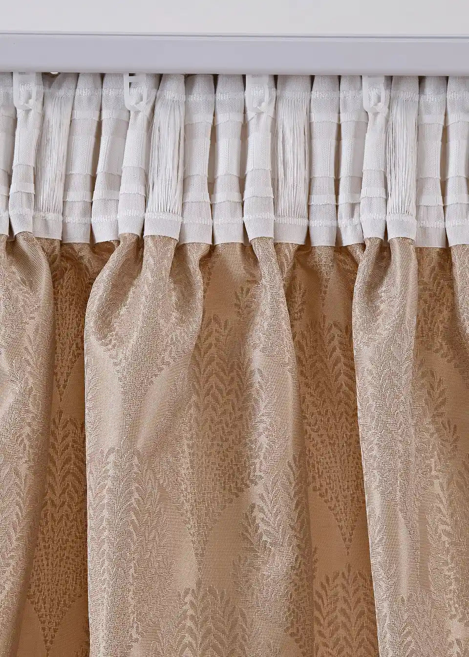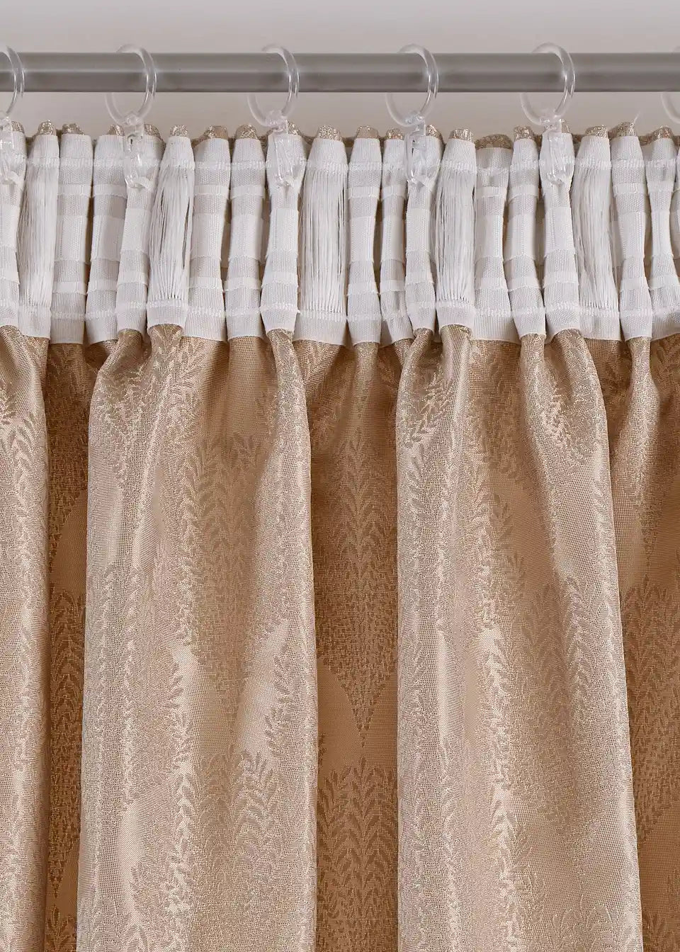 Zelo eleganten in prefinjen zastor iz visokokakovostne Jacquard tkanine. Zastor je v toplem odtenku peska in ima rahlo sijaj.