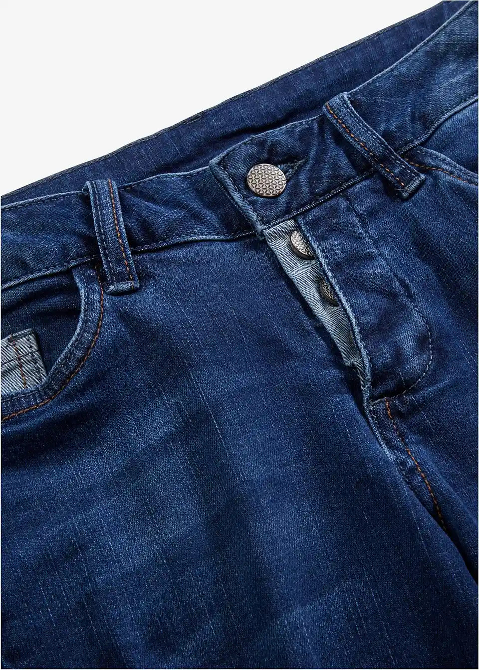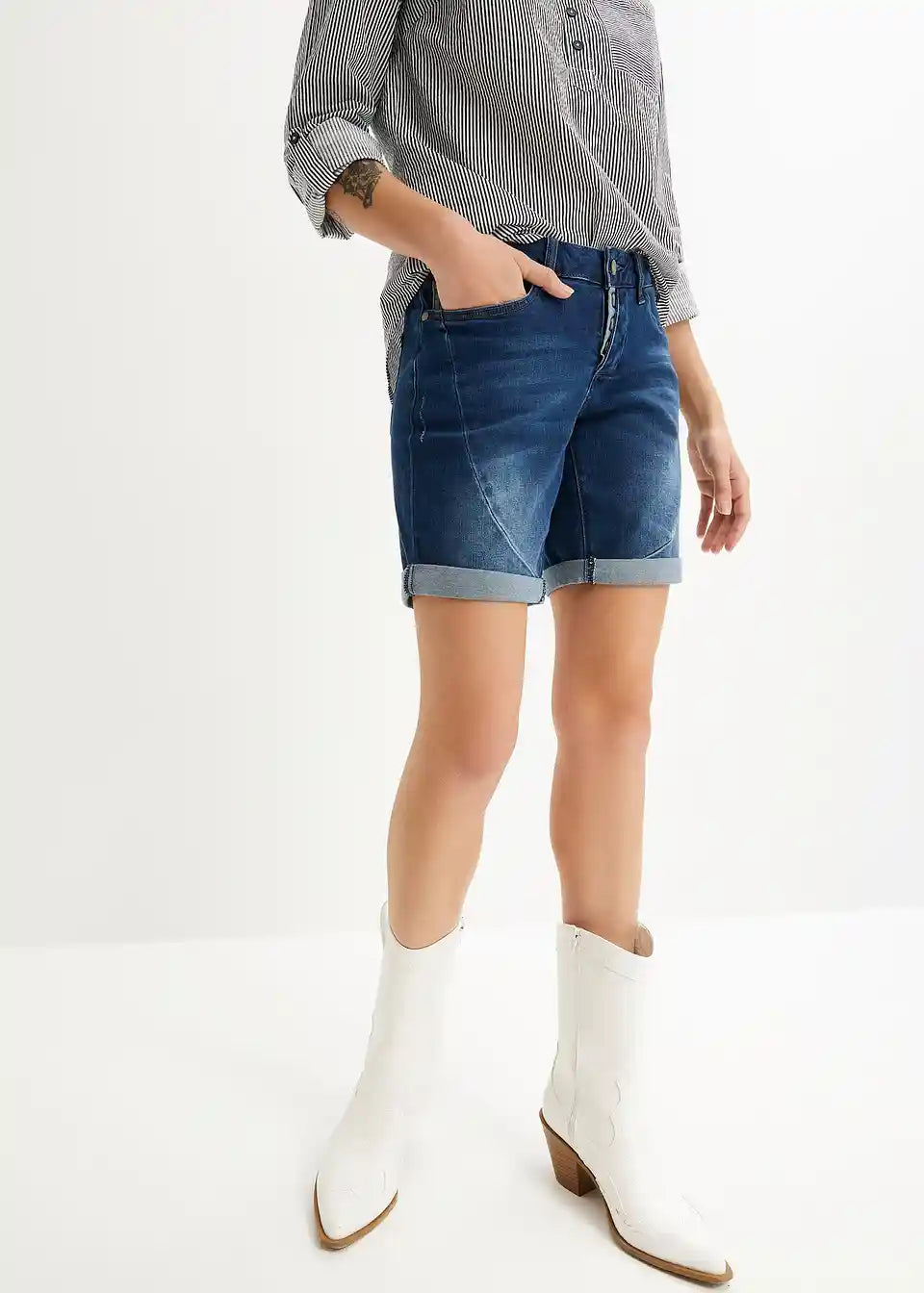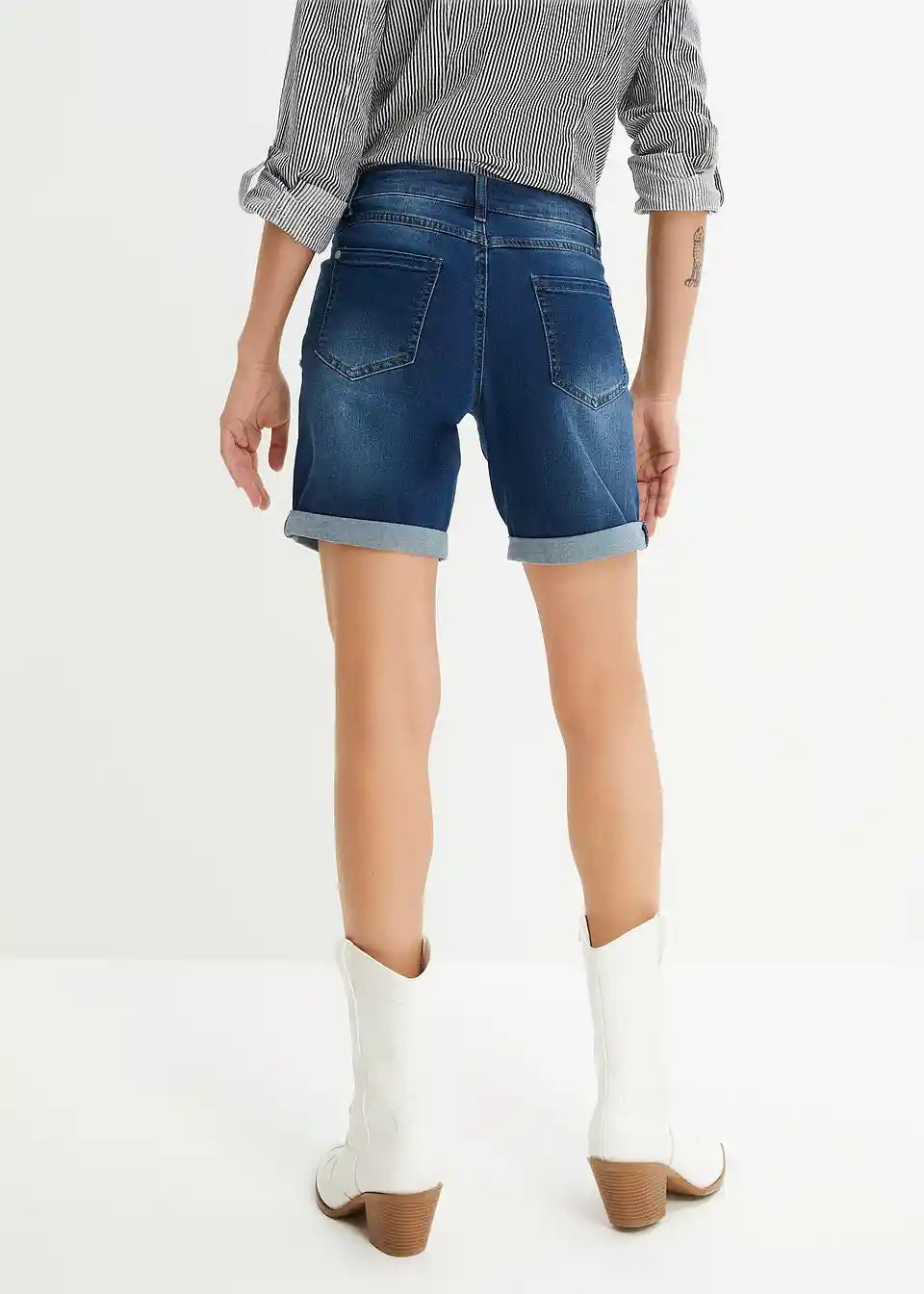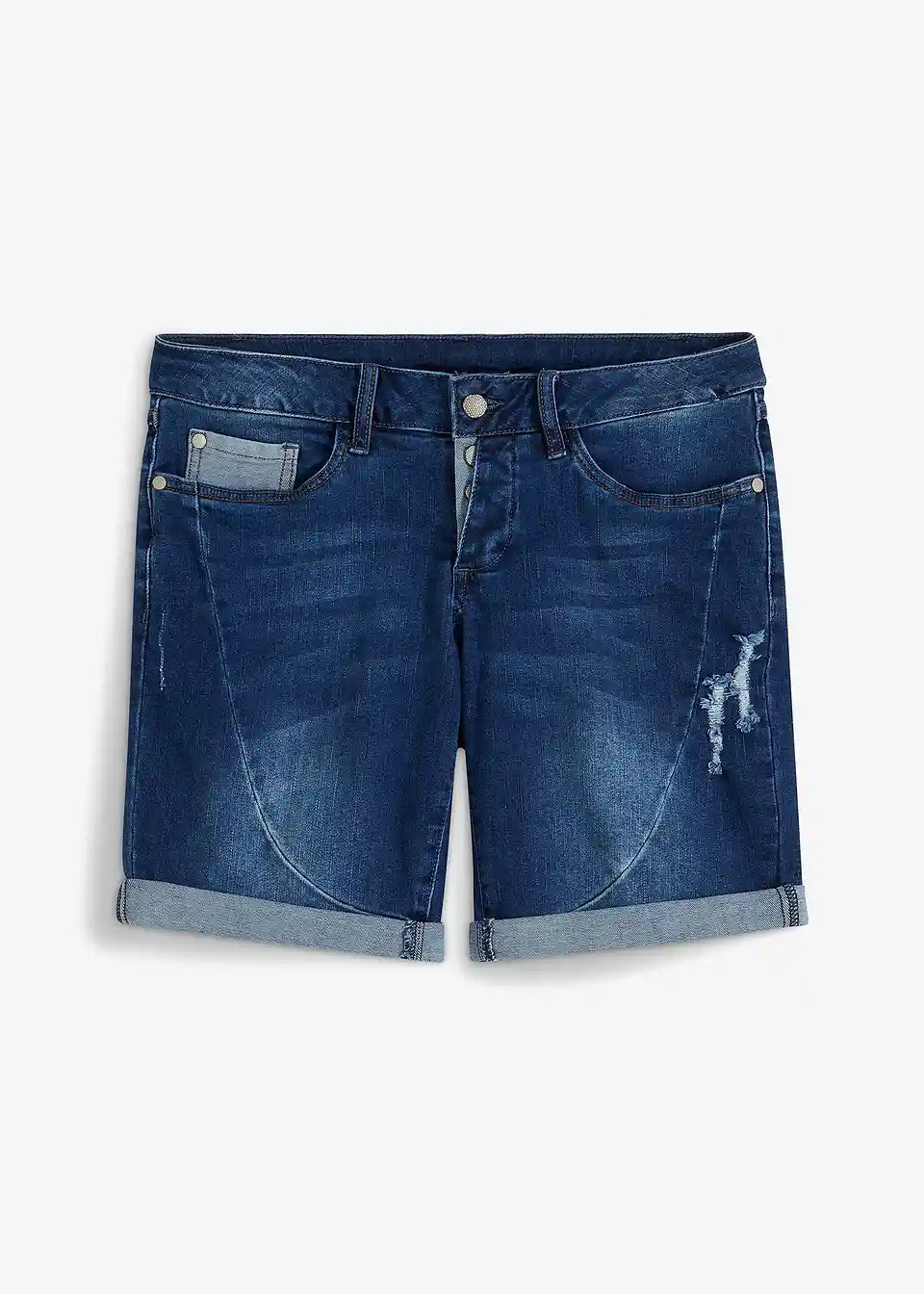 Modne podrobnosti naredijo te Jeans-Shorts izjemno trendovski in izstopajoči kos oblačila za tople dni. Žep za kovance in vidna gumbnica Jeans-Shorts v Five-Pocket dizajnu sta izdelana v kontrastni barvi. Spredaj imajo oprijeti shorts kul šive. Izdelani so z izrazitimi učinki obrabe. Posebno pranje in zavihan rob dodata moder videz.