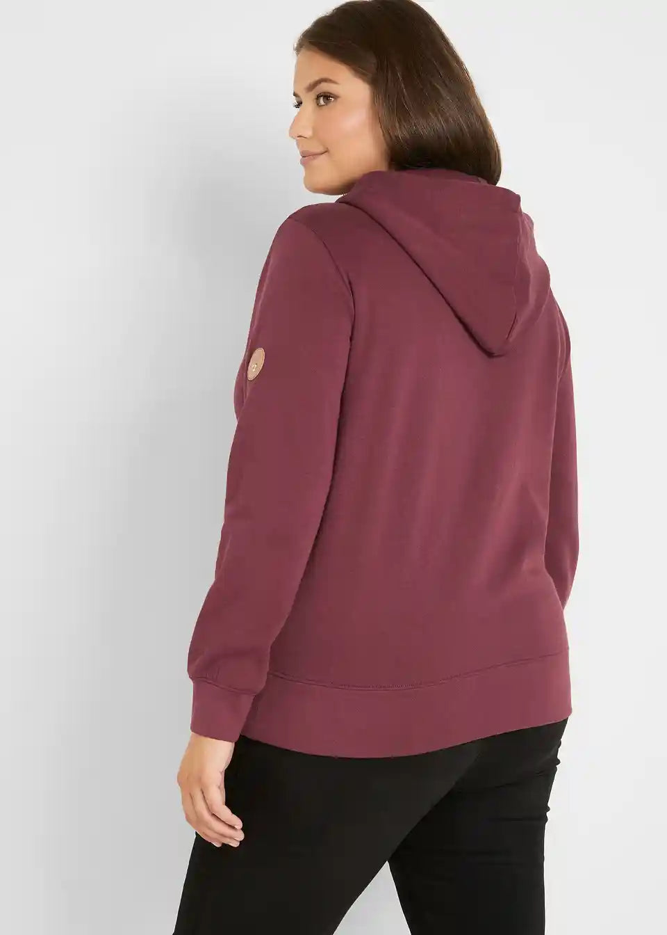 Jopica s kapuco in kenguru žepi ter detajli iz imitacije usnja
