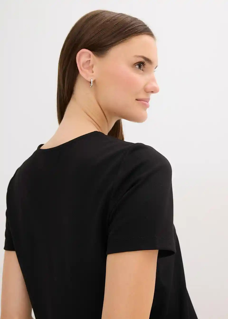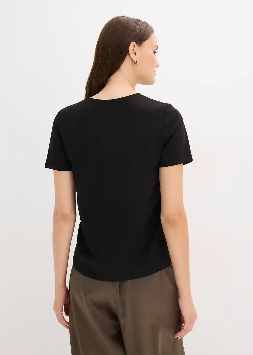 Modna majica iz kompaktnega Punto Di Roma materiala z okrasno svetlikajočo pentljo spredaj