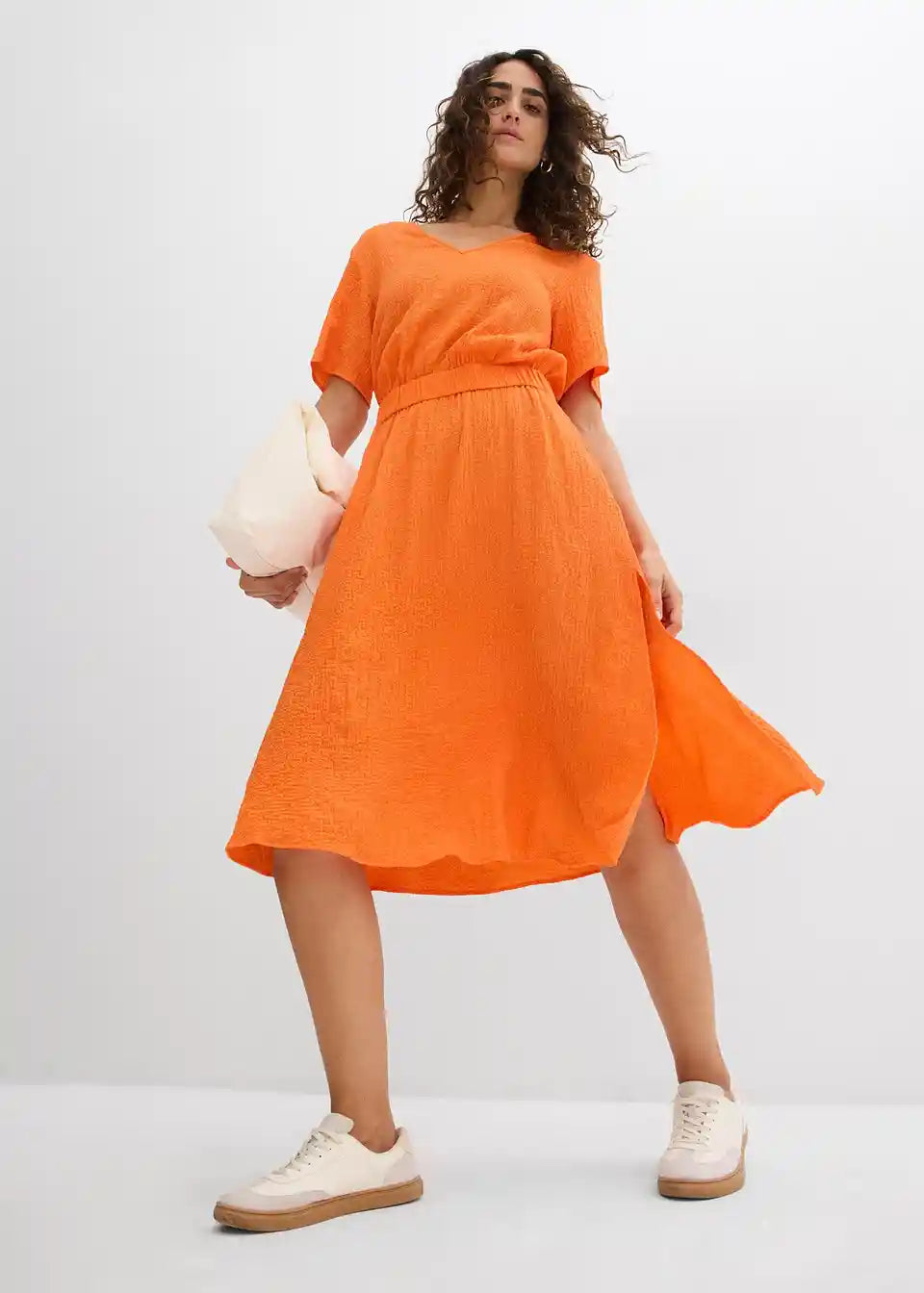 Midi obleka iz zračne mečkanke