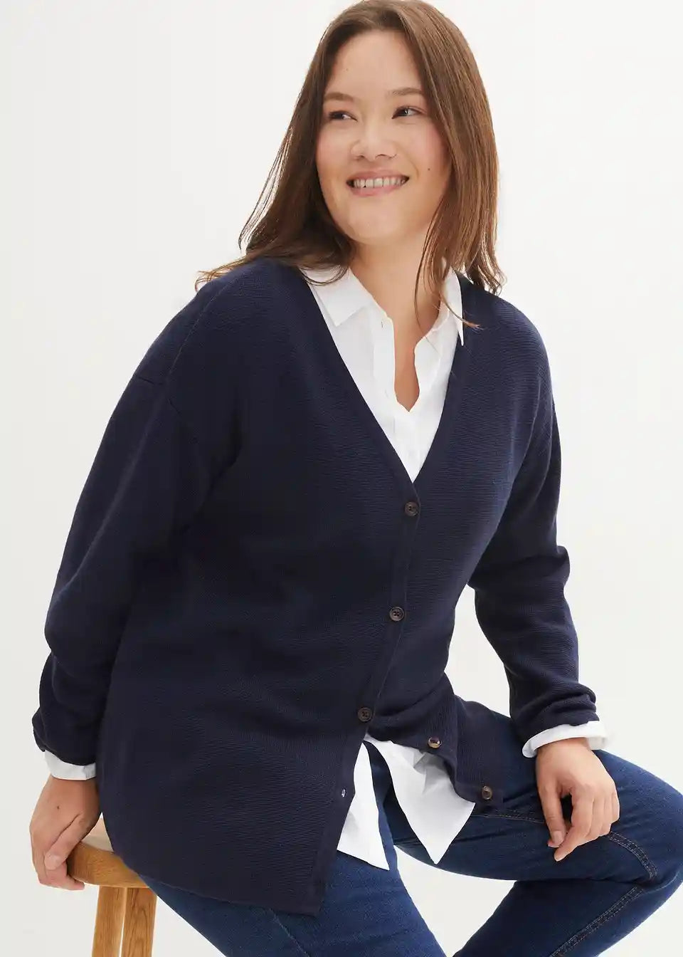 brezčasna pletena jopica iz Milano pletenine z gumbi v elegantnem videzu roževine