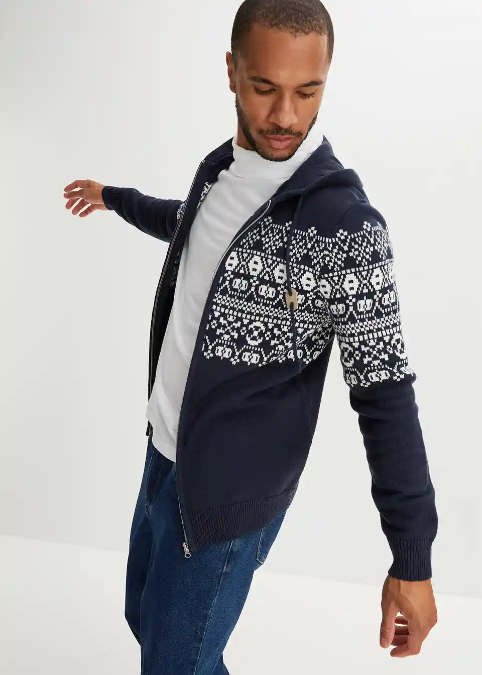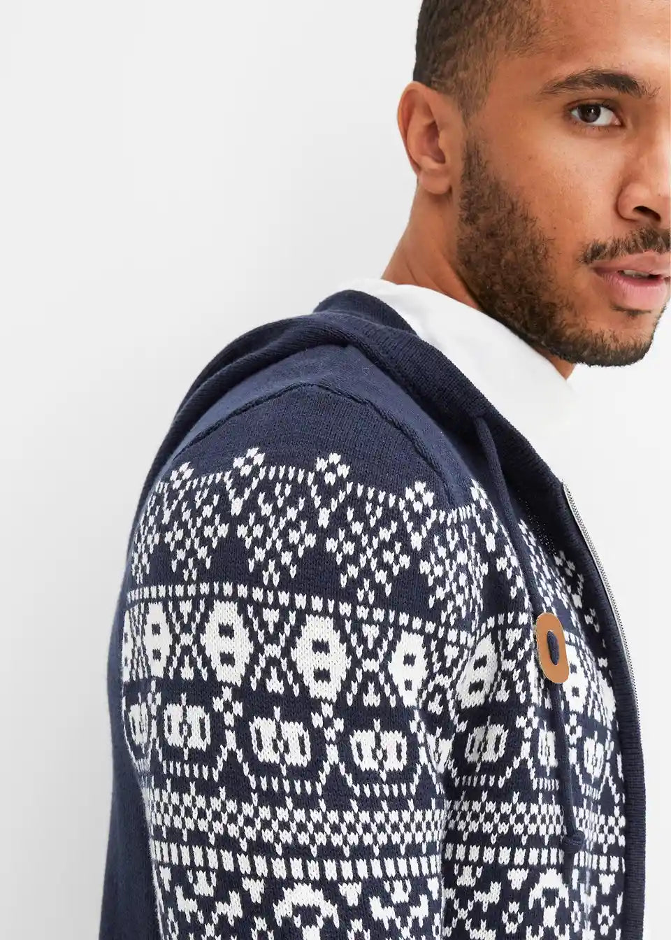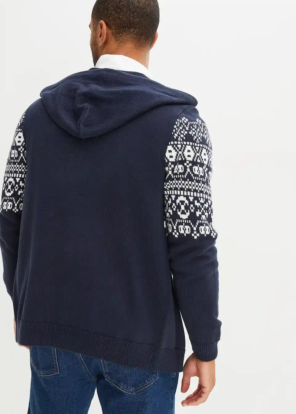 Norveška pletena jopa s kapuco v udobnem kroju z bombažem