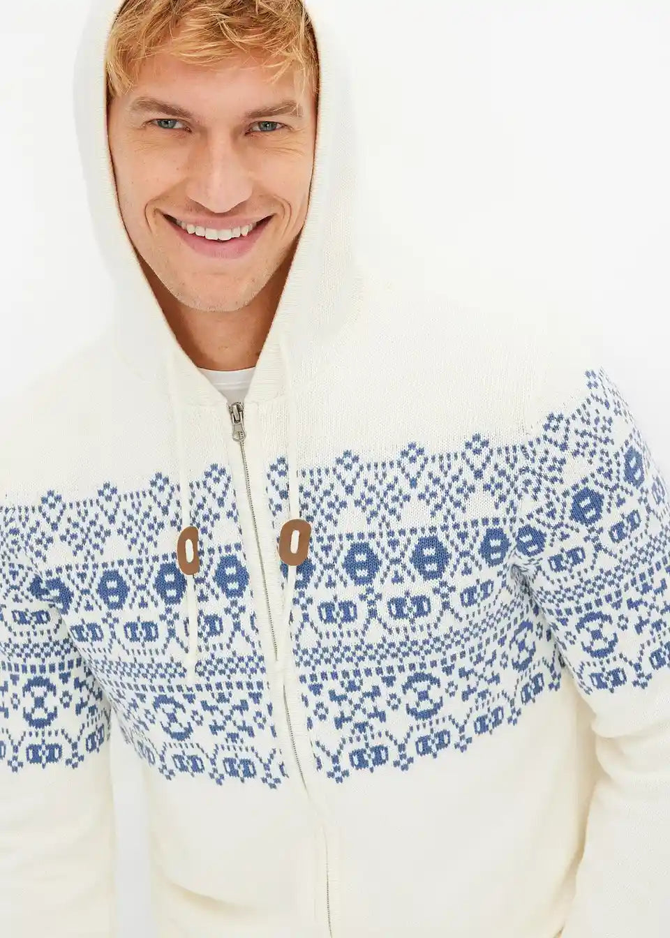 Moden norveški pleten pulover s kapuco