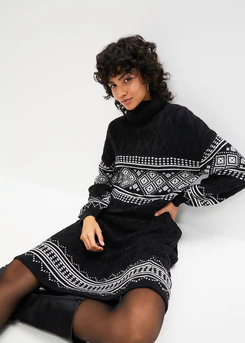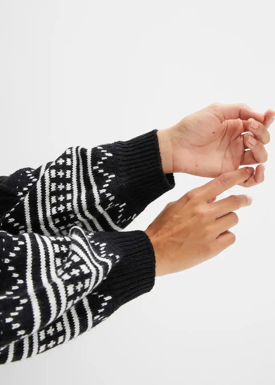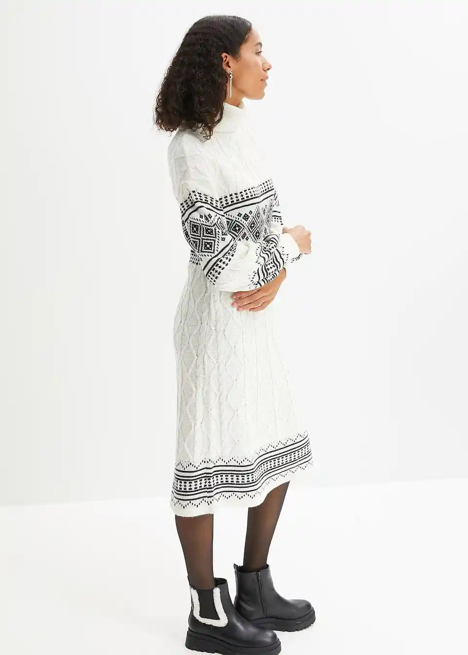 Pletena obleka z norveškim vzorcem in balonastimi rokavi