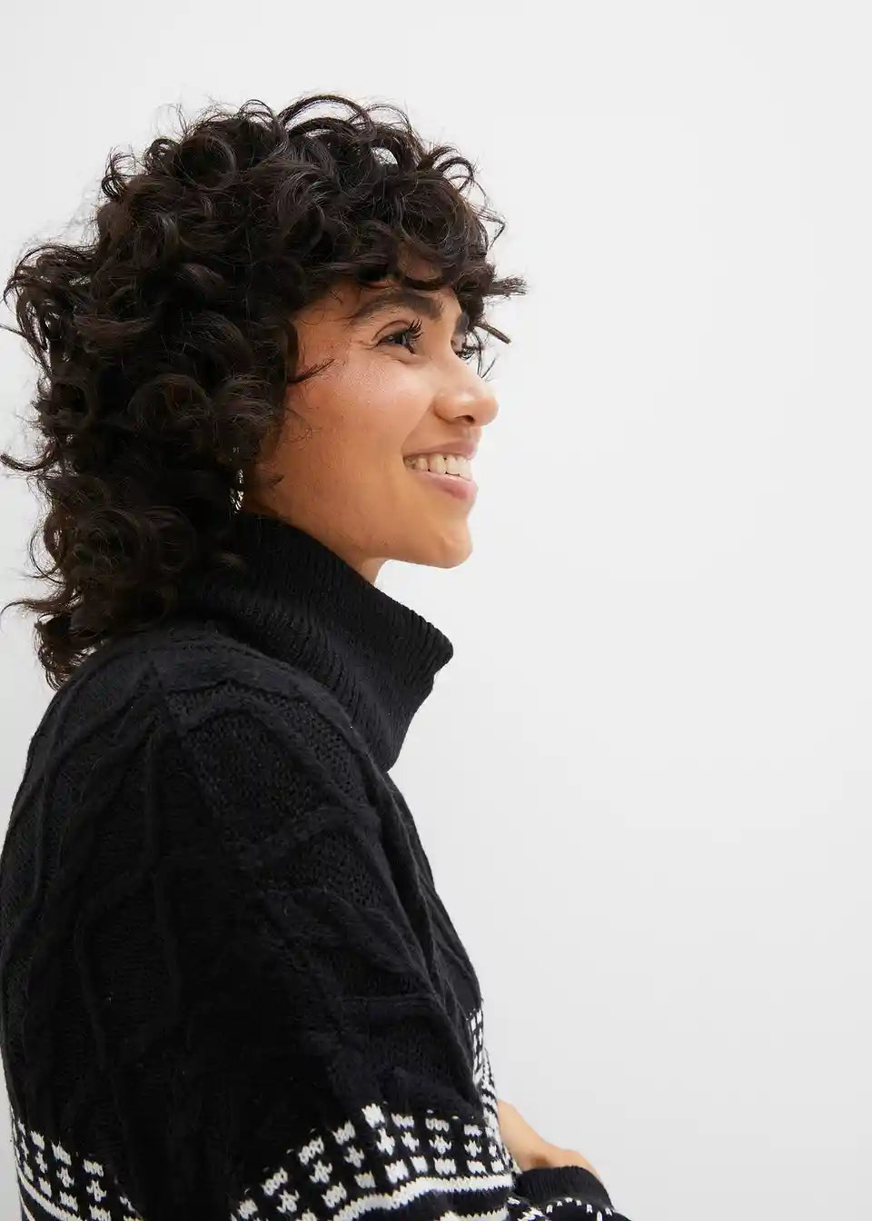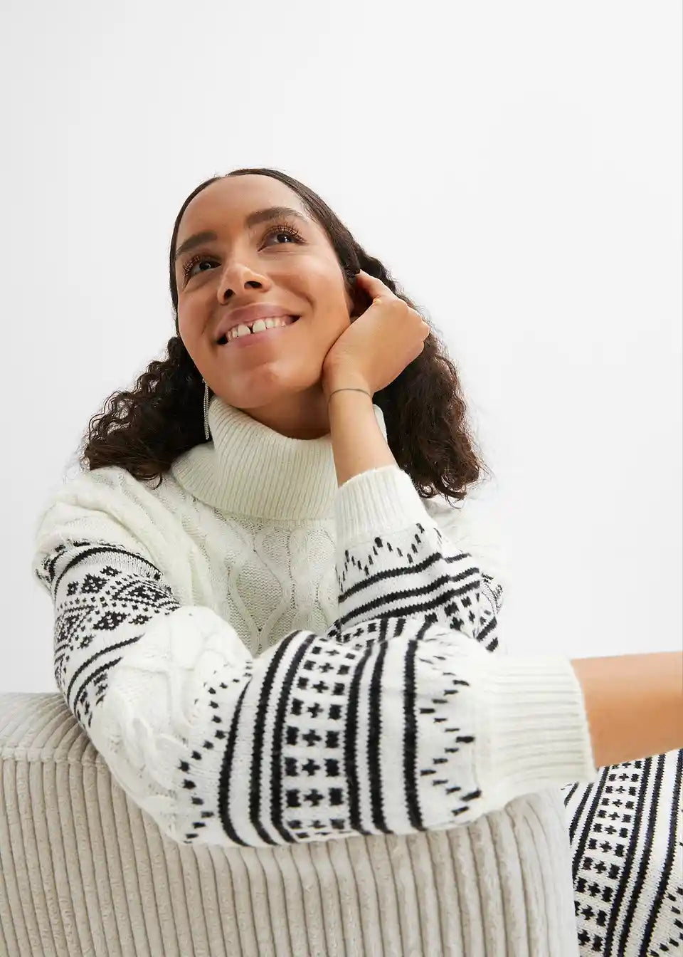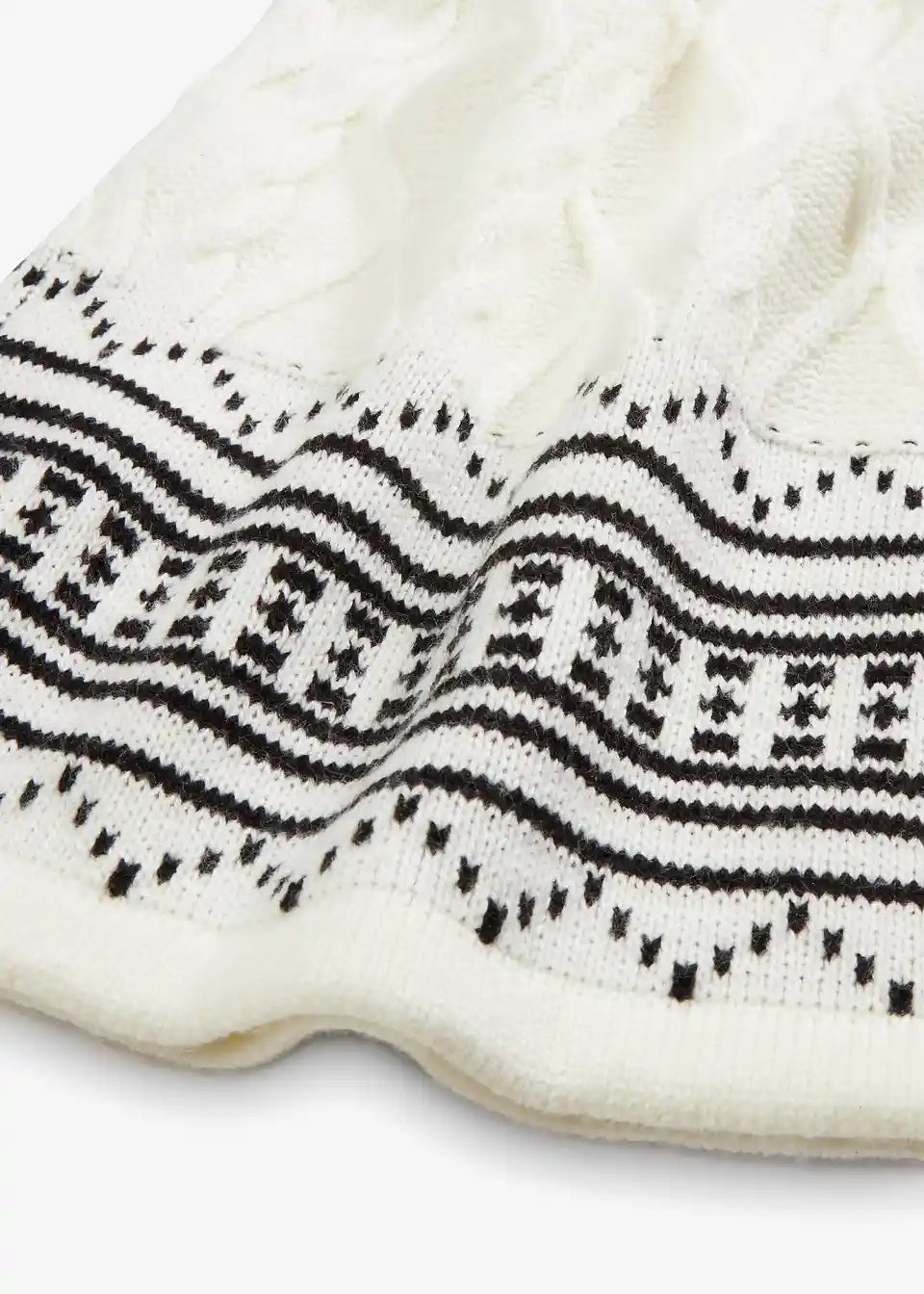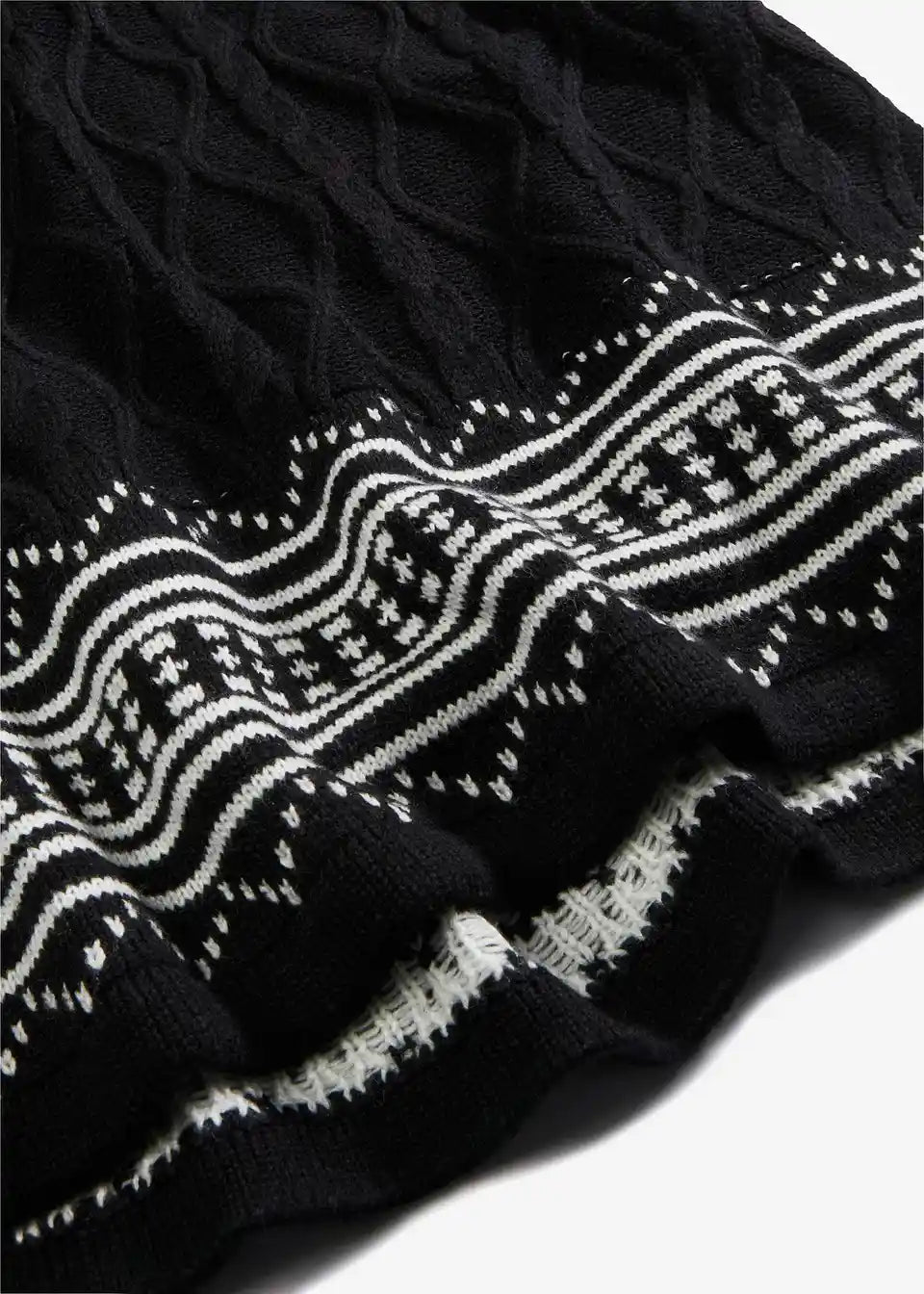 Pletena obleka z norveškim vzorcem in balonastimi rokavi